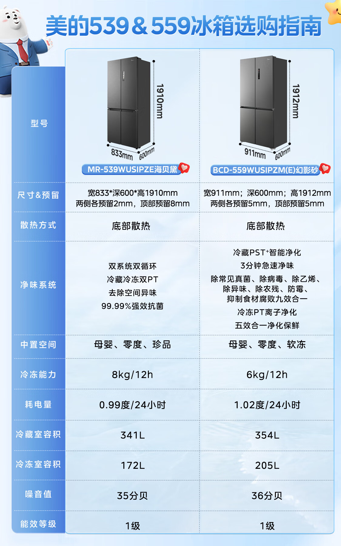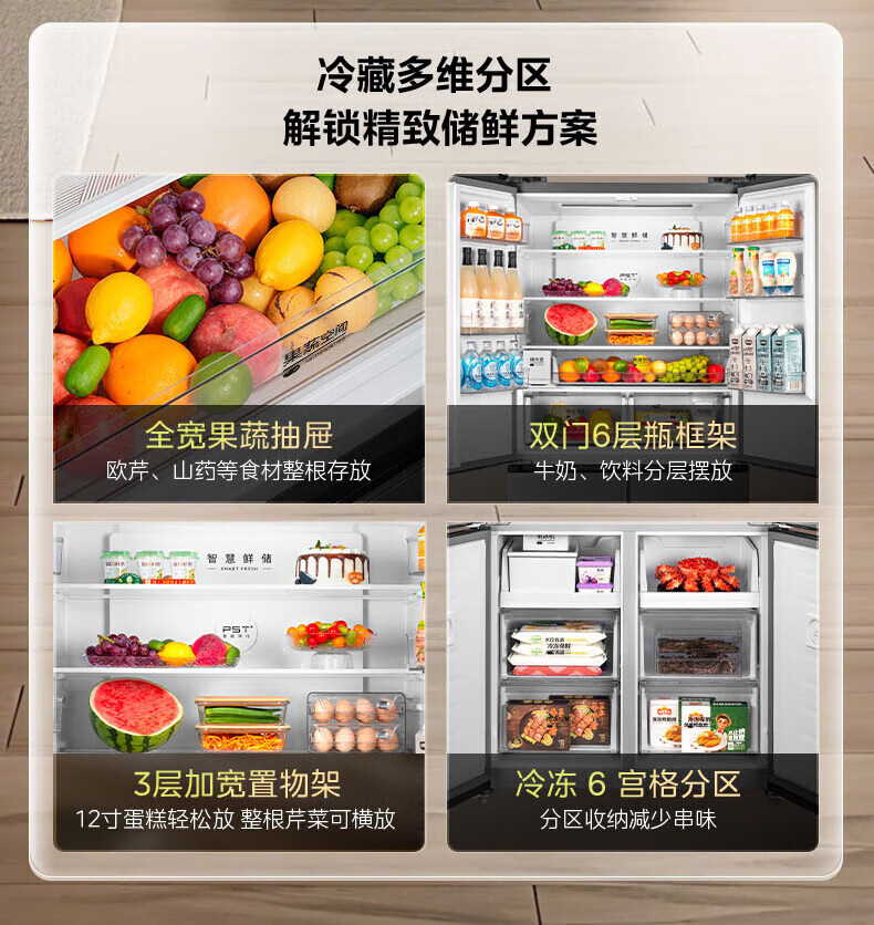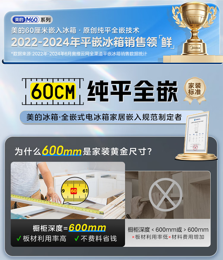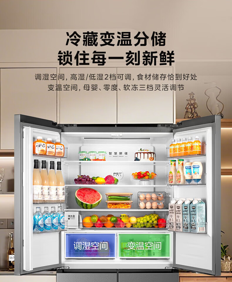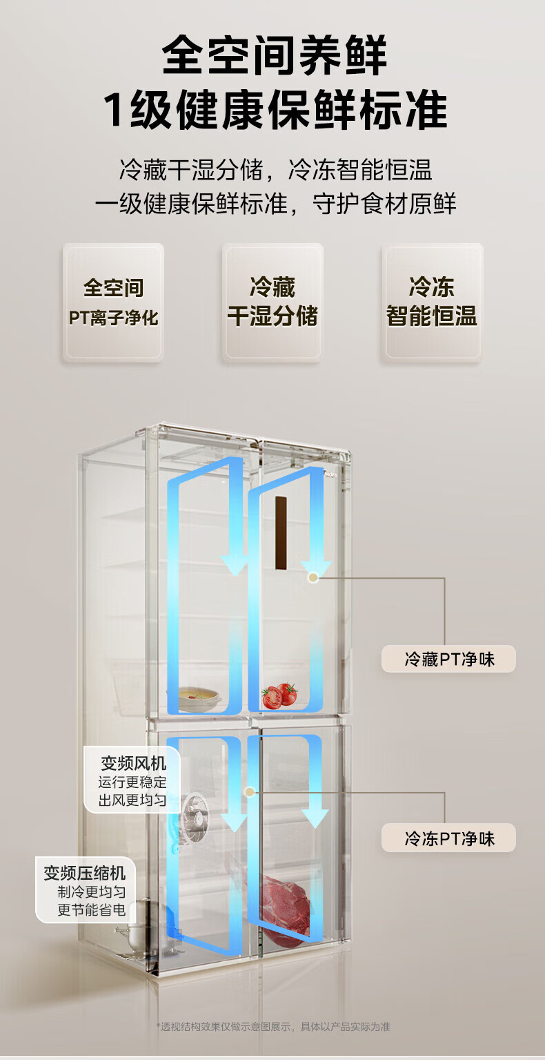 Midea Refrigerator 539/559 cross-door four-door dual-system ultra-thin automatic ice-making bottom cooling zero-embedded first-class energy efficiency dual-frequency air-cooled frost-free refrigerator Midea 559 bottom cooling automatic ice-making refrigerator