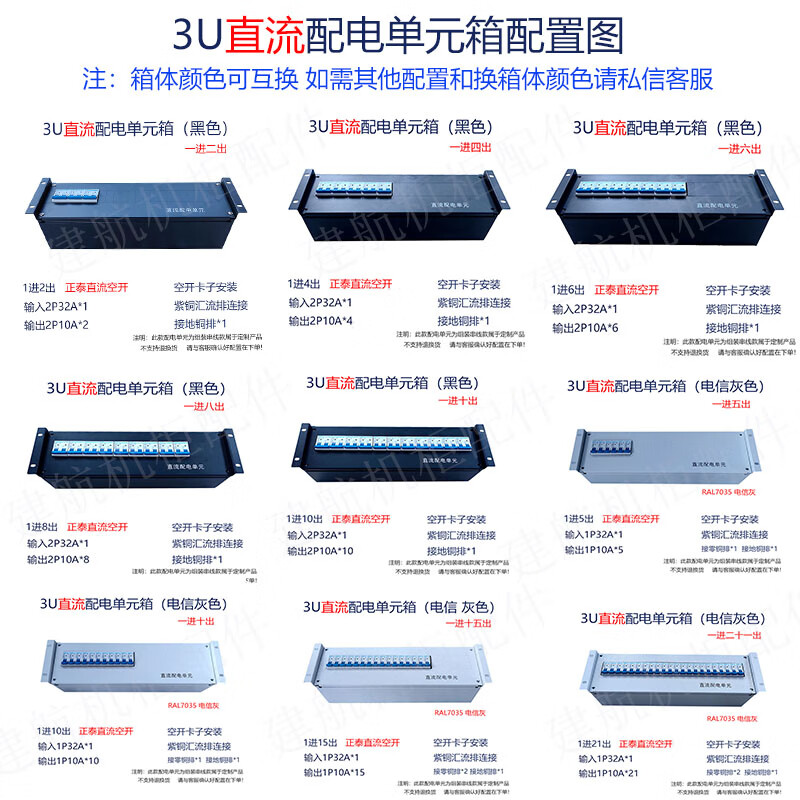 19-inch cabinet rack top power distribution column head communication AC and DC module three single-phase power distribution unit box configuration 23 6U black box AC and DC universal 1x1x1cm