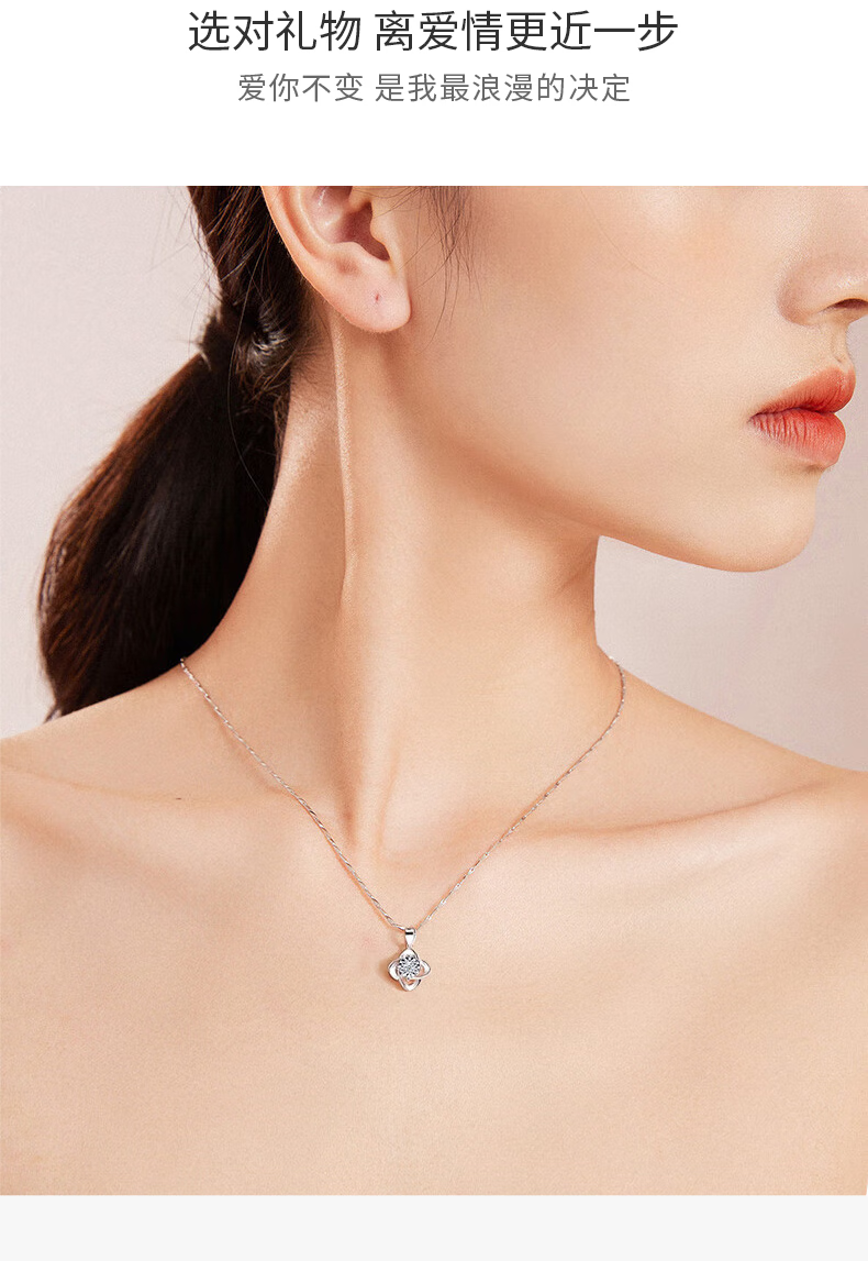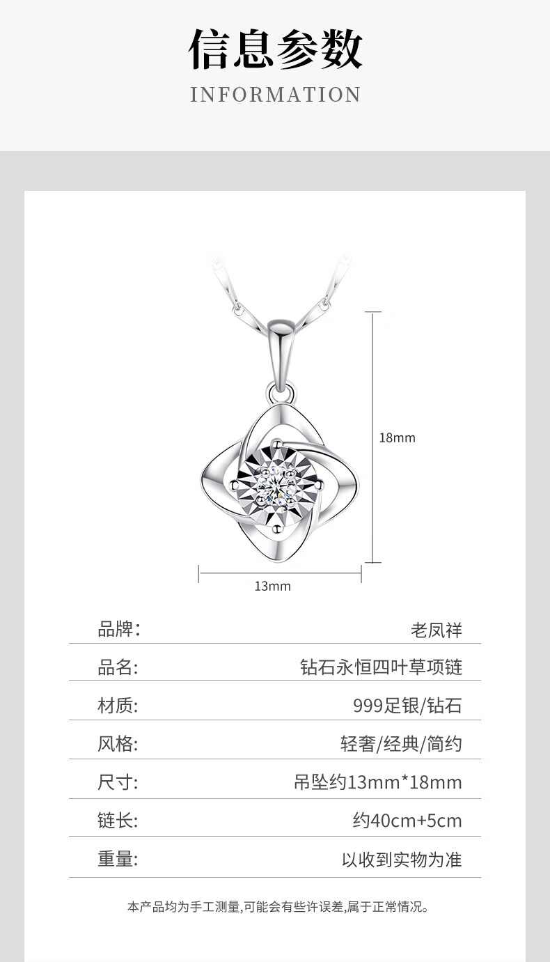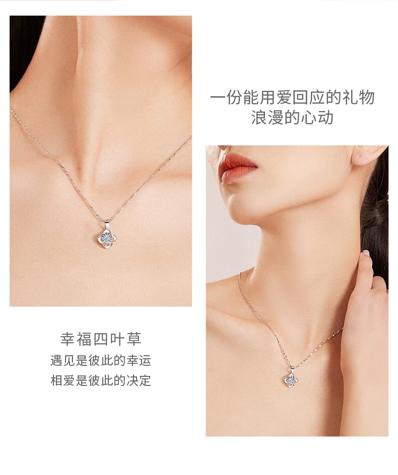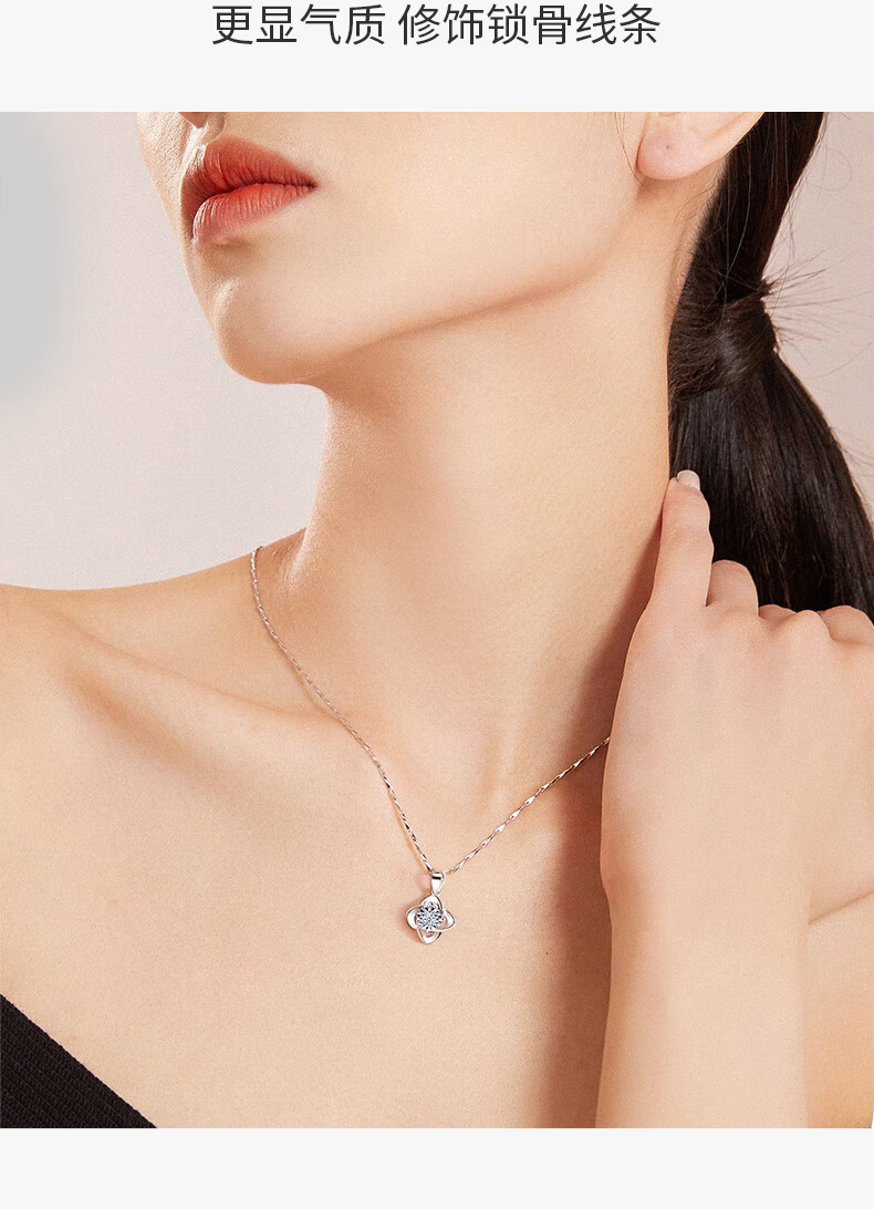 Lao Fengxiang four-leaf clover sterling silver necklace women's diamond pendant 2025 new clavicle chain birthday gift for girlfriend and wife four-leaf clover diamond necklace-brand gift box