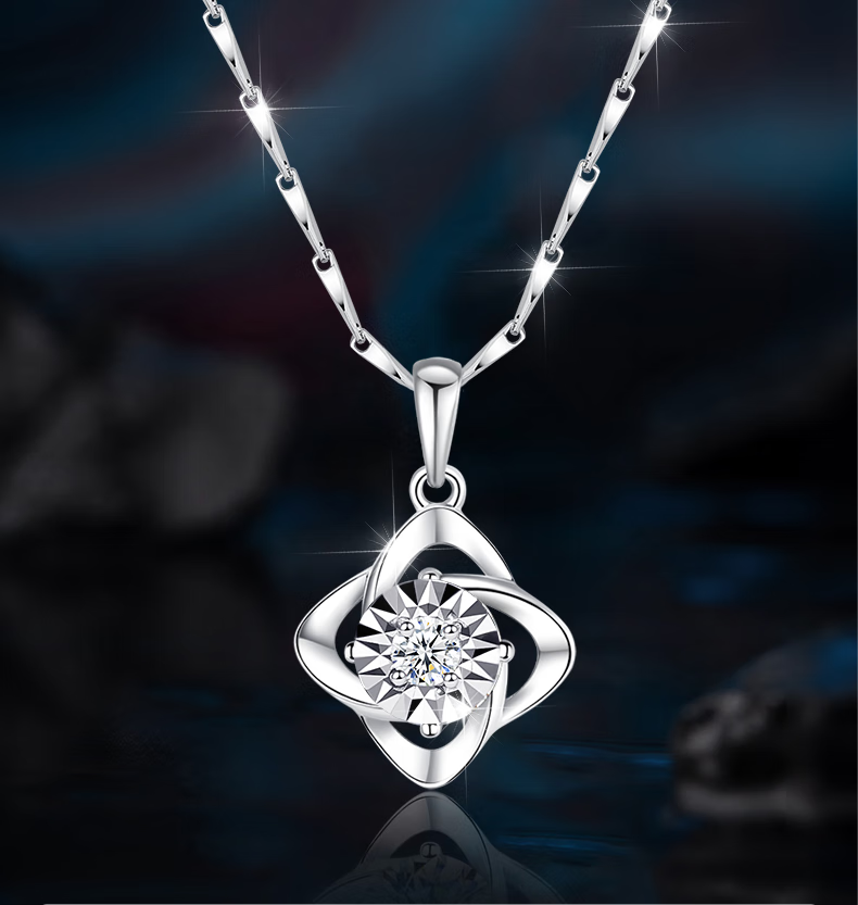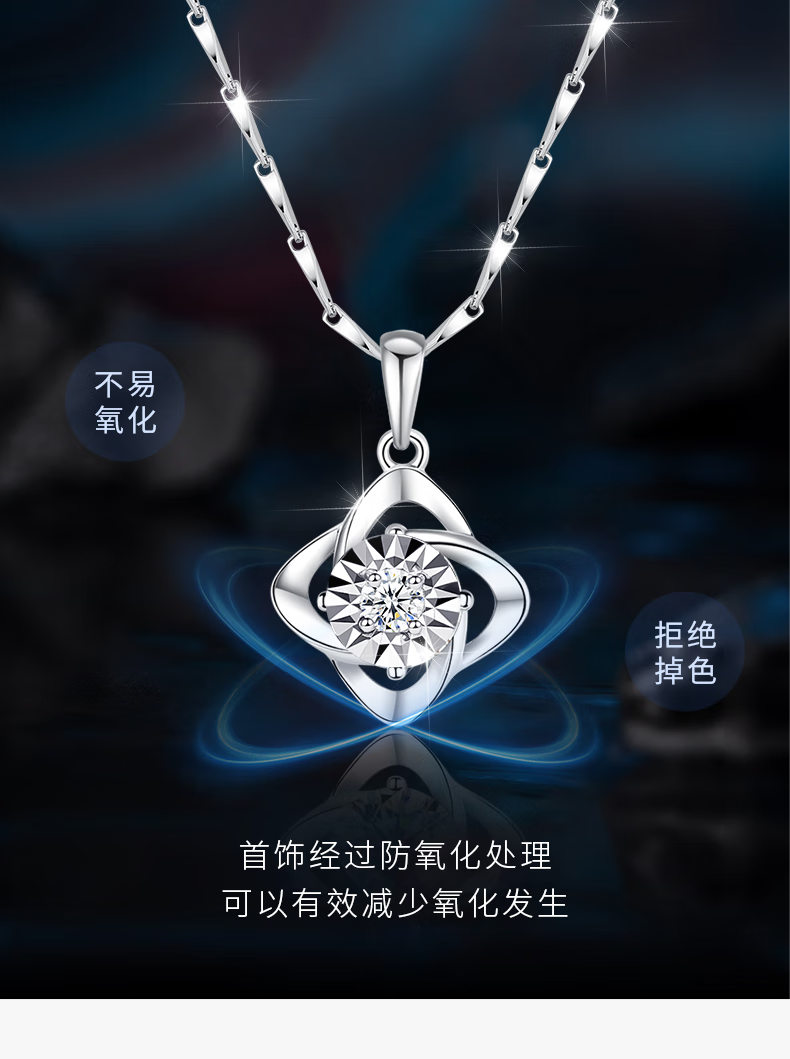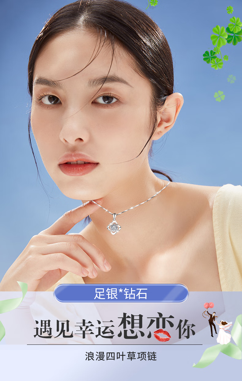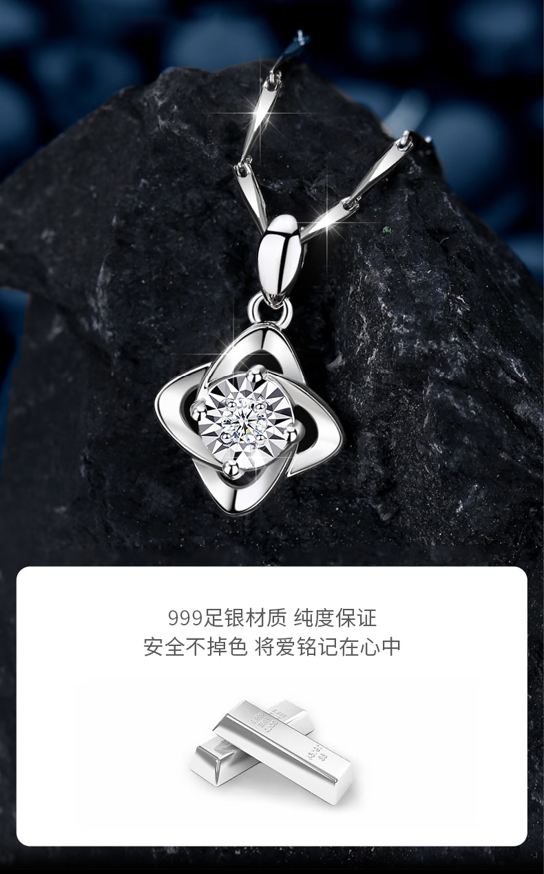 Lao Fengxiang four-leaf clover sterling silver necklace women's diamond pendant 2025 new clavicle chain birthday gift for girlfriend and wife four-leaf clover diamond necklace-brand gift box