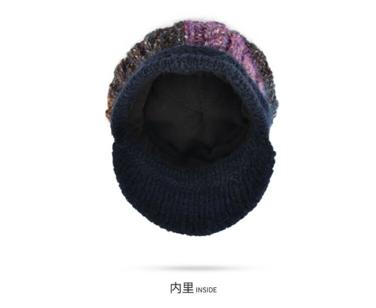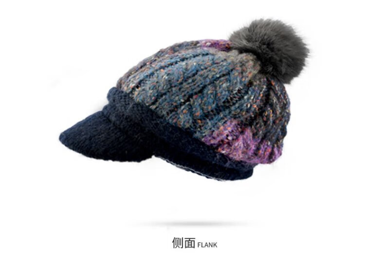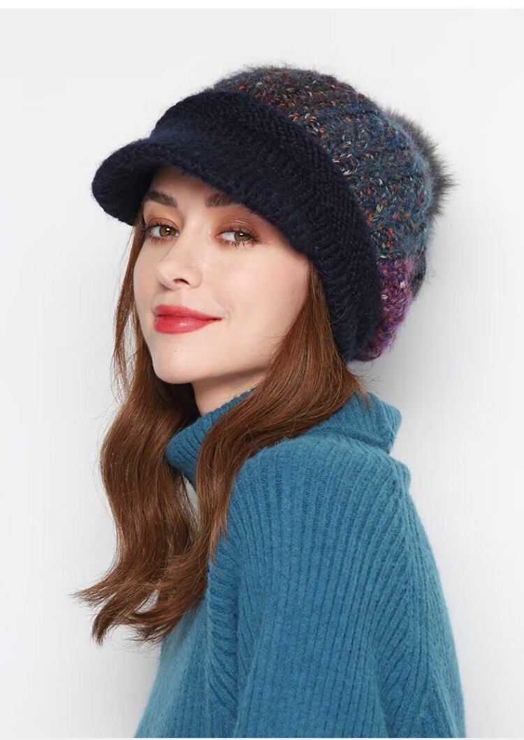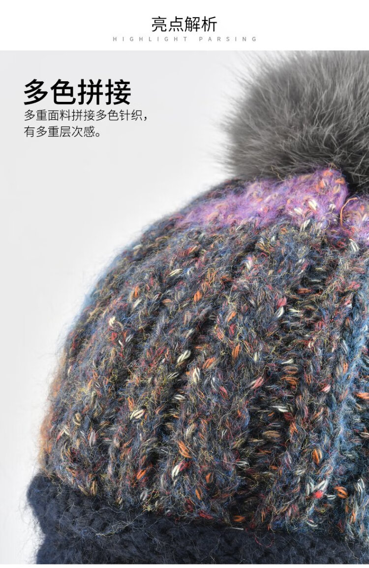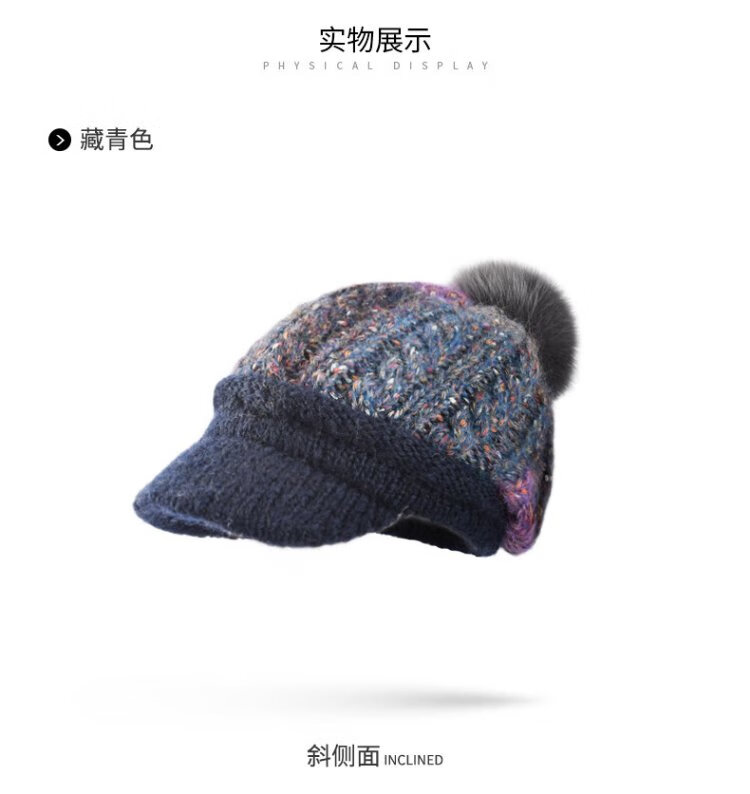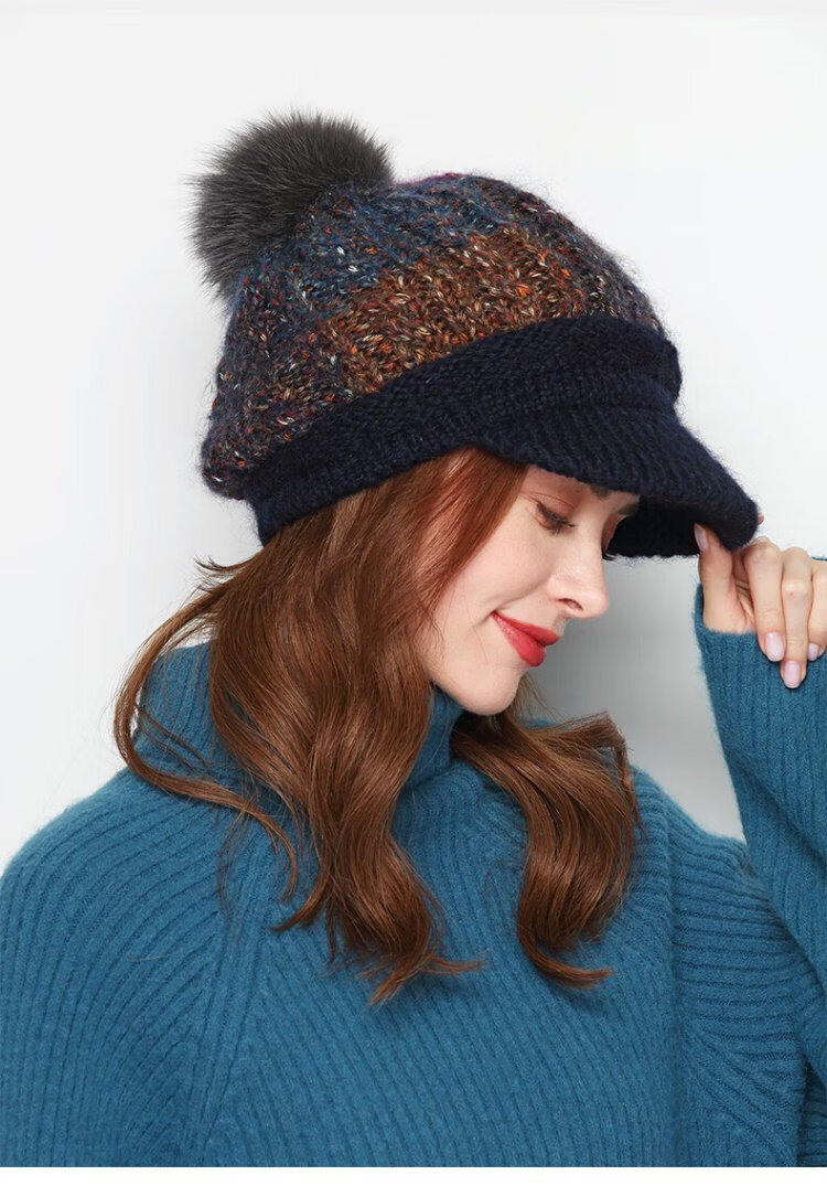 Kenmont Fever Antibacterial Wool Hat Beret Women's Winter Korean Knitted Hat Versatile Back Hat Fox Fur Ball 9416 Navy Hat + Mask One Size 58cm