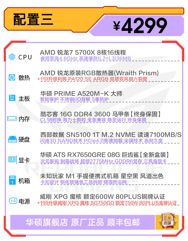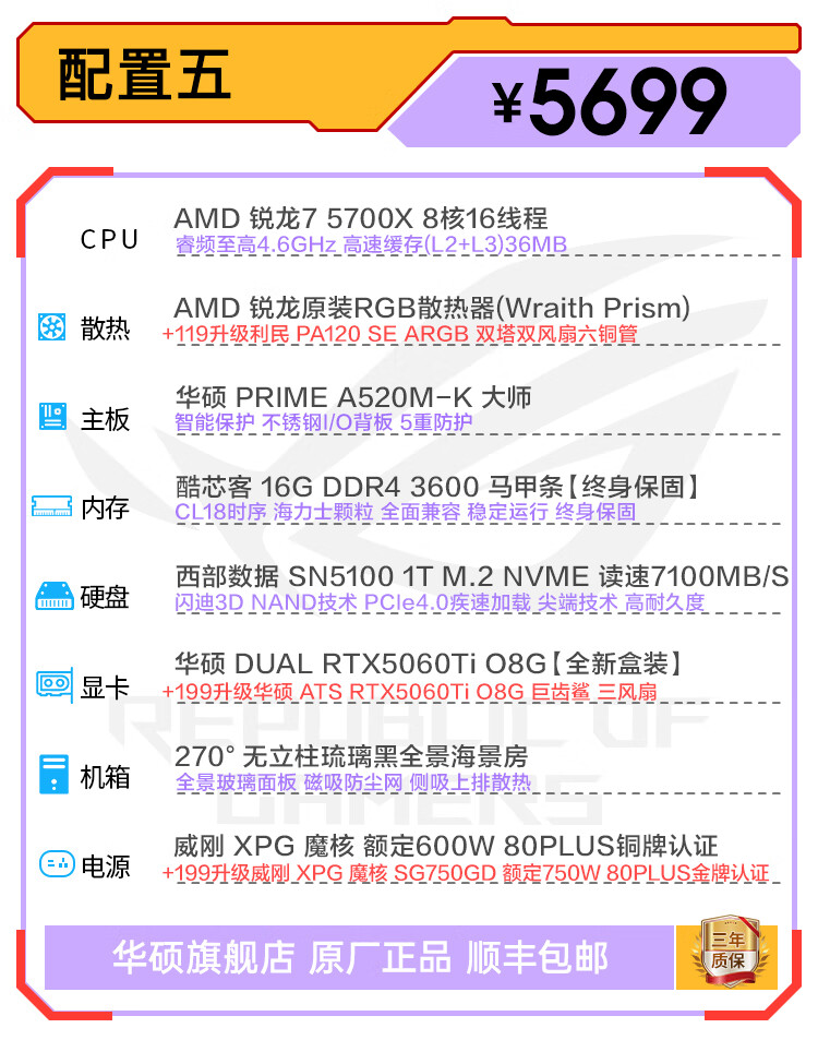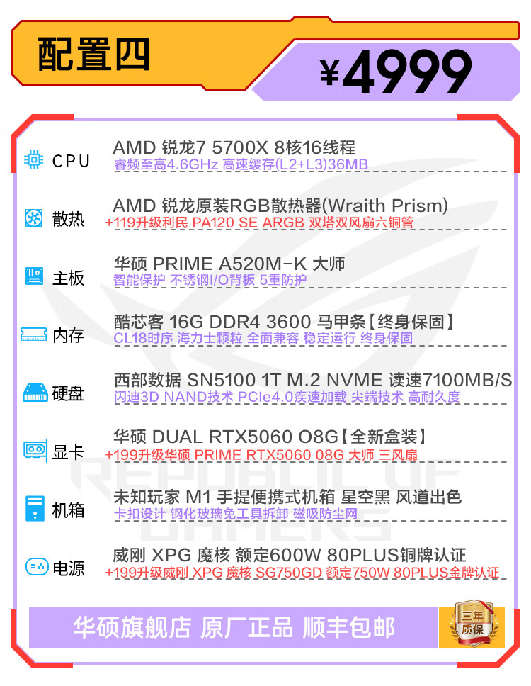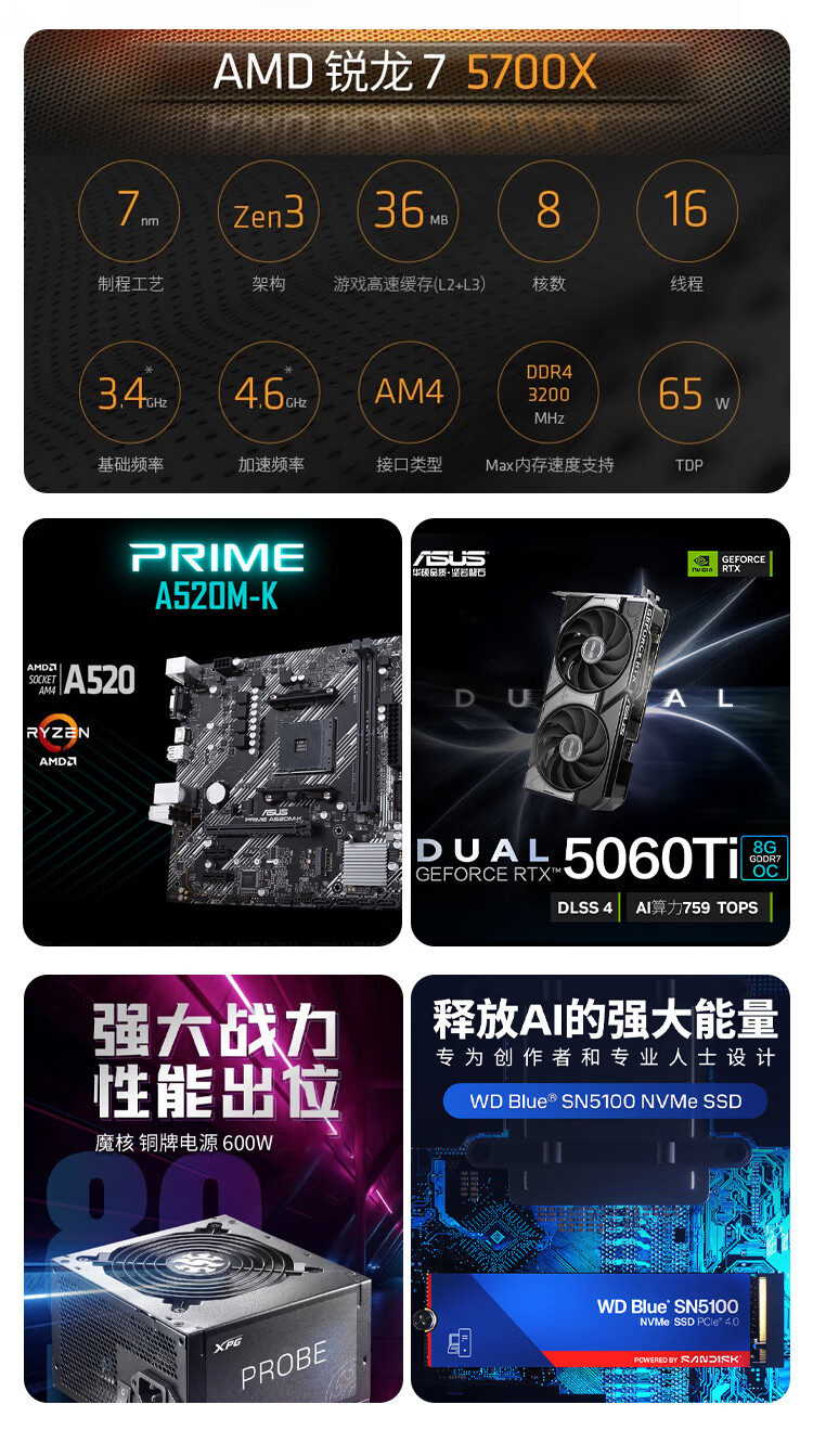 ASUS RTX5060/7650GRE/3050 graphics card AMD Ryzen 5700X portable chassis AI assembly computer DIY game console super cost-effective desktop complete machine sea view room R7 5700X+ASUS RTX5060 configuration four