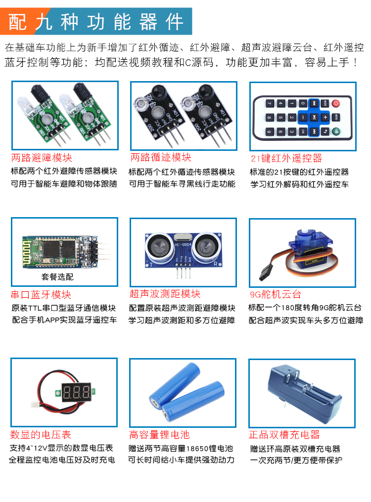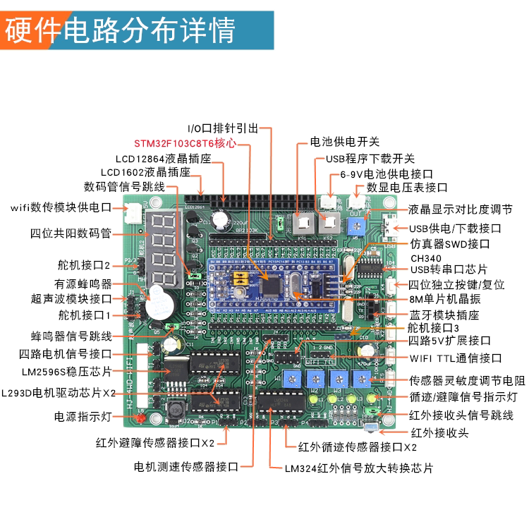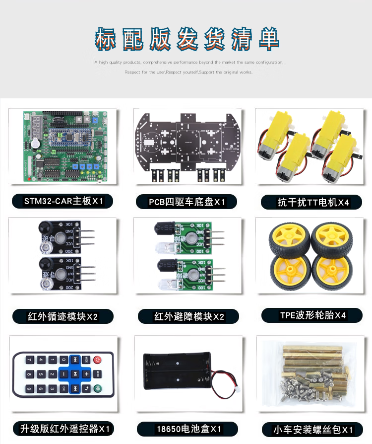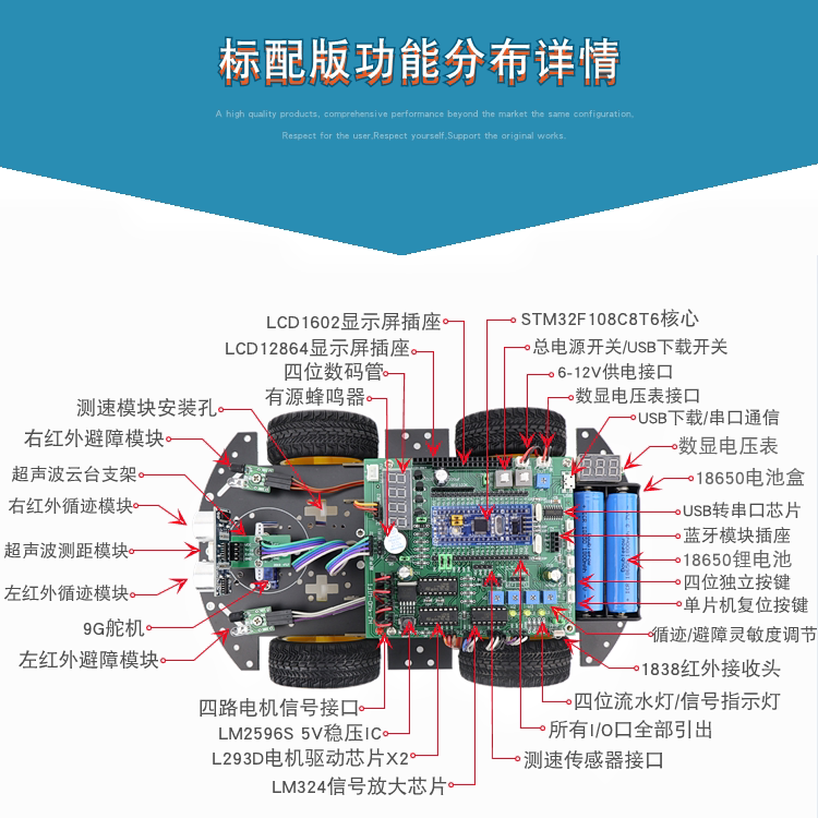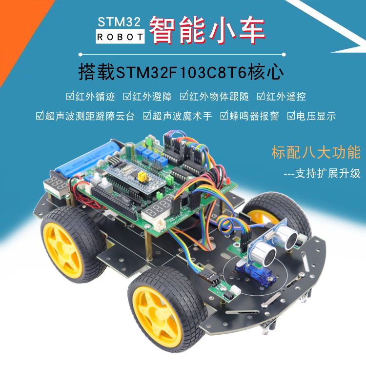 STM32 smart car STM32F103C8T6 tracking and obstacle avoidance Bluetooth fire extinguishing four-wheel drive smart car robot standard version + Bluetooth