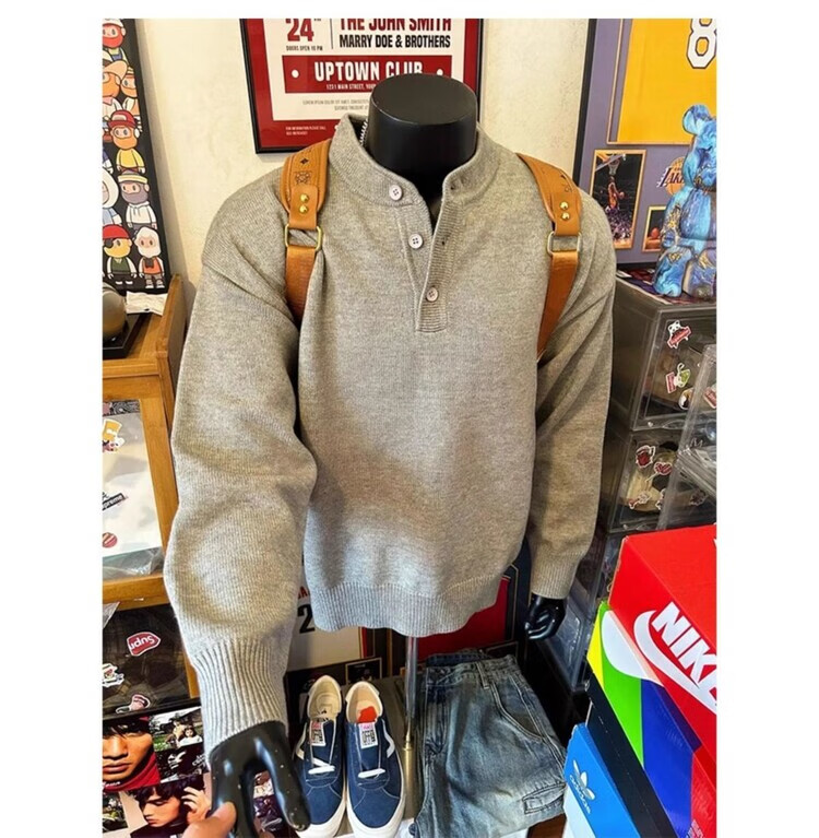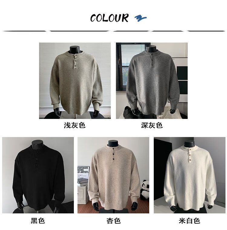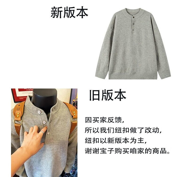 VE gray Henry collar sweatshirt men's autumn lazy style high-end sweater cleanfit bottoming shirt light gray //VE selection buttons Please refer to the explanation video M Recommendation 95-110Jin Jin is equal to 0.5 kg