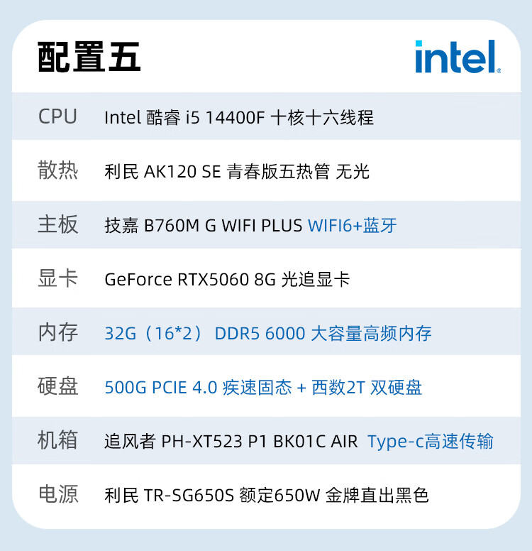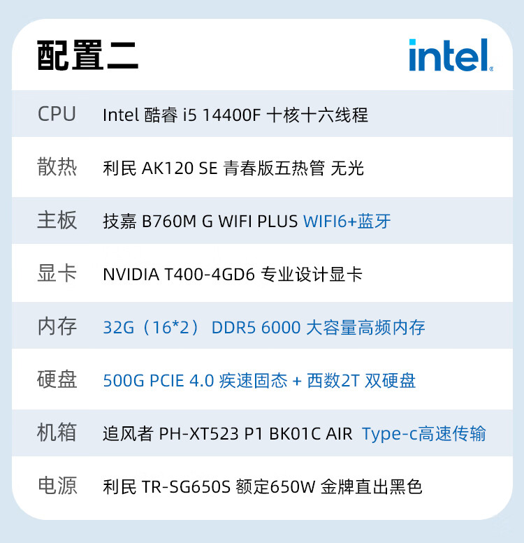Intel 14th generation Core i5 14400F series Enterprise procurement designer video editing game desktop computer host assembly computer workstation with a 225+ core display + 32G + dual hard drives