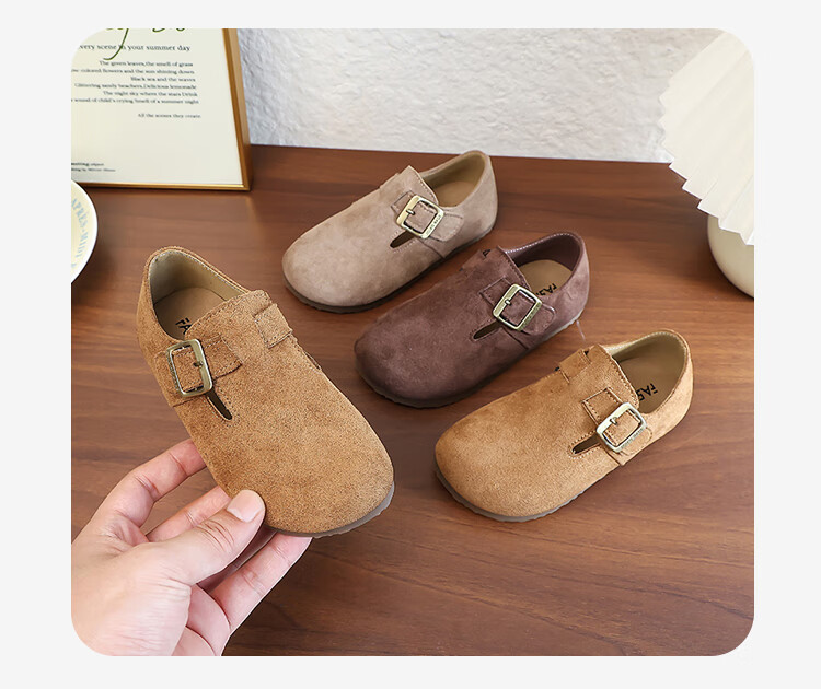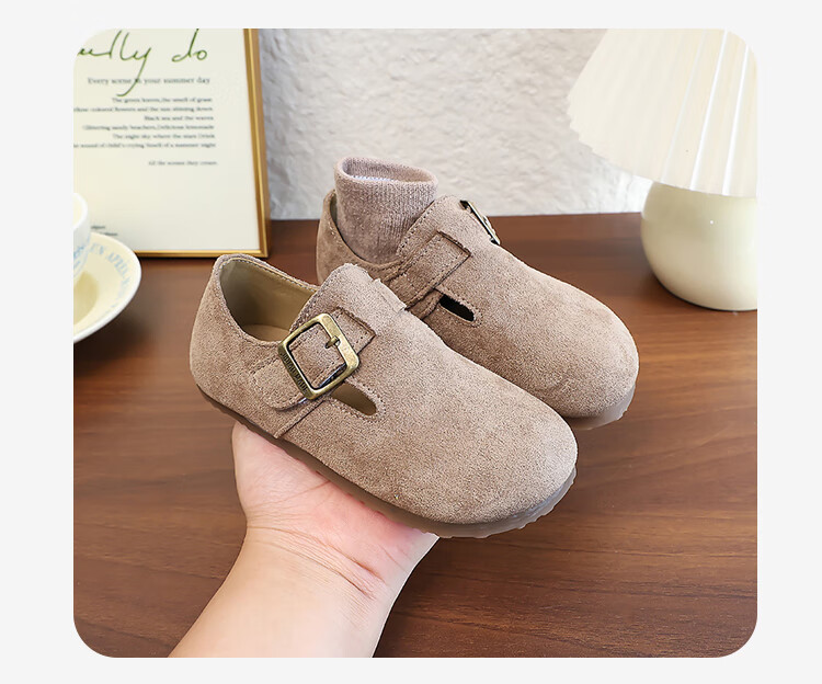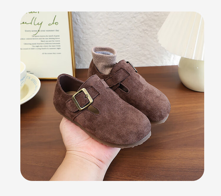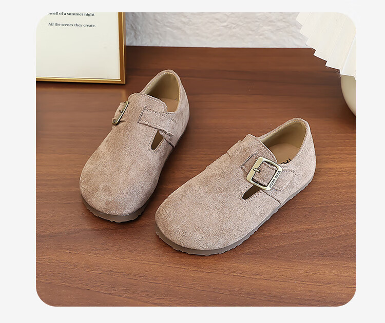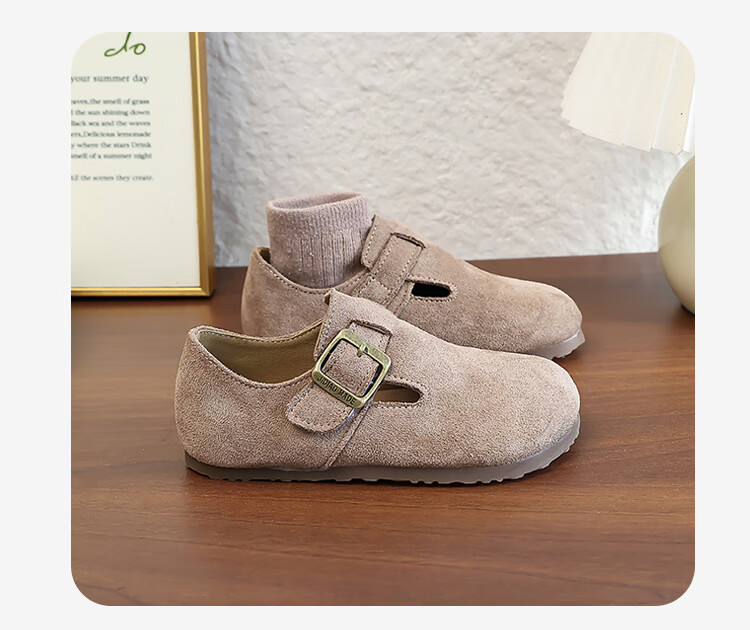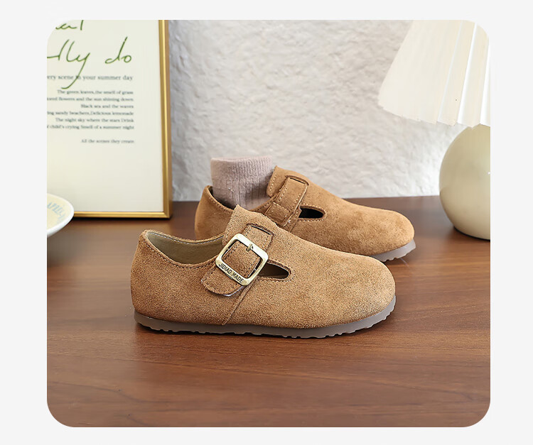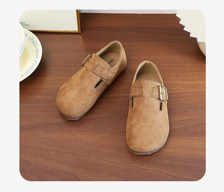 Girls' Shoes Retro British Birkenstock Shoes 2025 Autumn New Girls Soft Sole Princess Small Leather Shoes Peas Single Shoes Yellow Brown 30 (Inner Length 18.2cm)