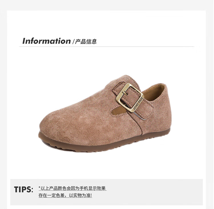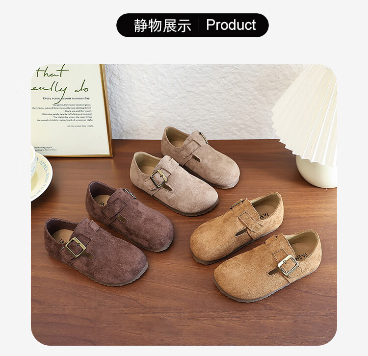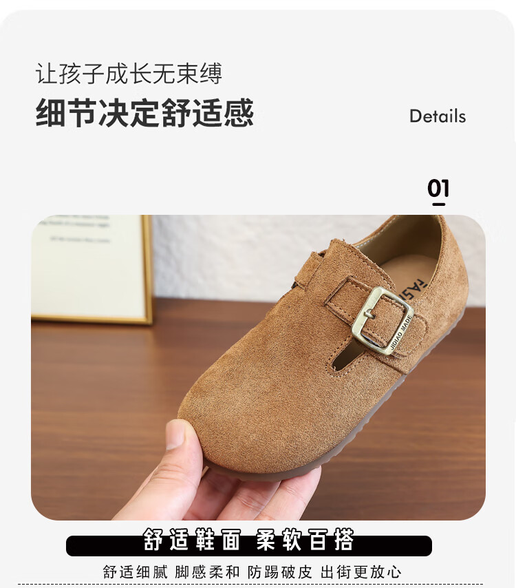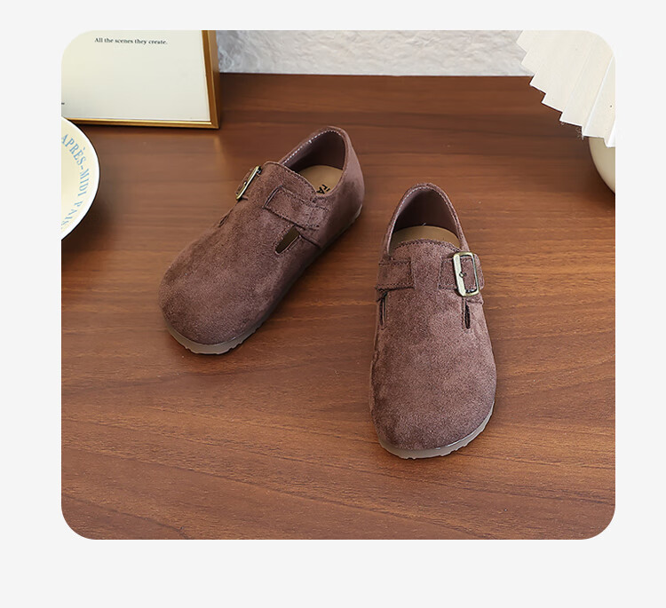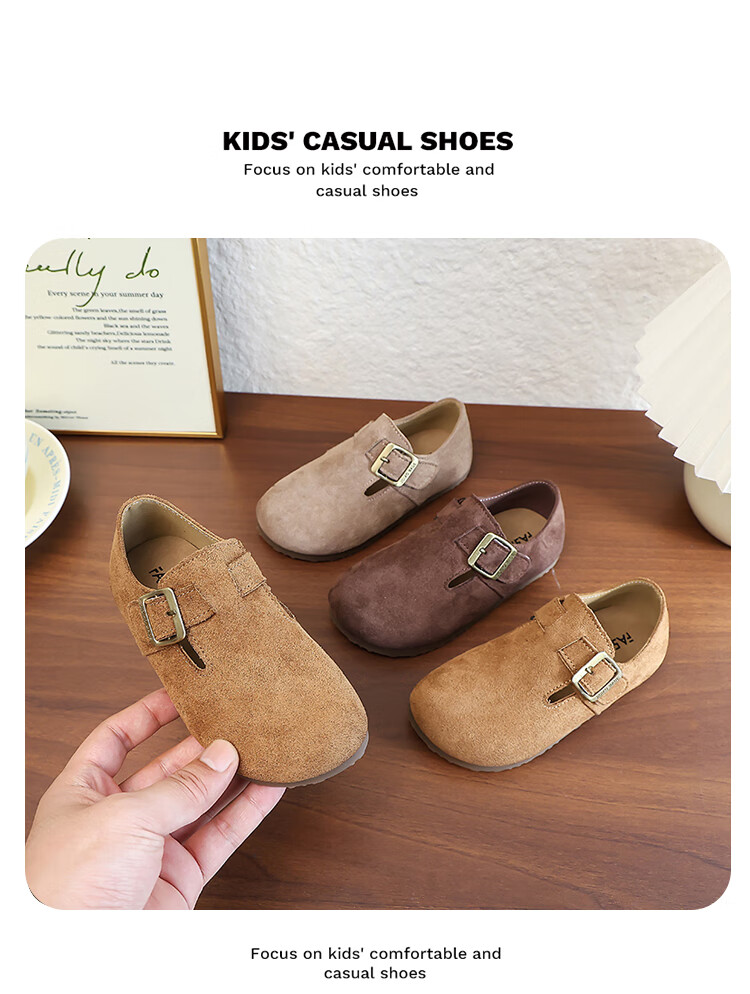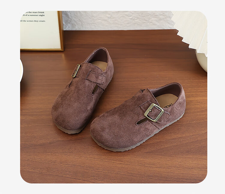 Girls' Shoes Retro British Birkenstock Shoes 2025 Autumn New Girls Soft Sole Princess Small Leather Shoes Peas Single Shoes Yellow Brown 30 (Inner Length 18.2cm)