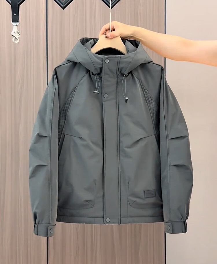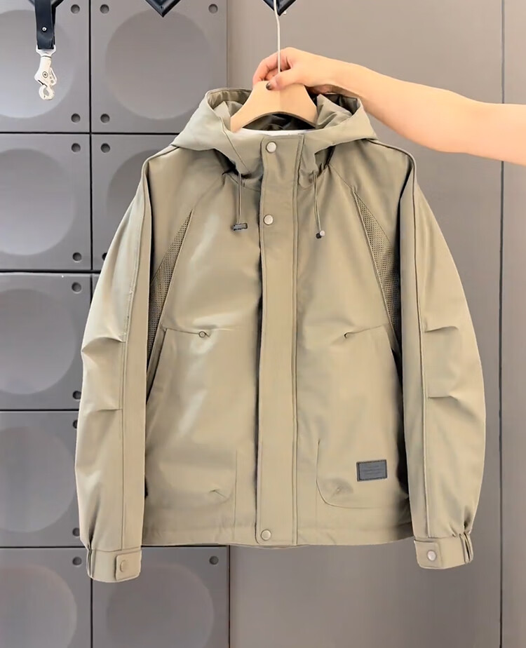 ROMON high-end hooded cotton jacket for men in autumn and winter, handsome and versatile casual casual quilted and thickened khaki green 2XL recommended 155-170 Jin Jin equals 0.5 kg