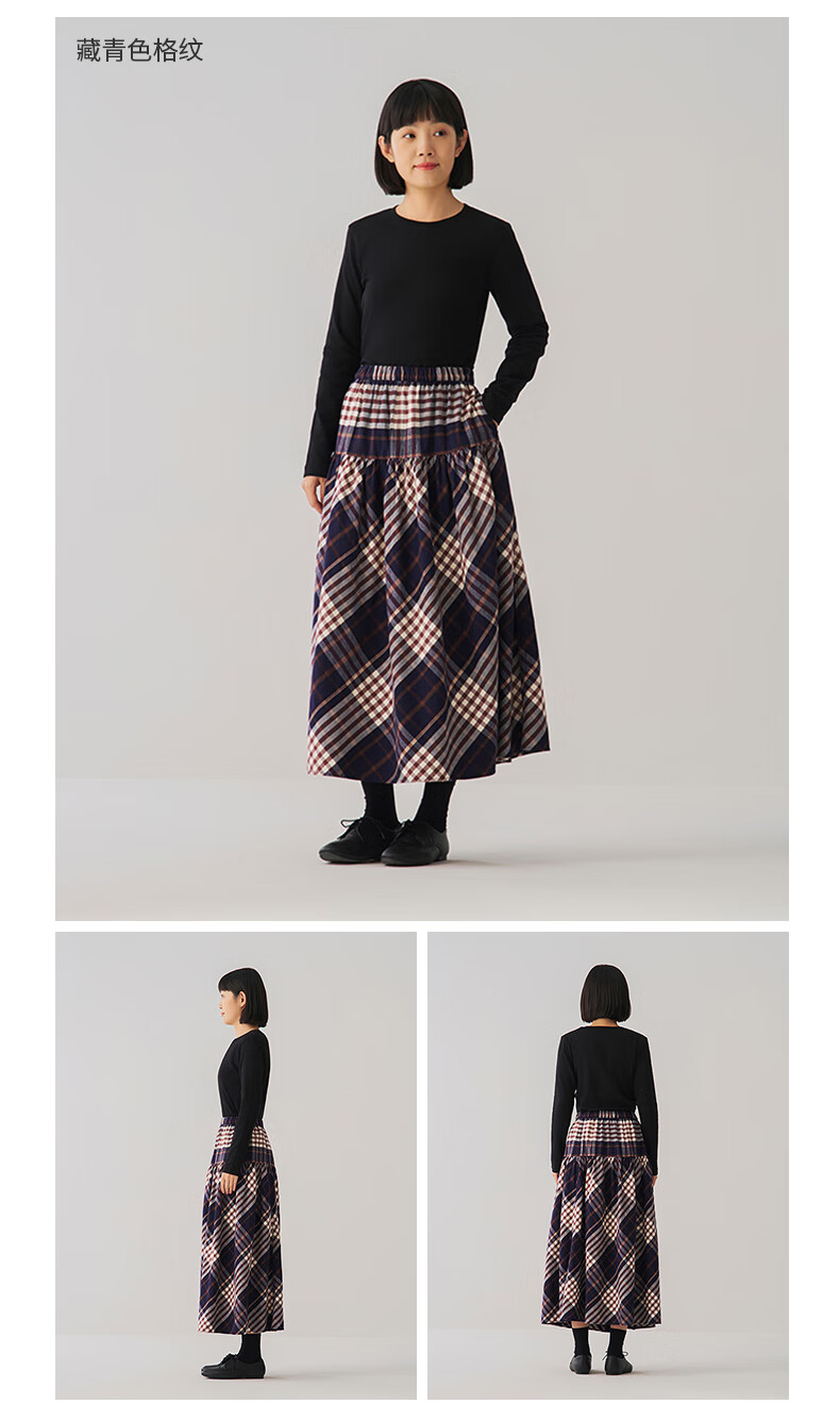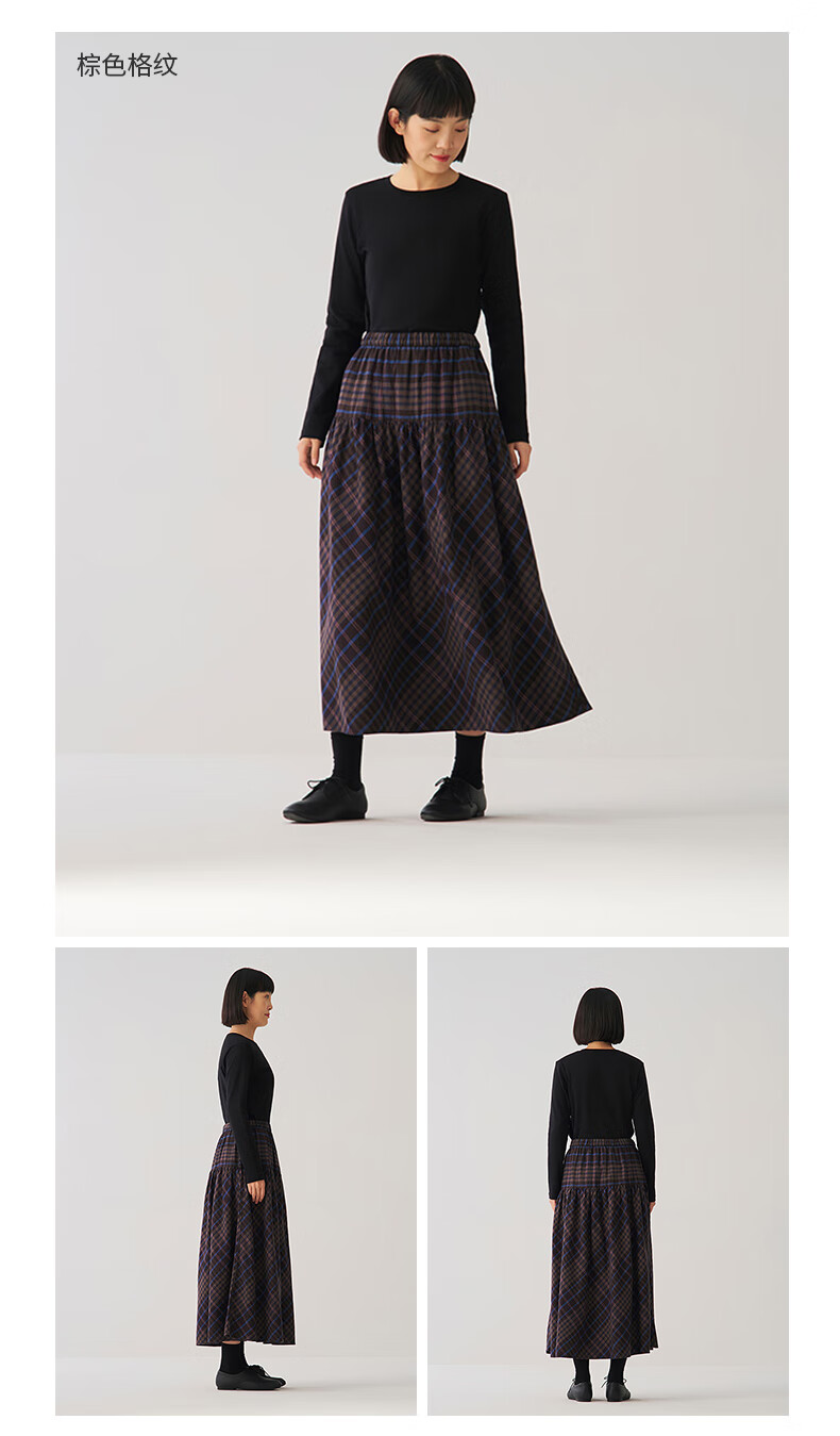 MUJI Women's Flannel Pleated Skirt Long Skirt Women's Skirt Women's Fall 25 BE1D1C5A Brown Plaid M