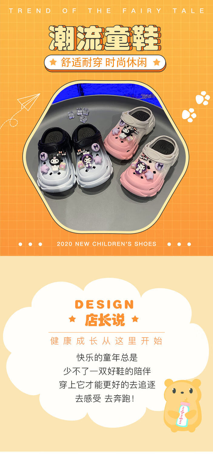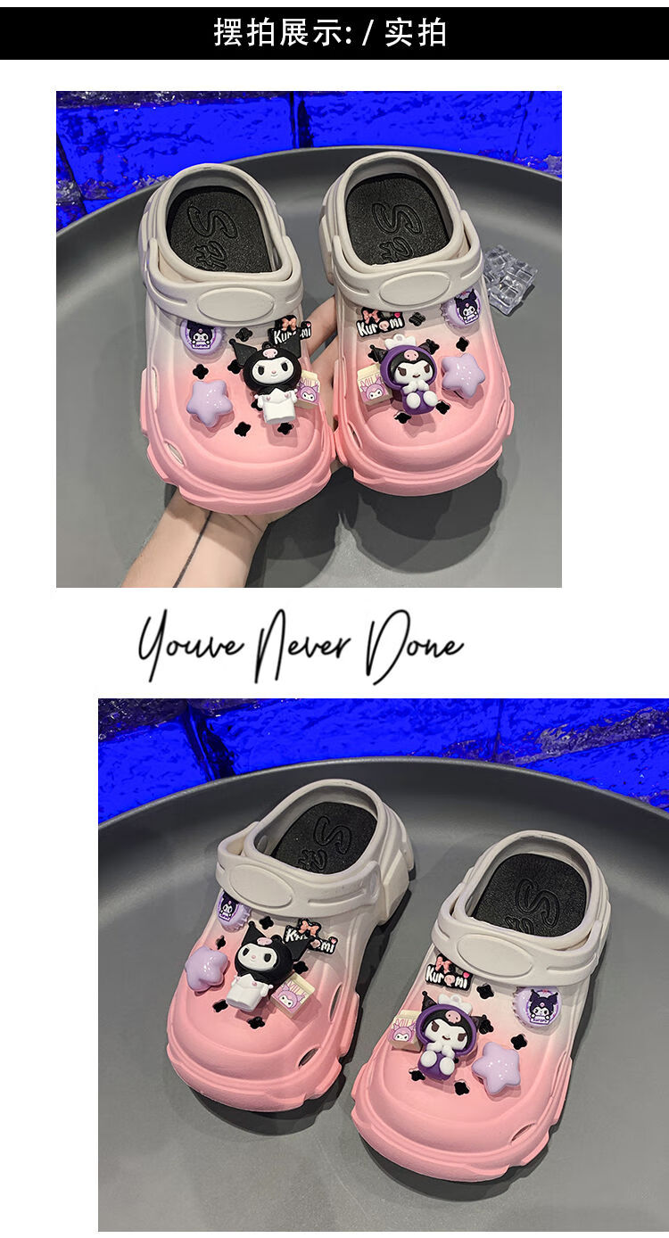 Children's Crocs Girls Summer Style 2025 New Kuromi Girls Beach Baotou Sandals Anti-Slip Parent-child Slippers Gradient Black and White SpongeBob SquarePants Size 30-31 (Inner Length 19.5cm)