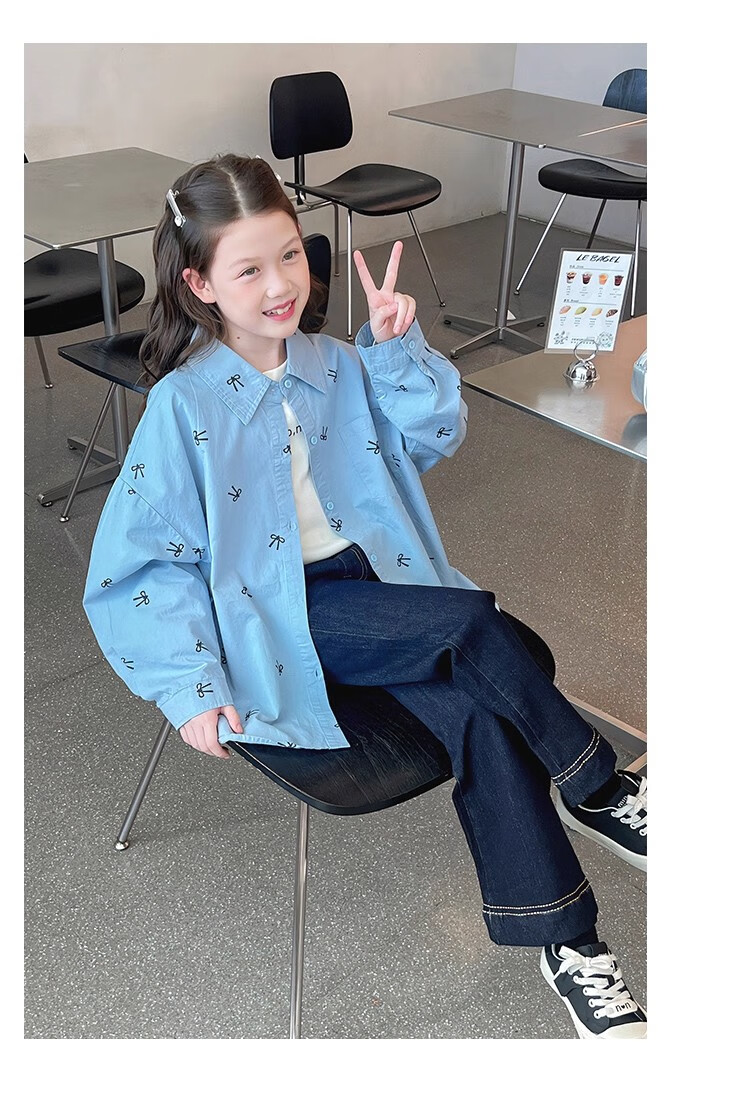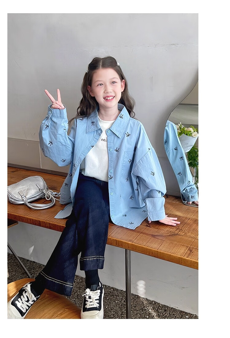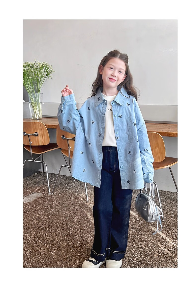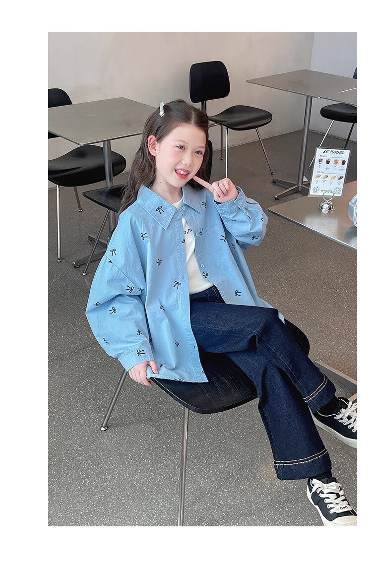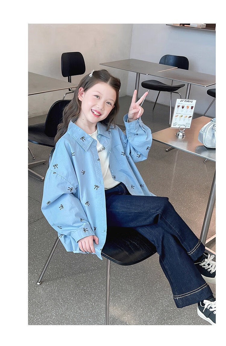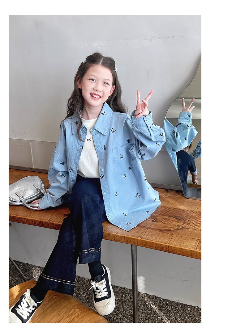 Girls' loose trendy mid-length shirts children's fashionable Internet celebrity shirts big children's tops 2025 spring and autumn new style blue 160