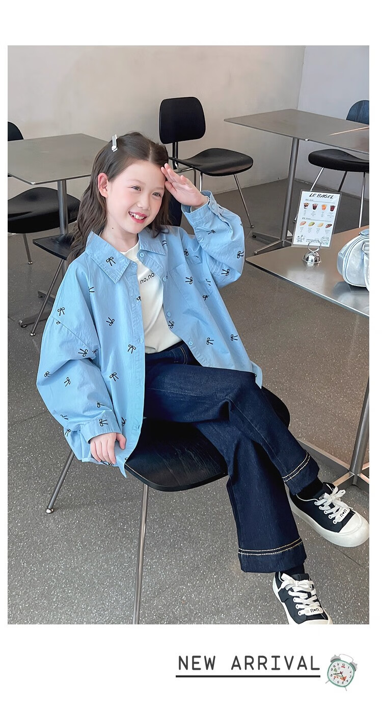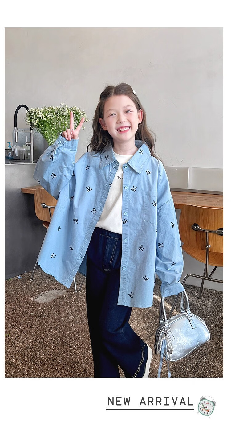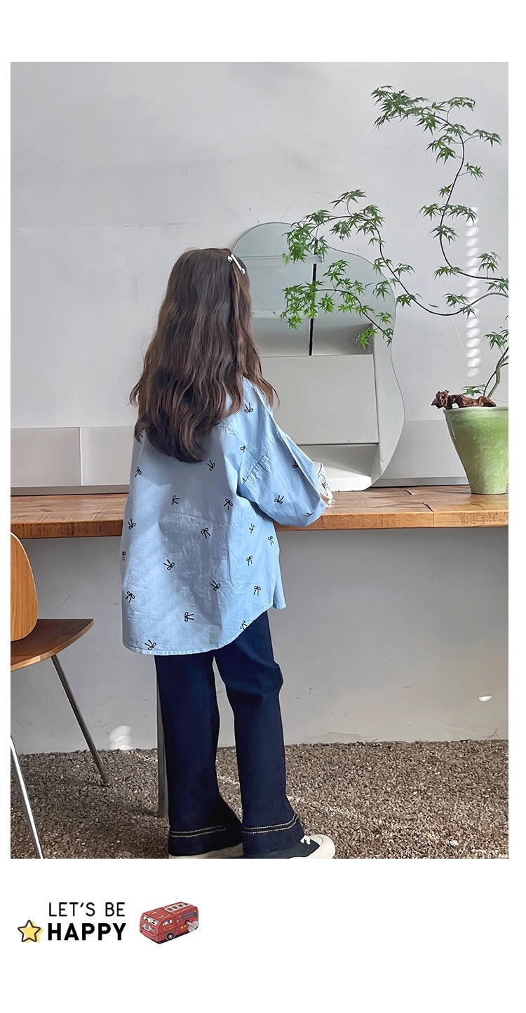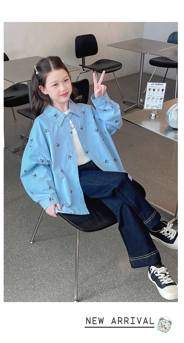 Girls' loose trendy mid-length shirts children's fashionable Internet celebrity shirts big children's tops 2025 spring and autumn new style blue 160