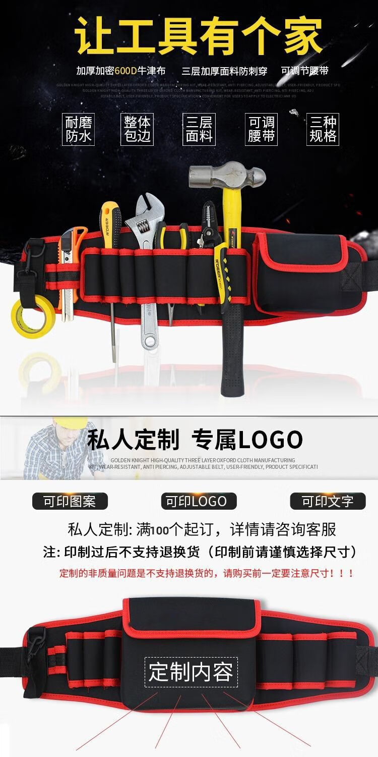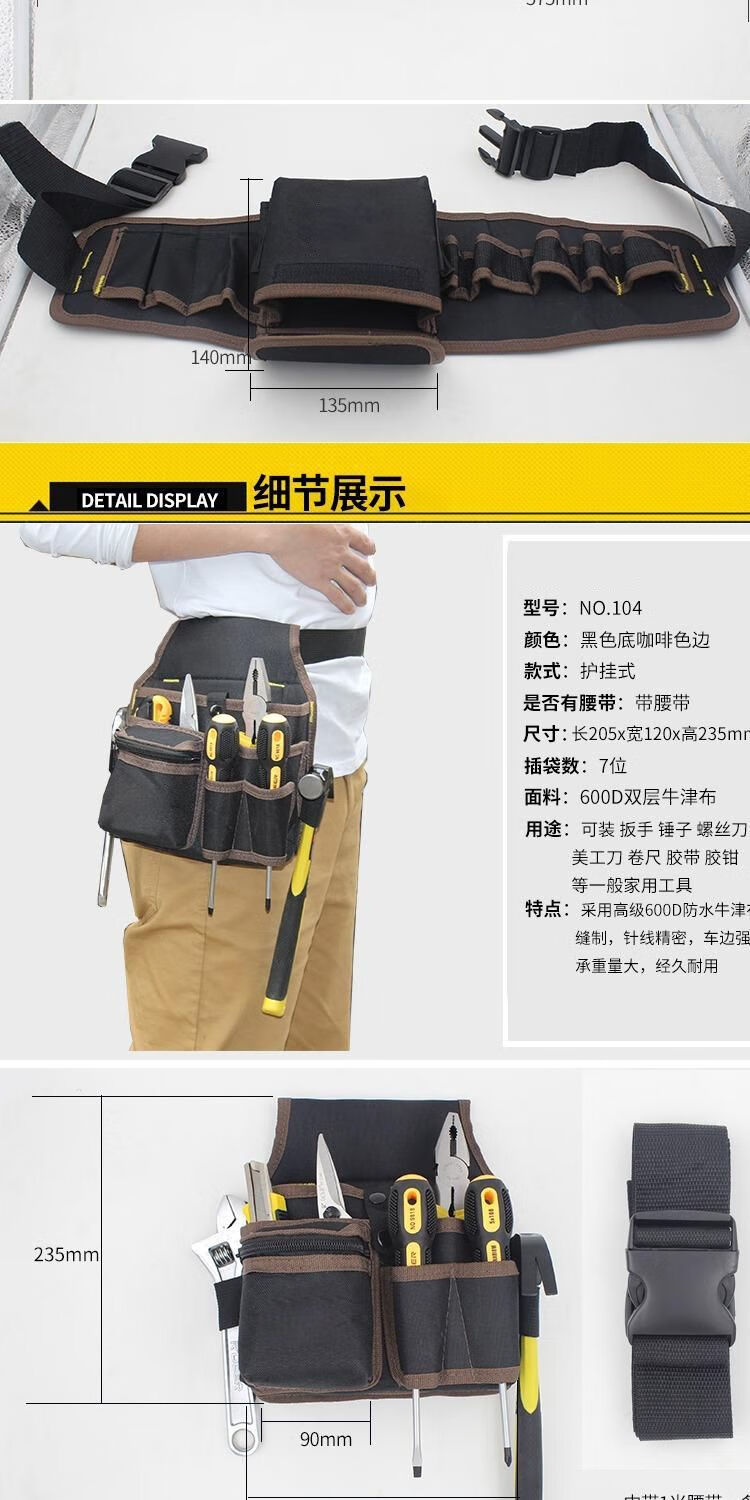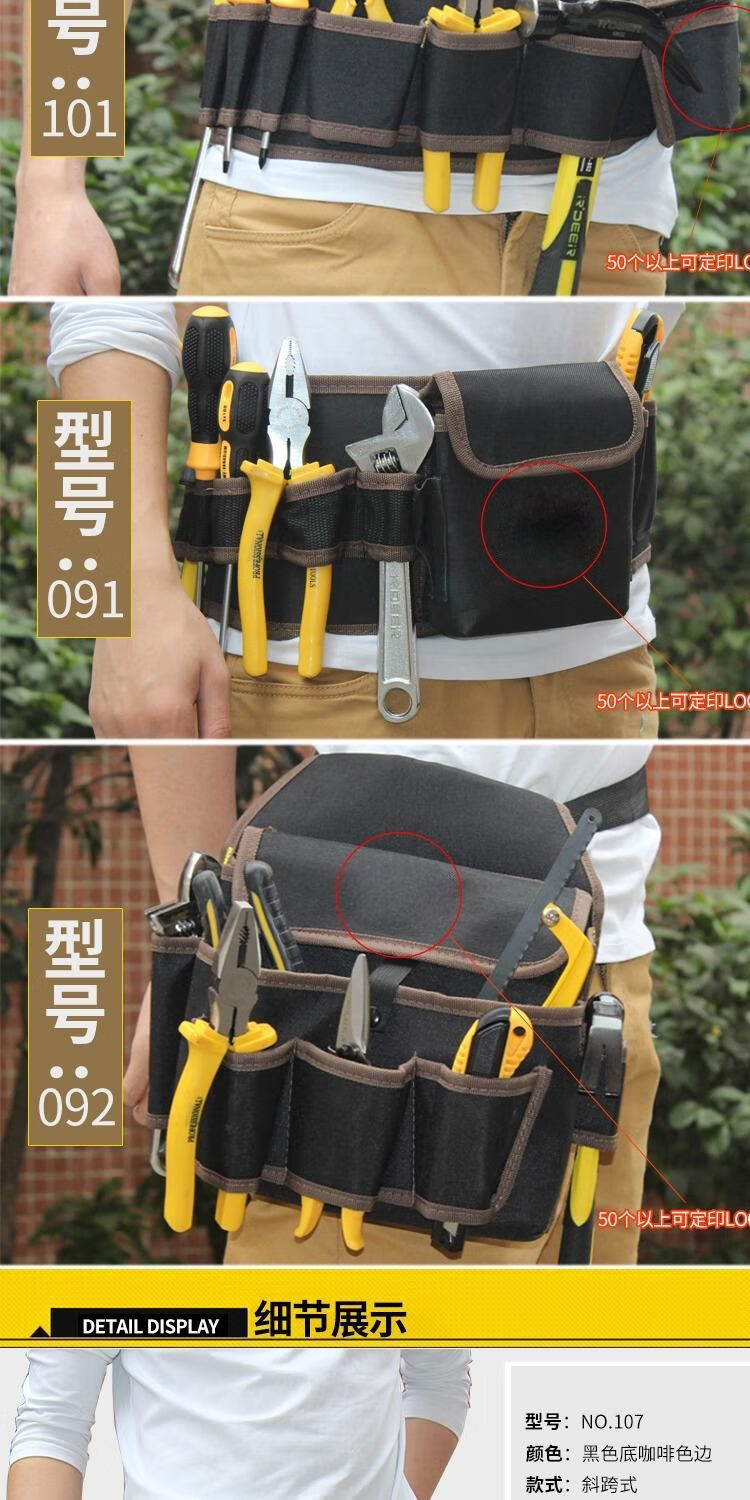 Vinoa tool waist bag canvas thickened large tool bag multifunctional small hanging bag storage electrician tool bag NO.107 without belt