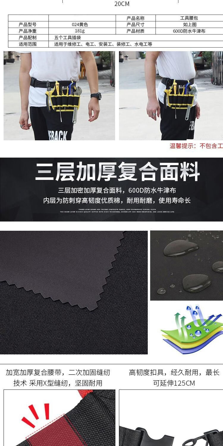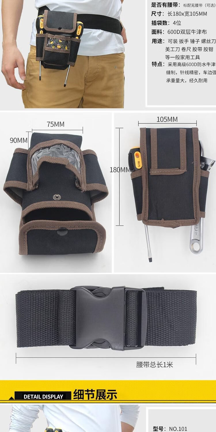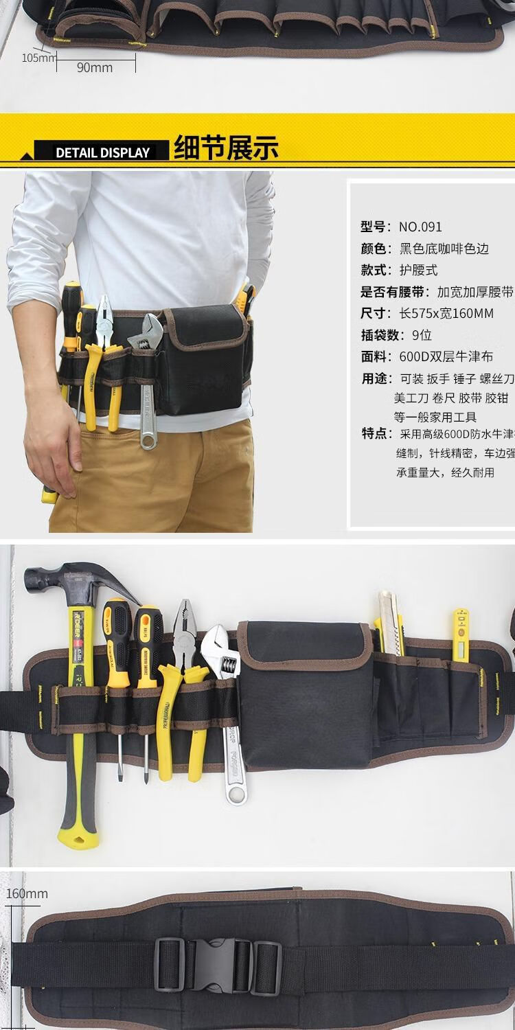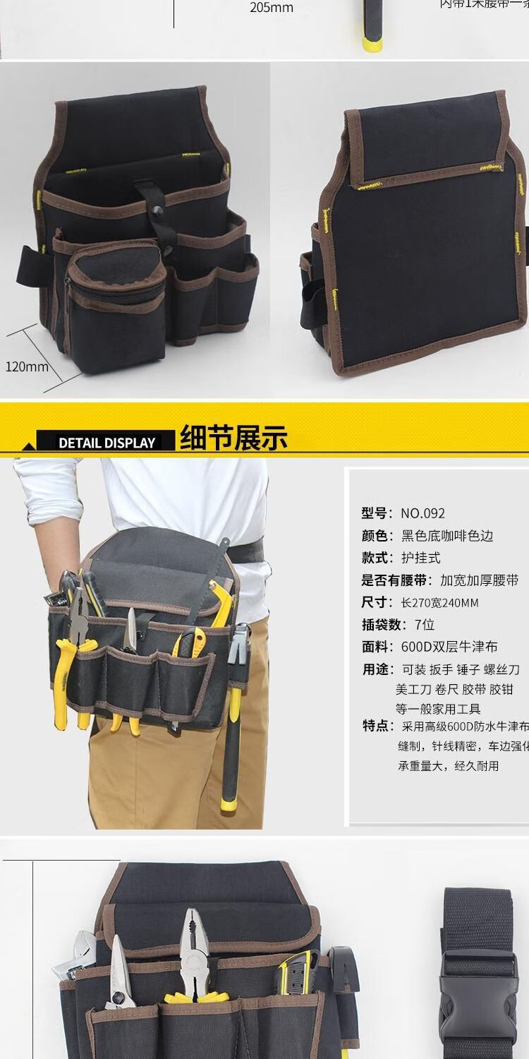 Vinoa tool waist bag canvas thickened large tool bag multifunctional small hanging bag storage electrician tool bag NO.107 without belt