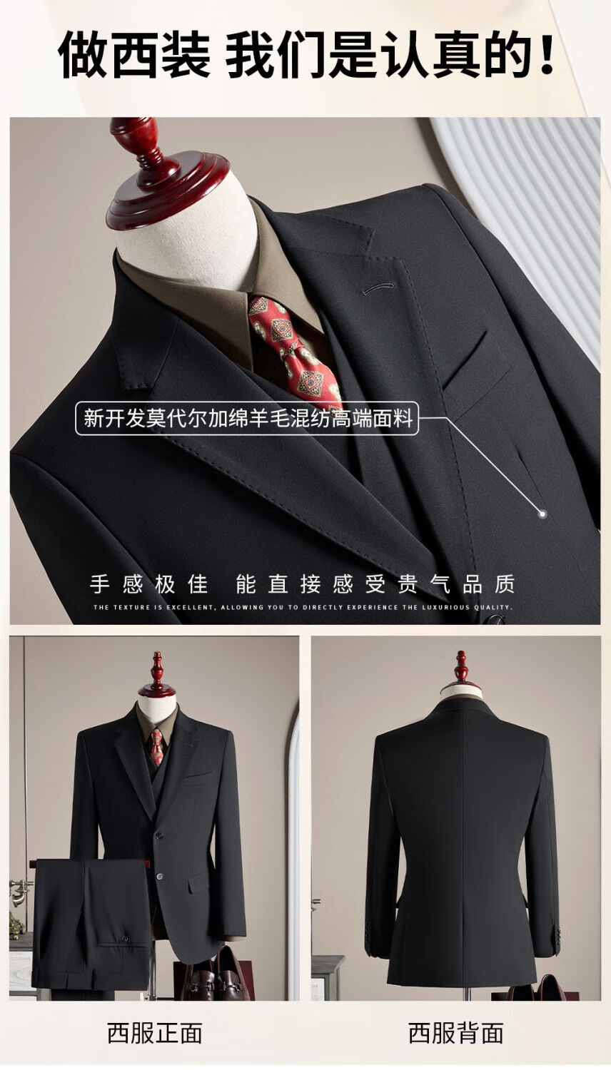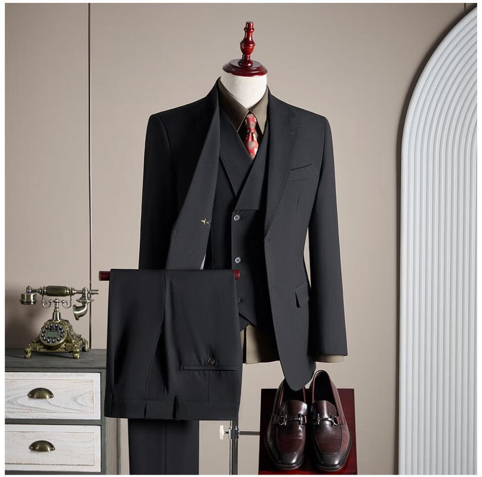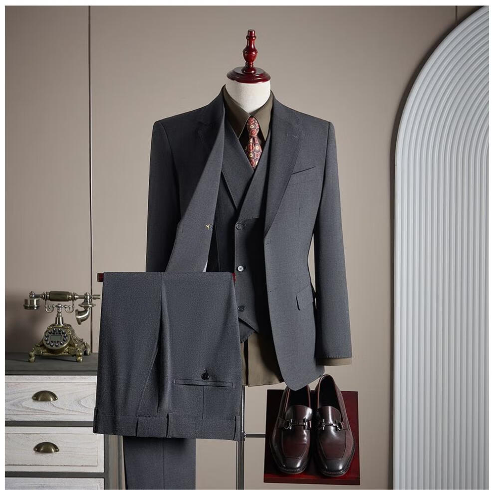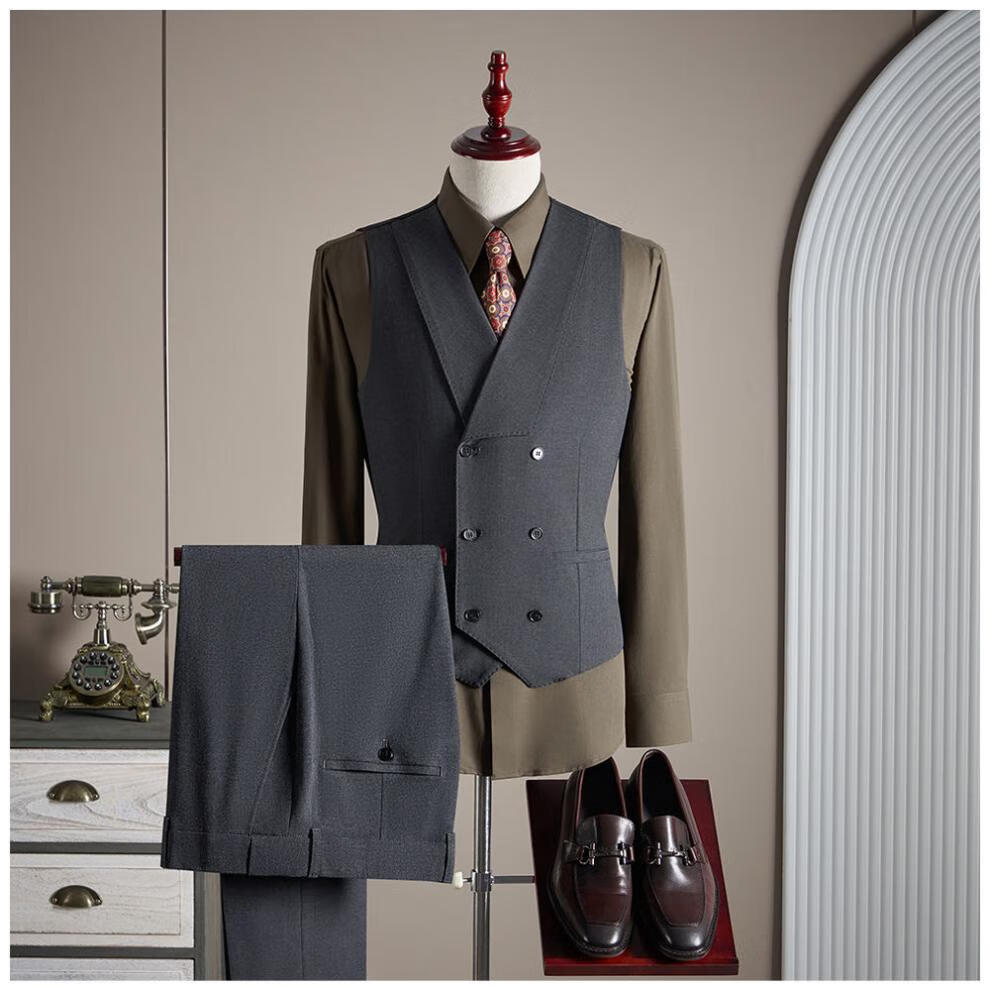Playboy New Wool Large Size Suit Men's Business Casual Suit Three-piece Winter Wedding Dress Host Performance Suit Tan Three-piece Suit 5XL