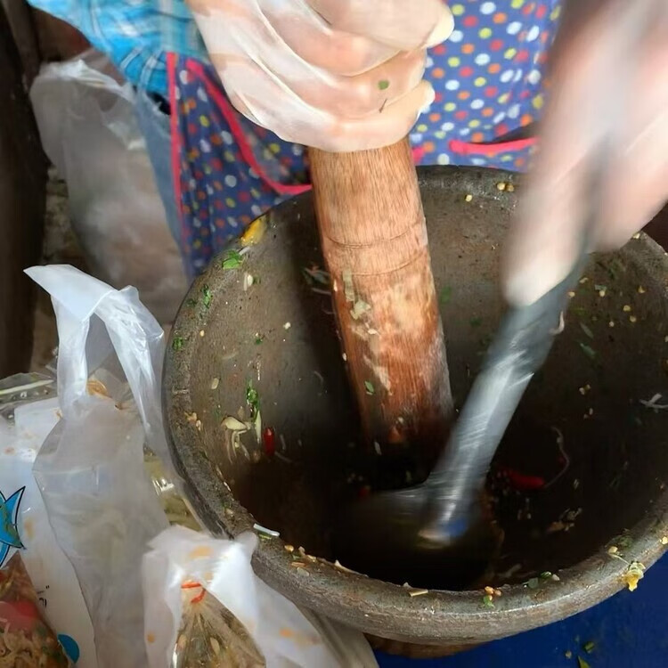 Raft core garlic pounder stone mortar old-fashioned Laos bowl cold salad pounded chicken feet grinder manual medicine jar sand mortar No. 10 + with stick