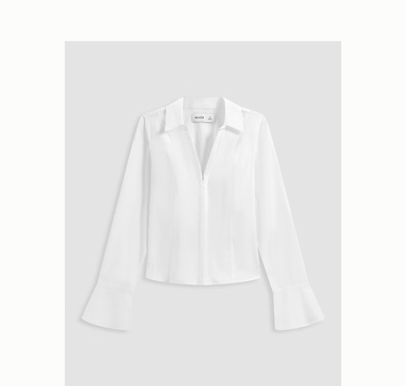HOLLISTER25 Autumn and Winter Y2K Waist Belted Poplin Bell Sleeve Shirt Women's 340-5490 White XS (160/80A)