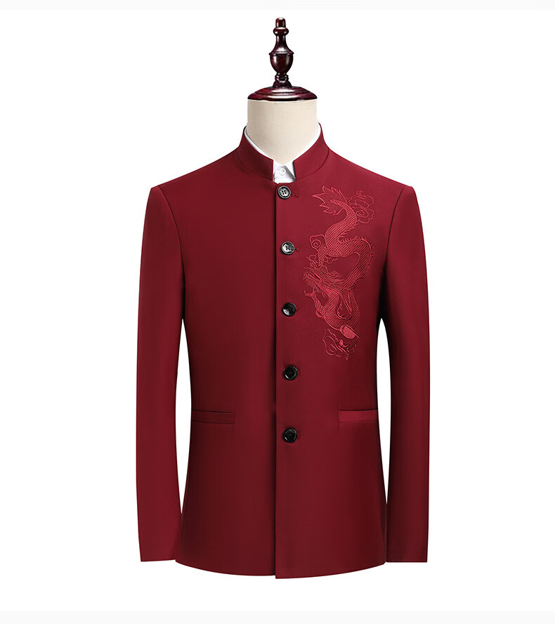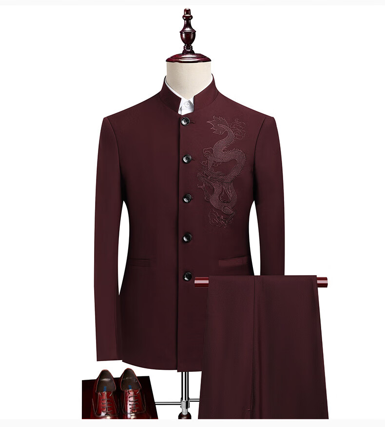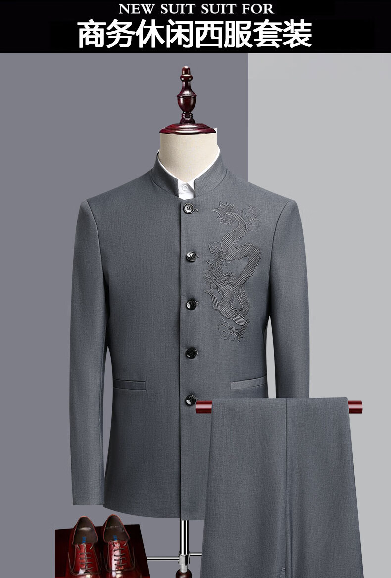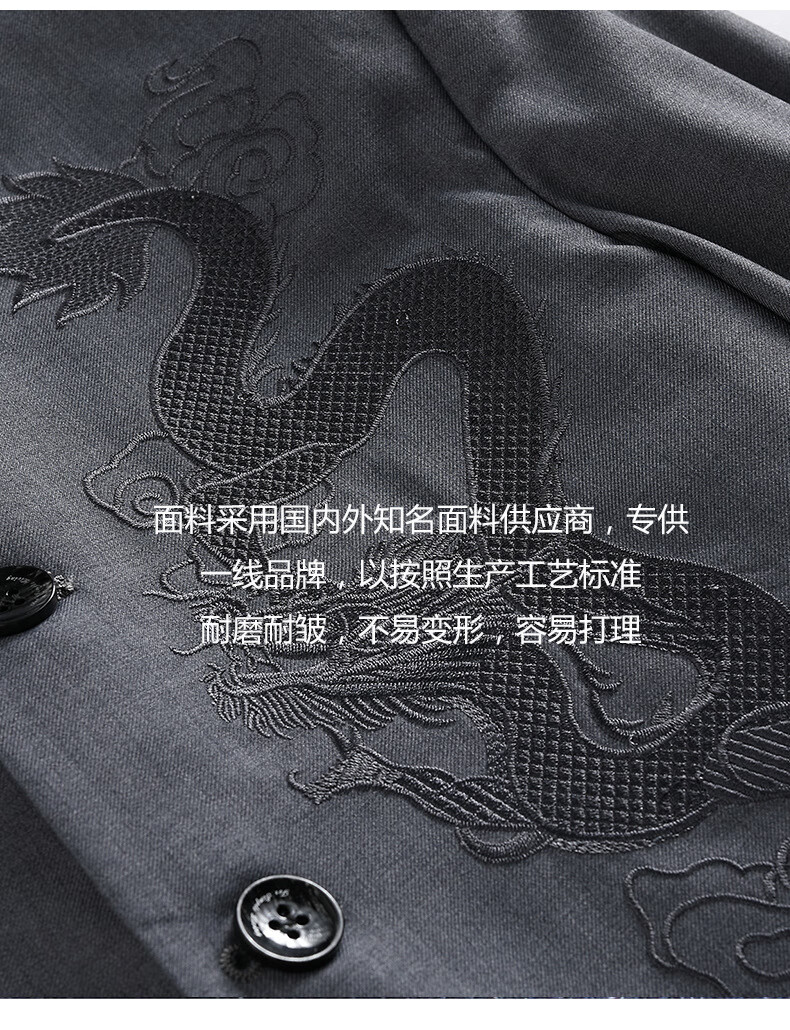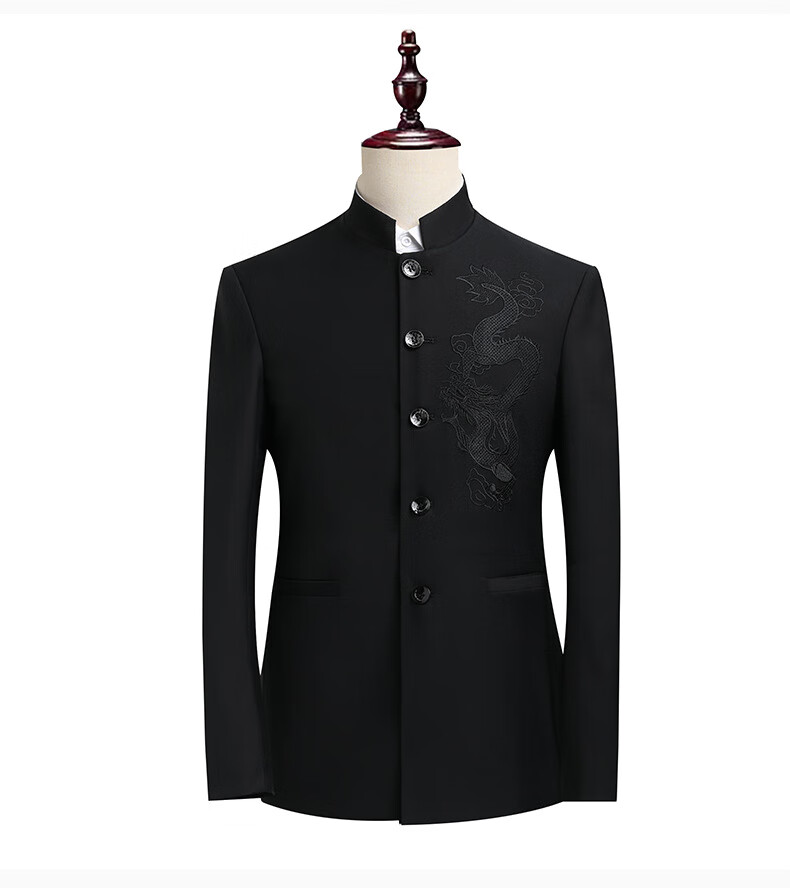 ROMON Chinese stand collar suit, Chinese tunic suit for young men, embroidered dragon pattern wedding banquet Chinese dress for performance, black embroidered dragon (top + pants) XL