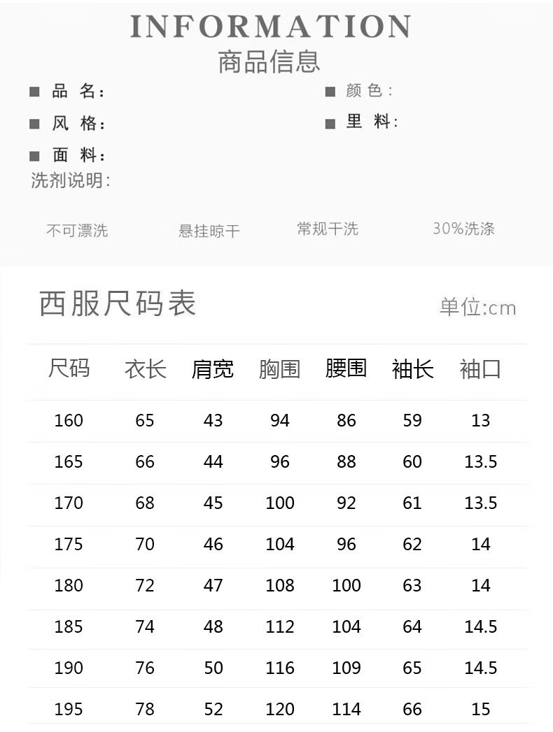 China (cm) 165 / 88-90 170 / 96-98 175 / 108-110 180 / 118-122 185 / 126-130
