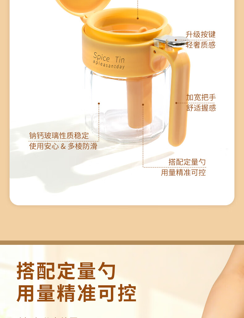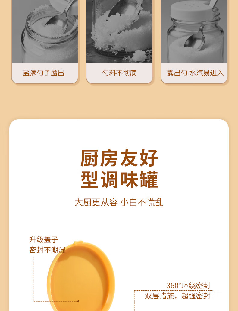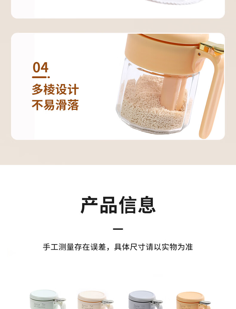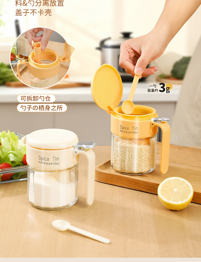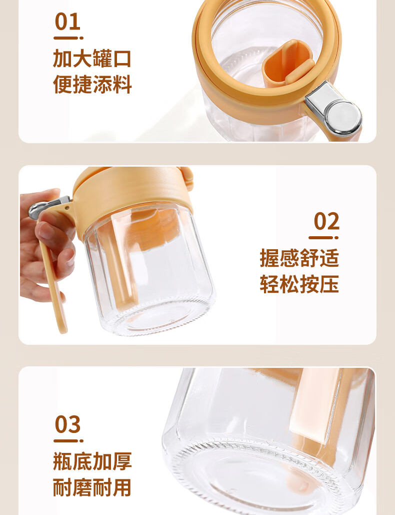 Light luxury seasoning jar salt jar sealed moisture-proof glass jar kitchen household seasoning box bottle quantitative seasoning bottle off-white free spoon 400ml