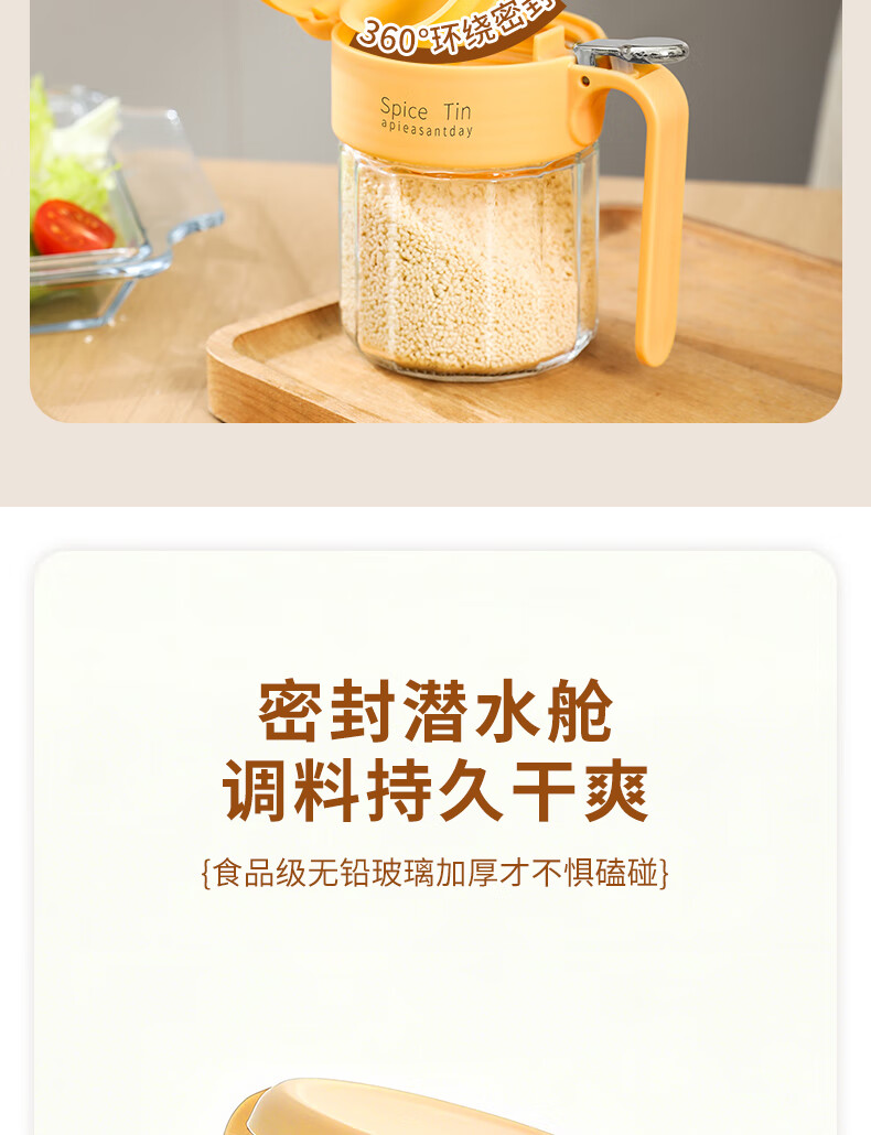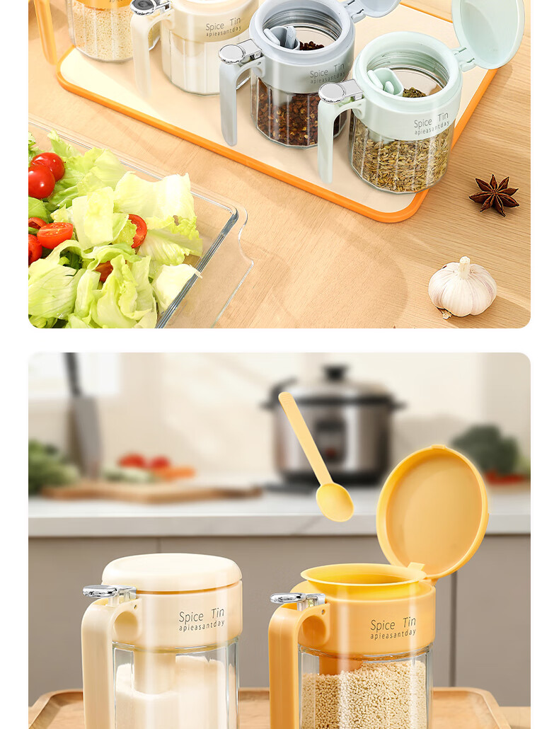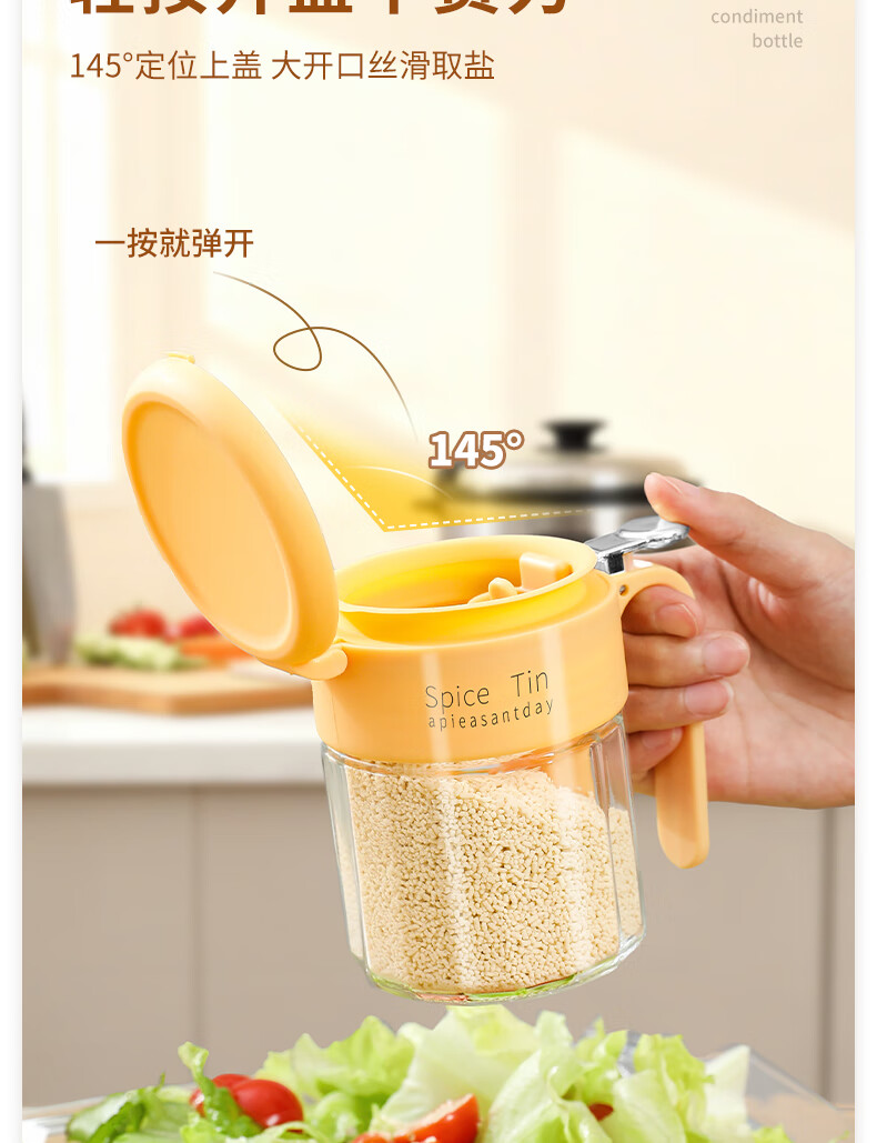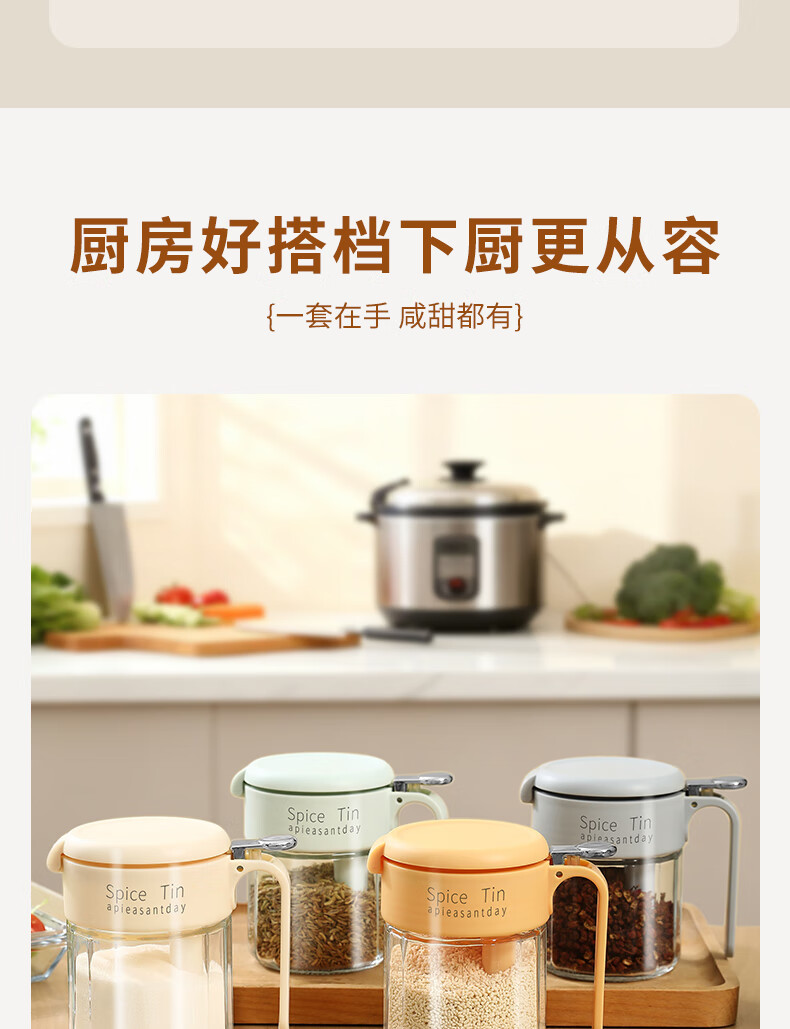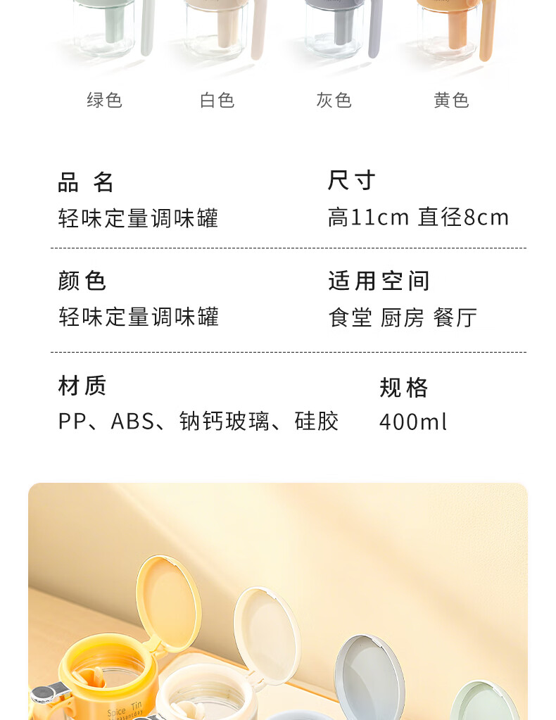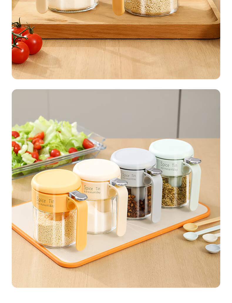 Light luxury seasoning jar salt jar sealed moisture-proof glass jar kitchen household seasoning box bottle quantitative seasoning bottle off-white free spoon 400ml