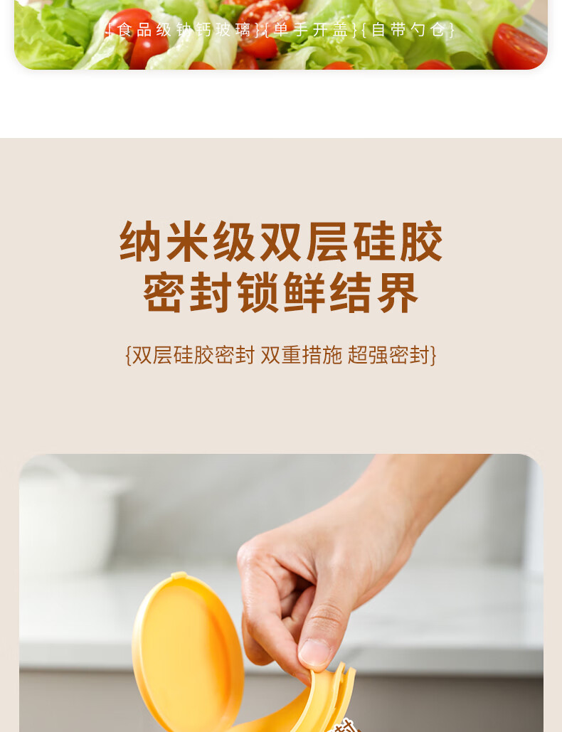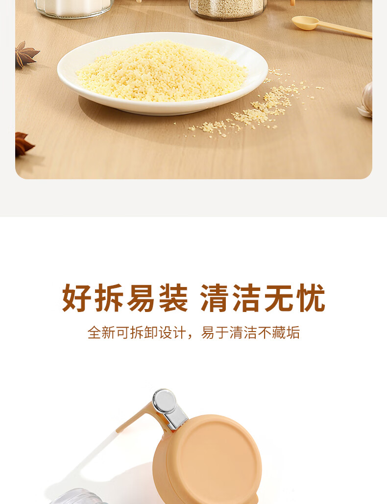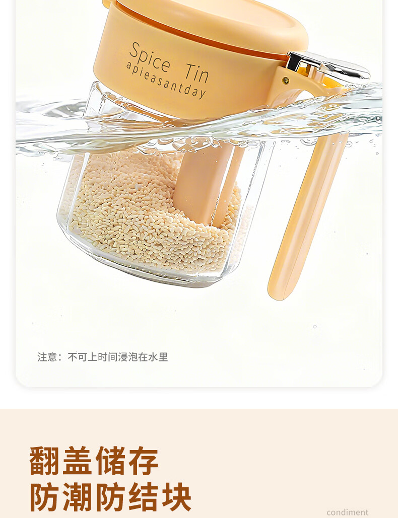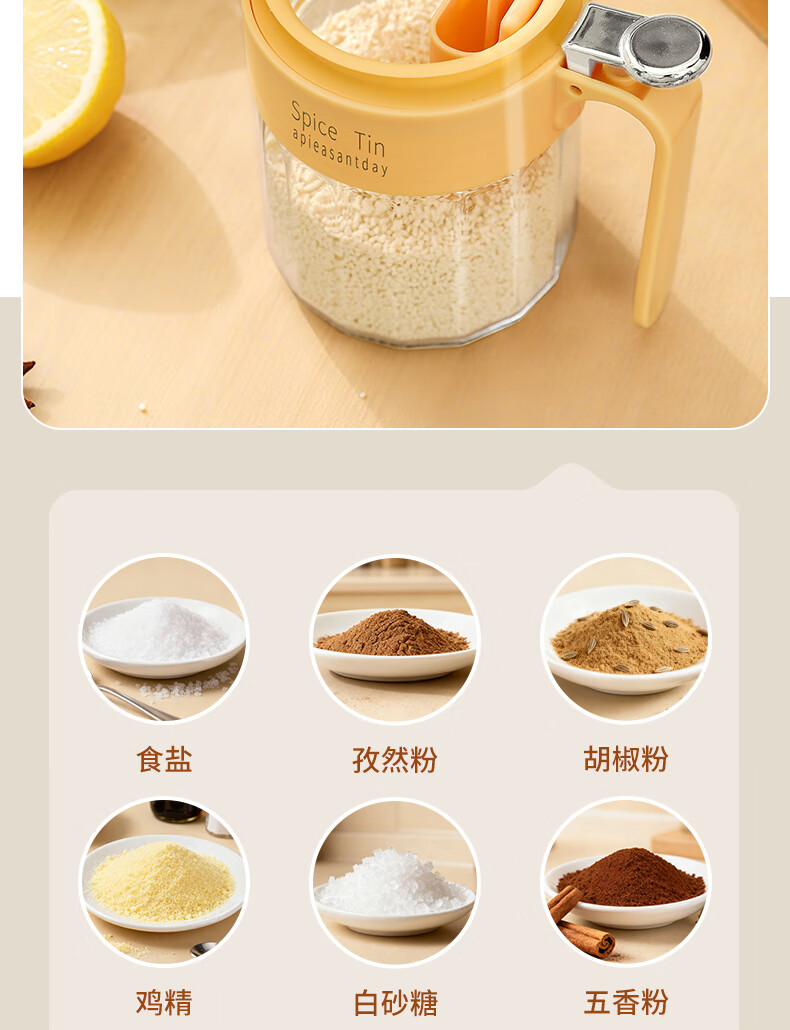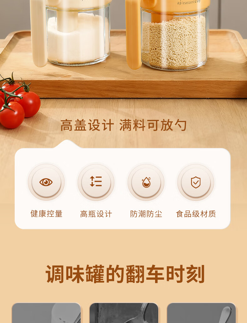 Light luxury seasoning jar salt jar sealed moisture-proof glass jar kitchen household seasoning box bottle quantitative seasoning bottle off-white free spoon 400ml