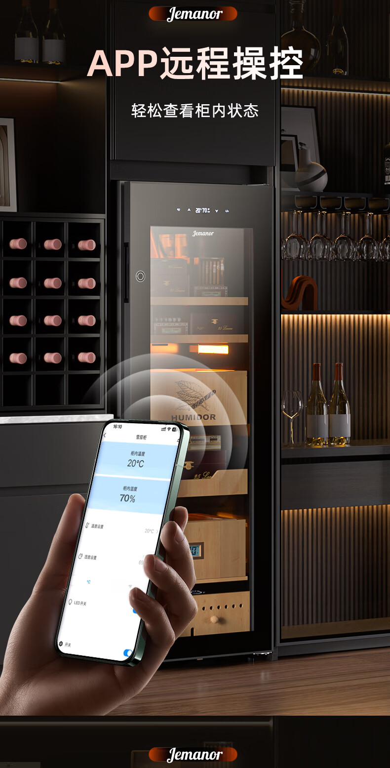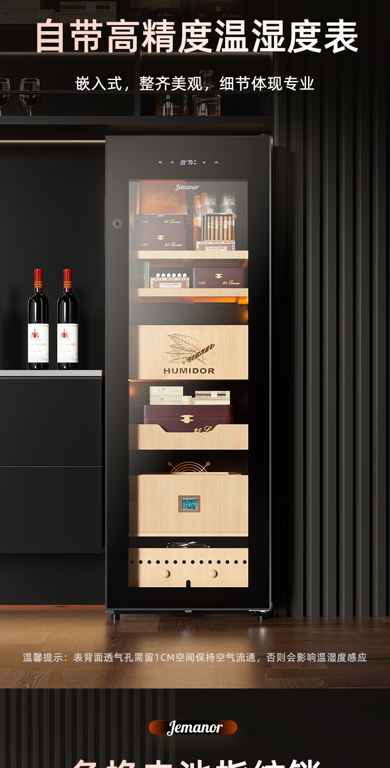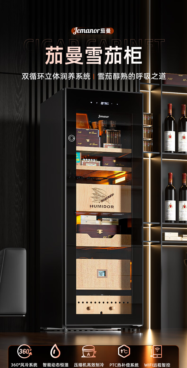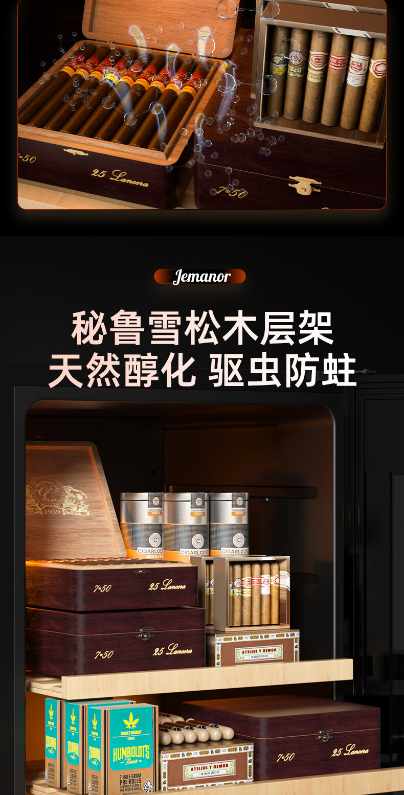 Jemanor cigar cabinet with constant temperature and humidity, pure ammonia wifi, Spanish cedar wood compressor, air-cooling, energy-saving household, small mini smart fingerprint lock, refrigerated eggplant culture, double naked culture box + naked culture basket + 2 box culture racks, 1.22 m 160L bionic eggplant room fingerprint lock + wifi + pure ammonia UV sterilization + whiskey culture eggplant