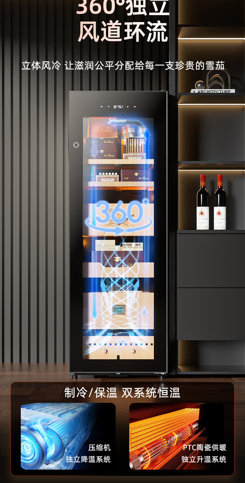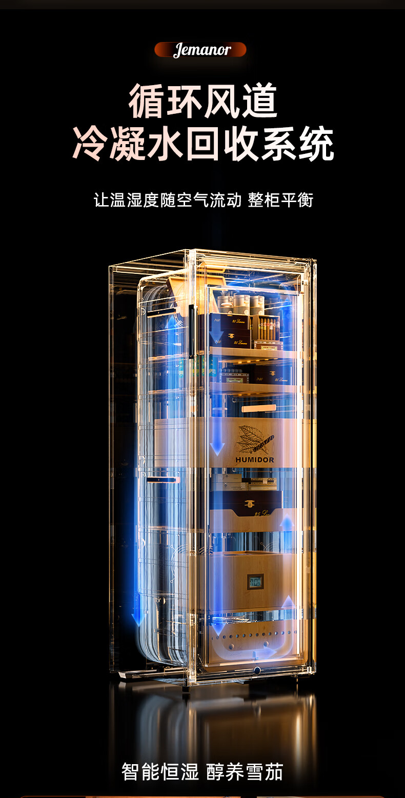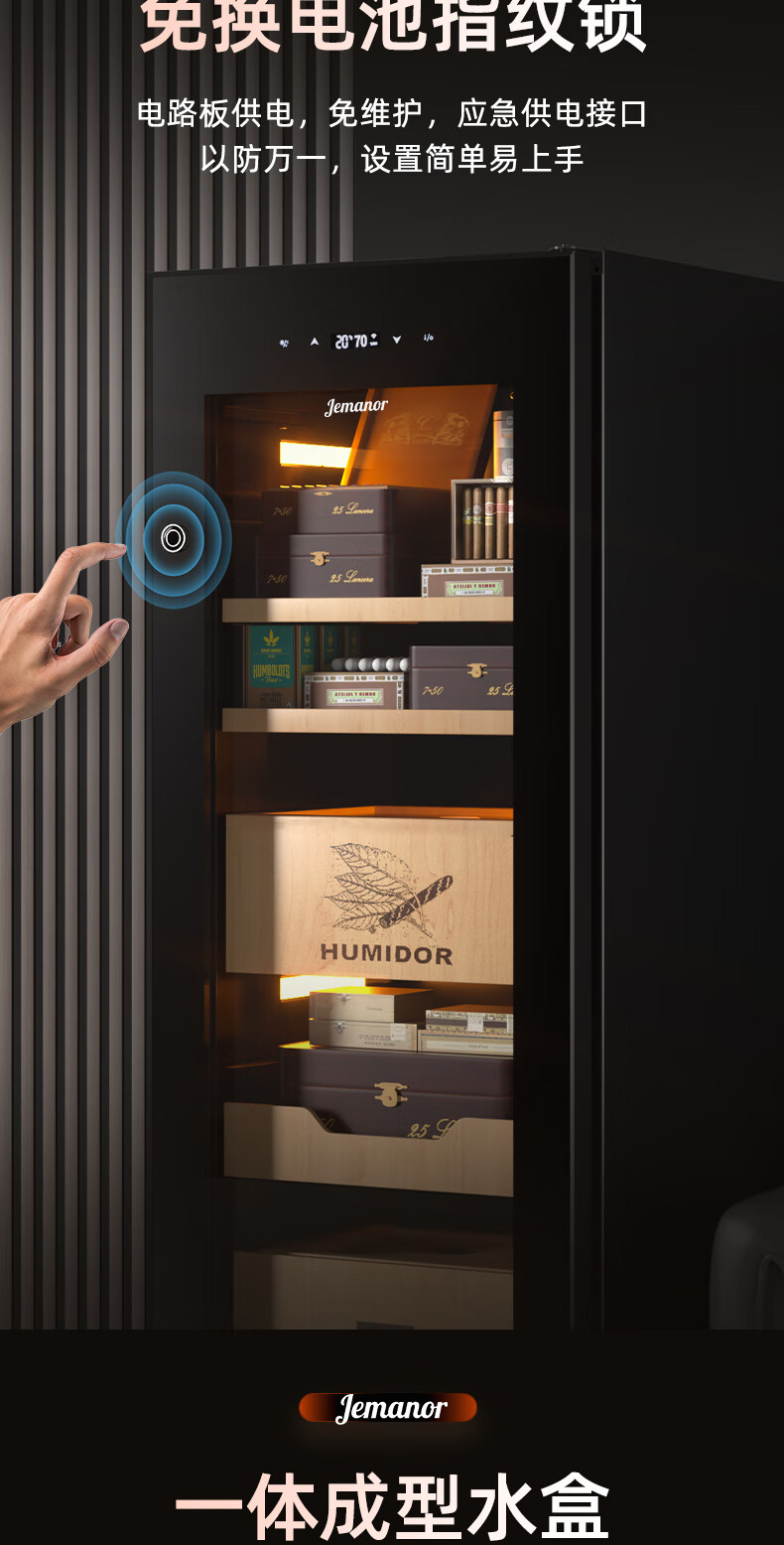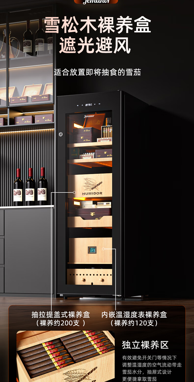Jemanor cigar cabinet with constant temperature and humidity, pure ammonia wifi, Spanish cedar wood compressor, air-cooling, energy-saving household, small mini smart fingerprint lock, refrigerated eggplant culture, double naked culture box + naked culture basket + 2 box culture racks, 1.22 m 160L bionic eggplant room fingerprint lock + wifi + pure ammonia UV sterilization + whiskey culture eggplant