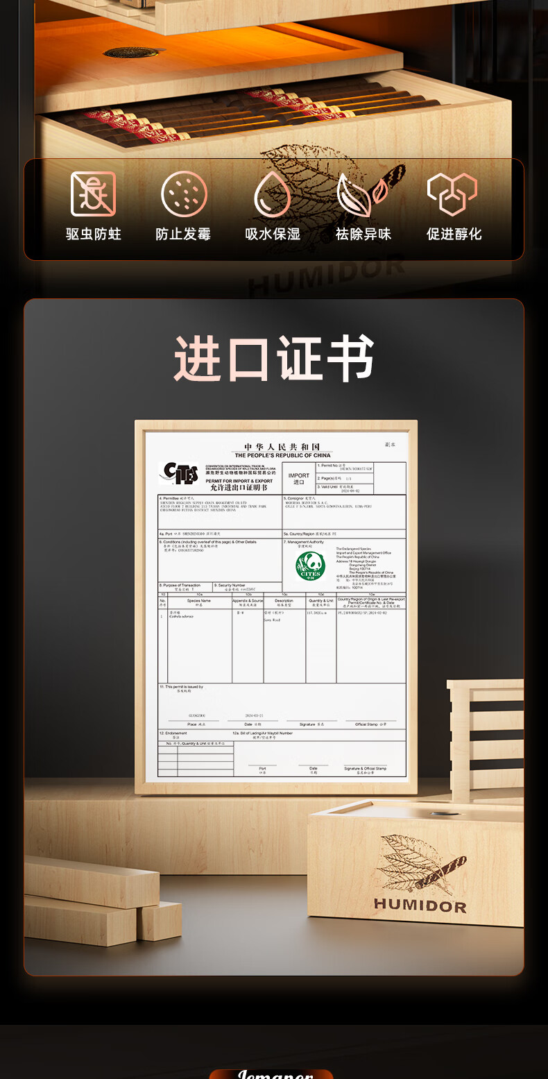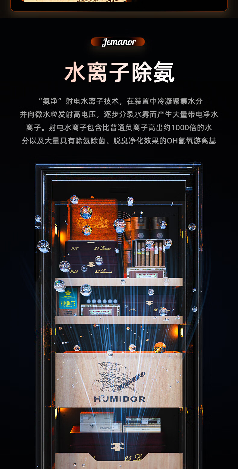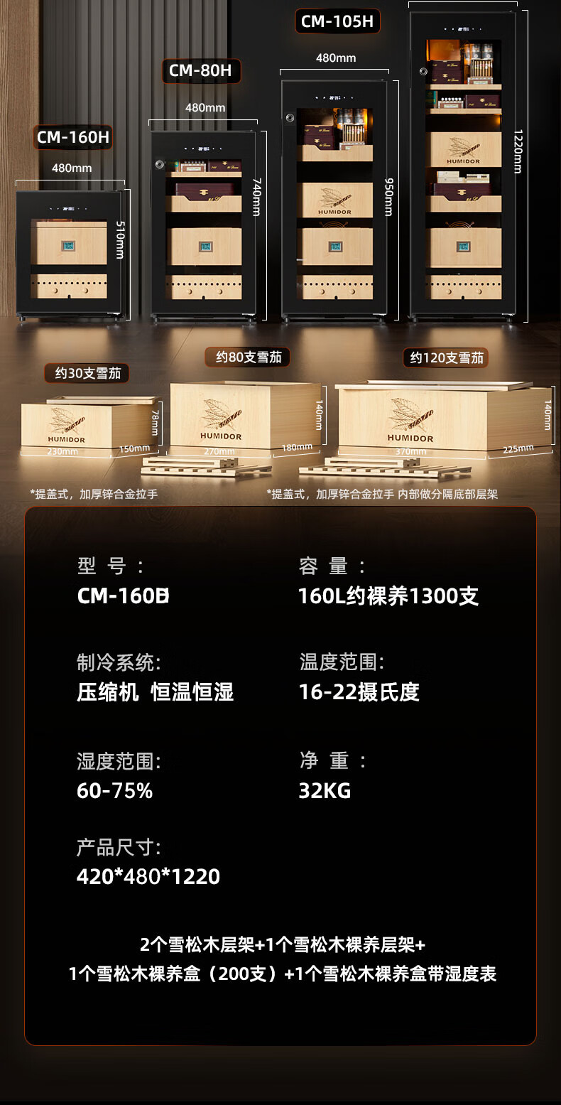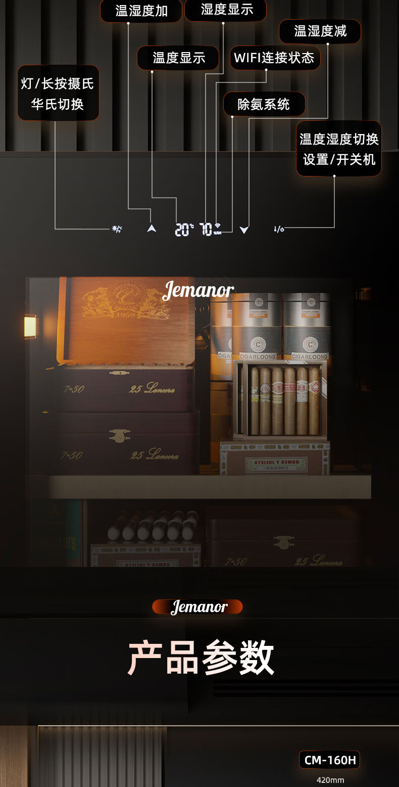 Jemanor cigar cabinet with constant temperature and humidity, pure ammonia wifi, Spanish cedar wood compressor, air-cooling, energy-saving household, small mini smart fingerprint lock, refrigerated eggplant culture, double naked culture box + naked culture basket + 2 box culture racks, 1.22 m 160L bionic eggplant room fingerprint lock + wifi + pure ammonia UV sterilization + whiskey culture eggplant