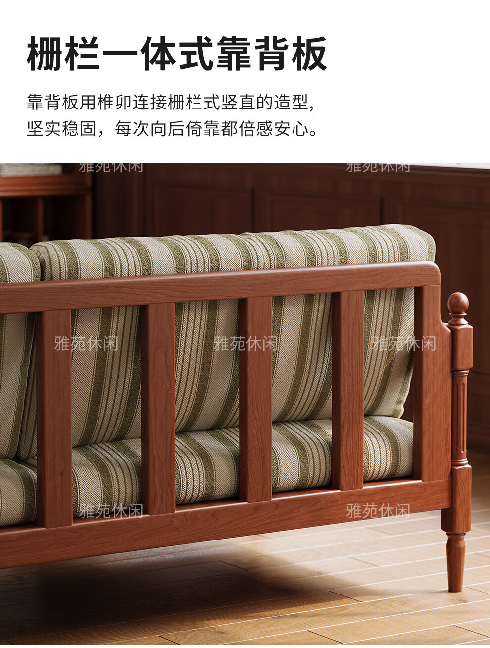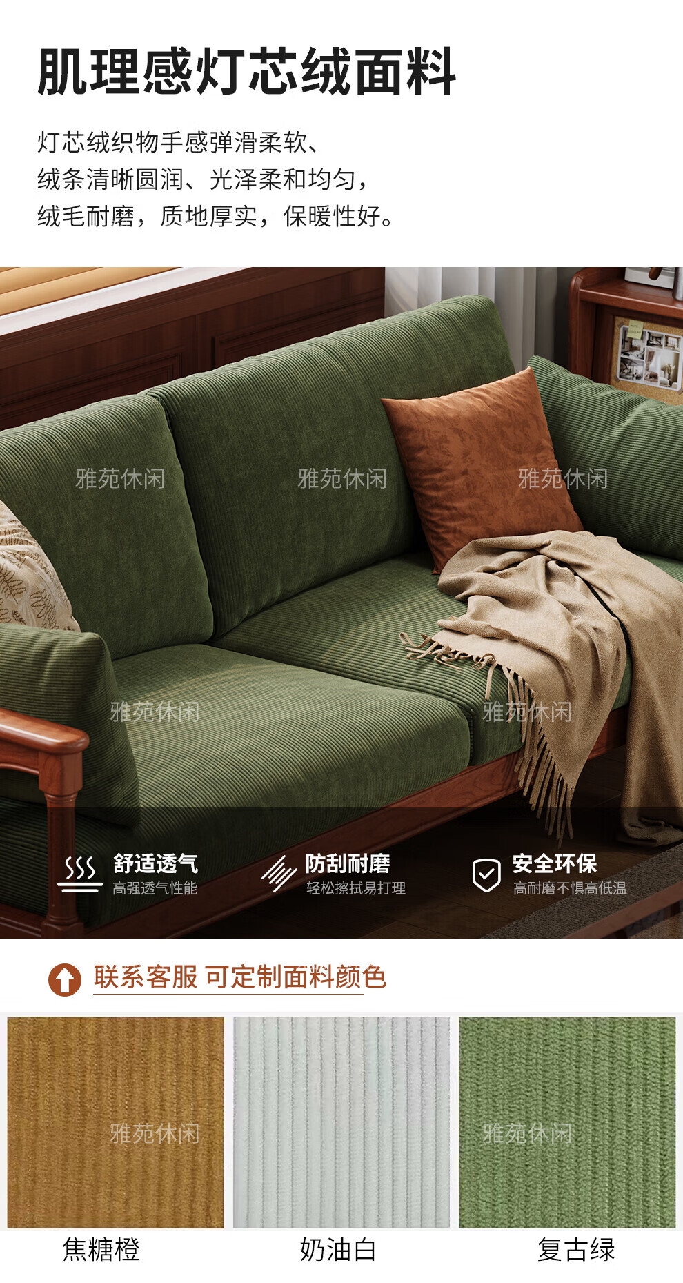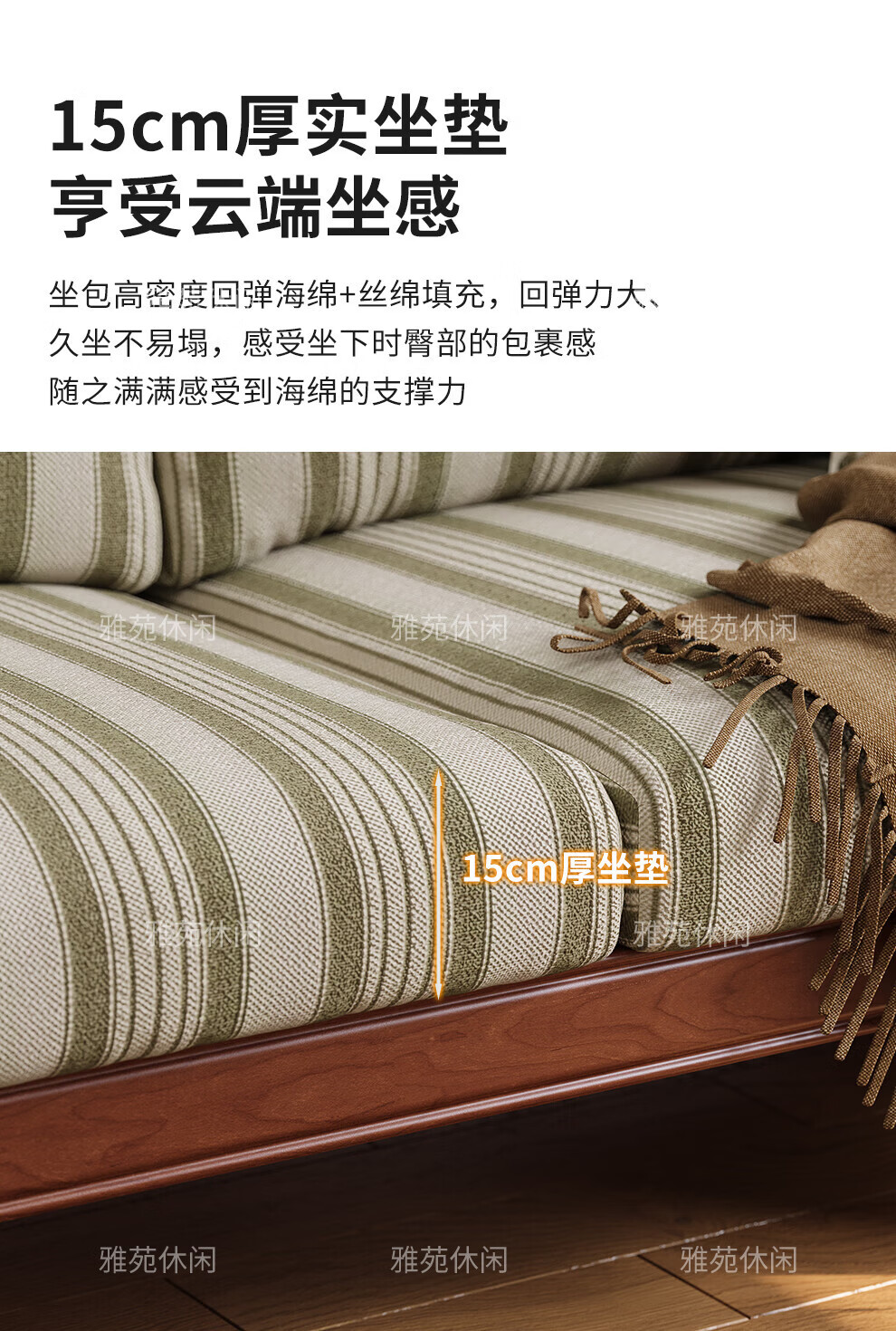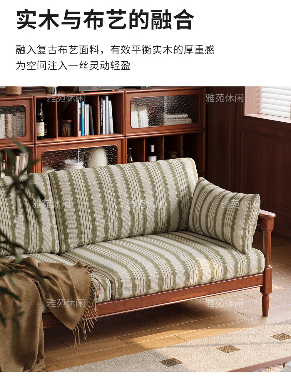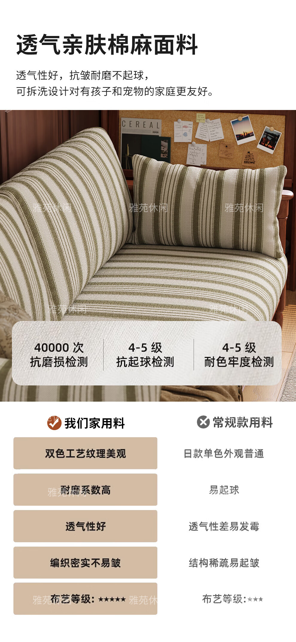 Yayuan leisure fabric sofa 2025 new style retro boxwood home living room straight three-seat solid wood sofa cotton and linen green striped three-seat sofa (soft and comfortable, skin-friendly and breathable) 2100*880*850mm
