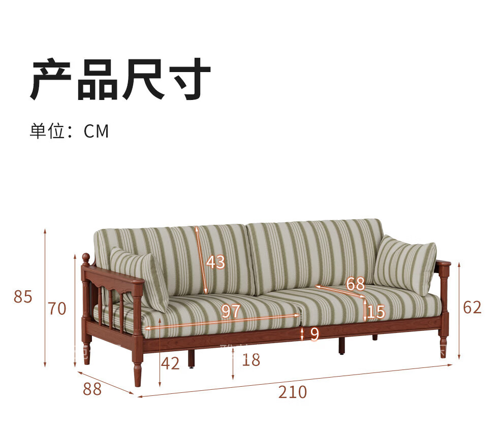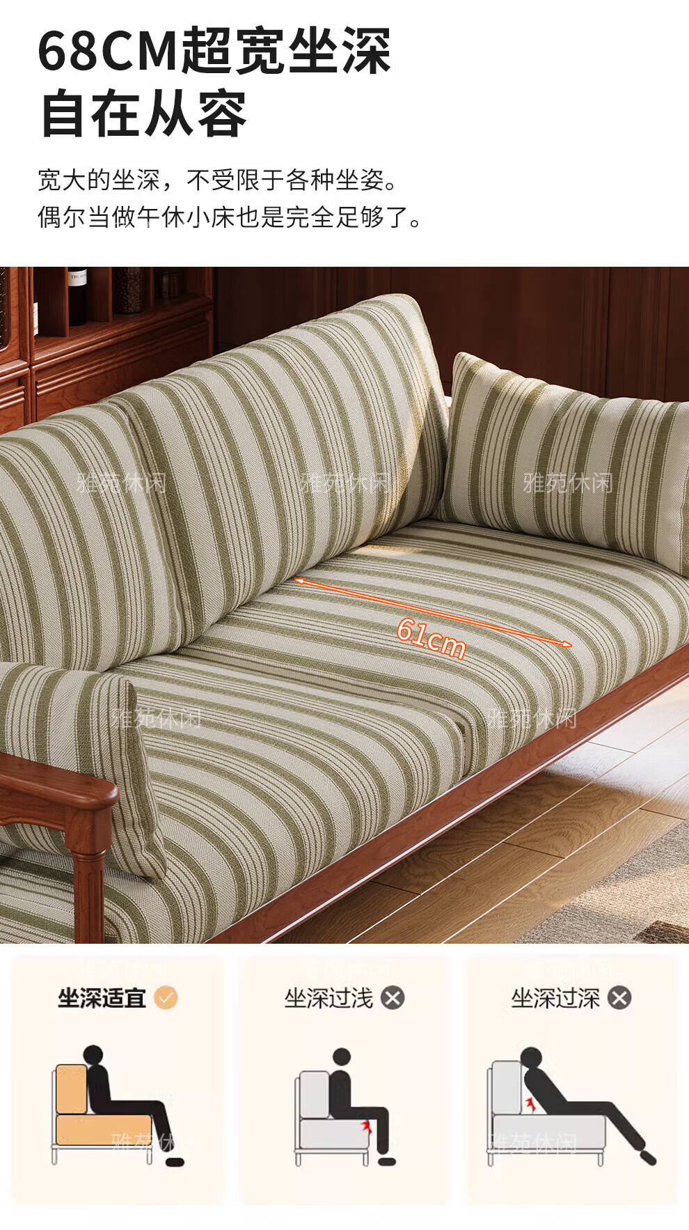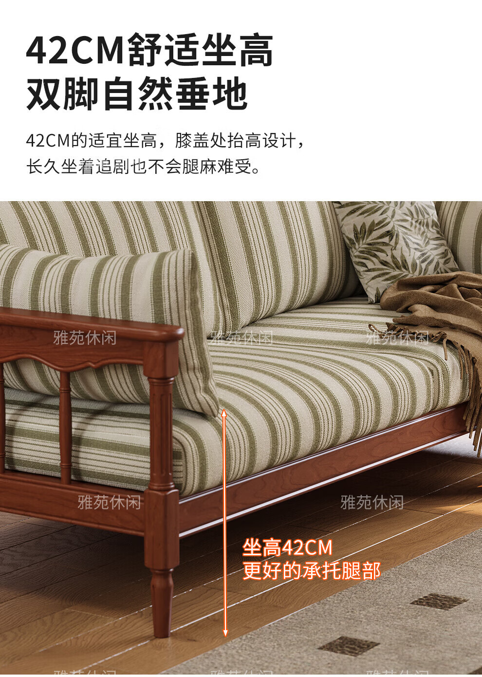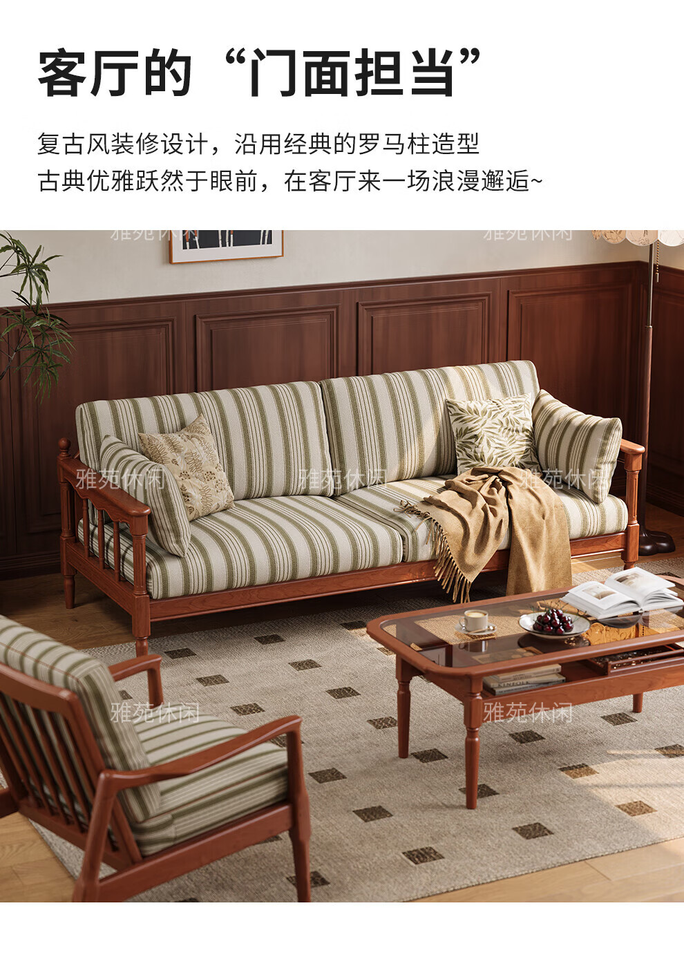 Yayuan leisure fabric sofa 2025 new style retro boxwood home living room straight three-seat solid wood sofa cotton and linen green striped three-seat sofa (soft and comfortable, skin-friendly and breathable) 2100*880*850mm