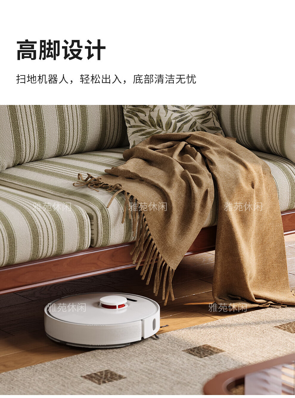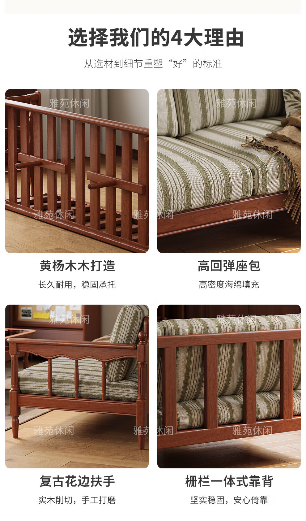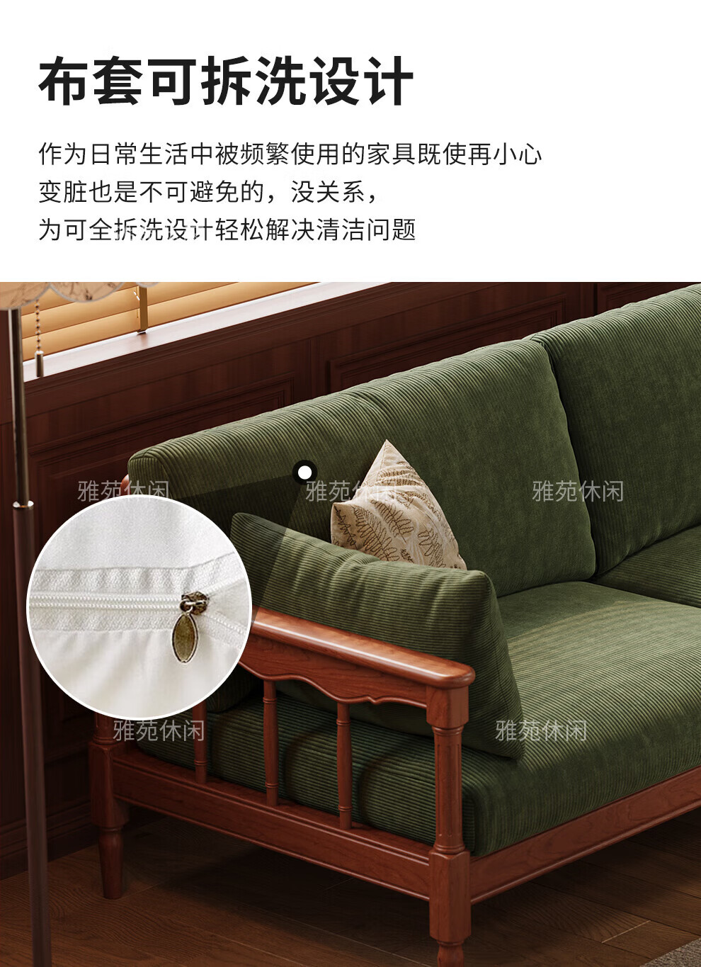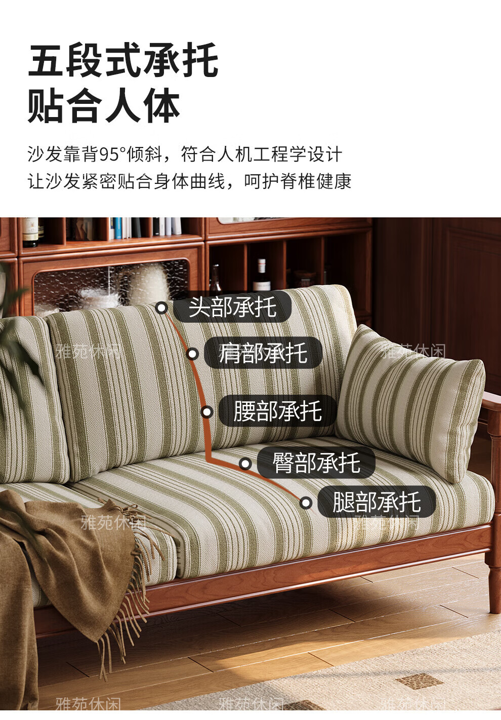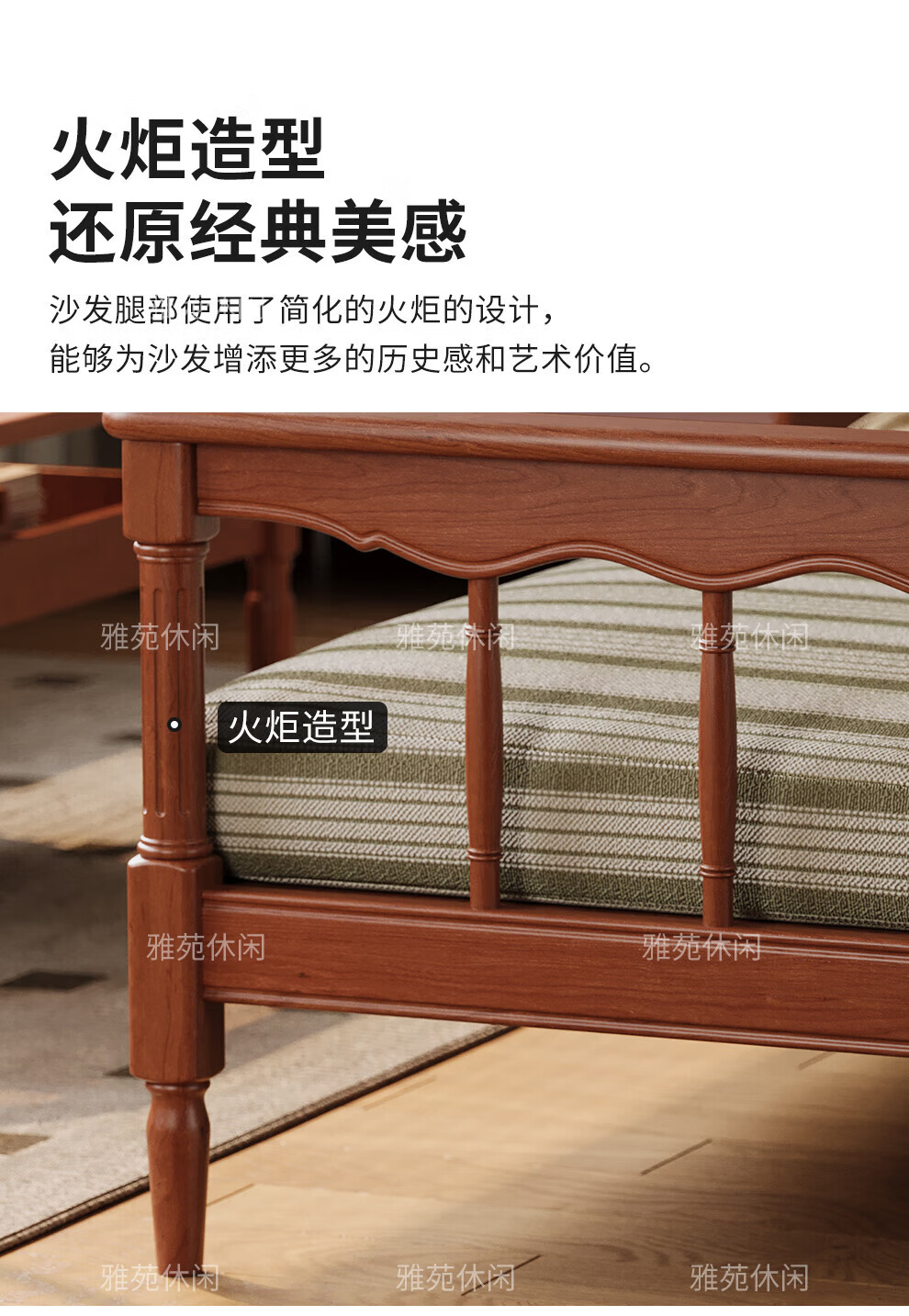 Yayuan leisure fabric sofa 2025 new style retro boxwood home living room straight three-seat solid wood sofa cotton and linen green striped three-seat sofa (soft and comfortable, skin-friendly and breathable) 2100*880*850mm