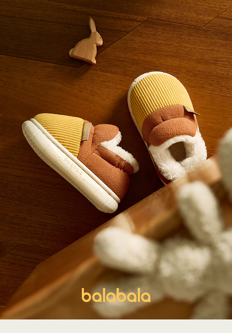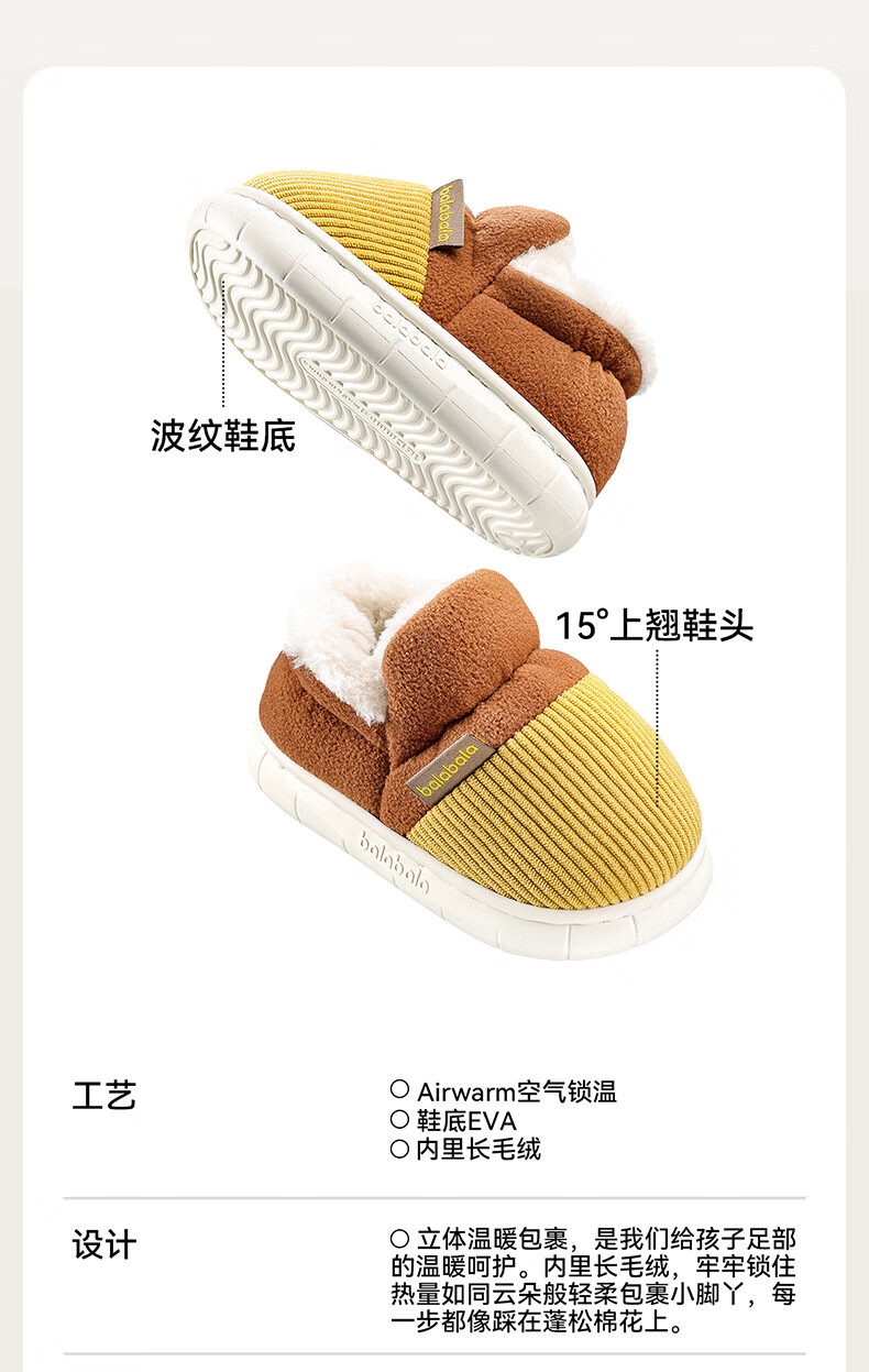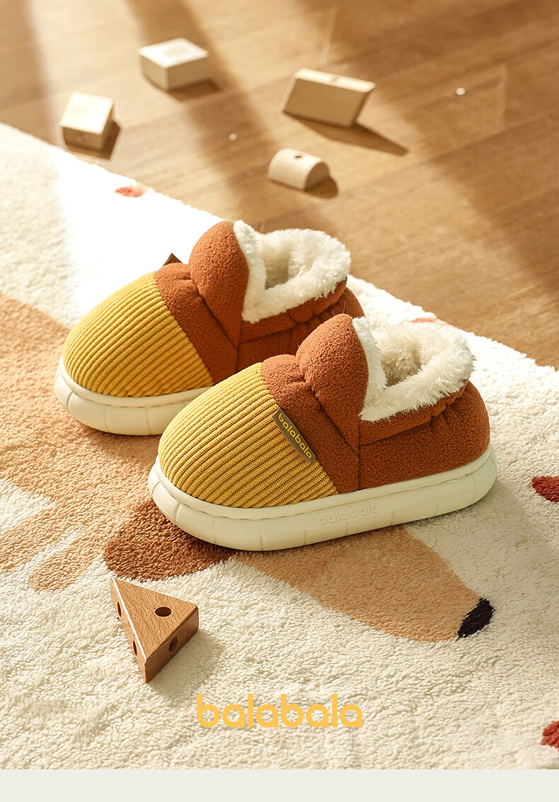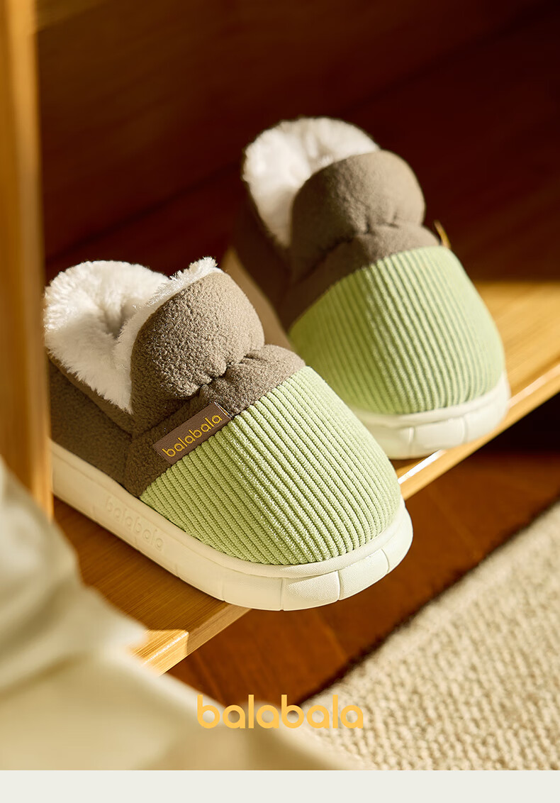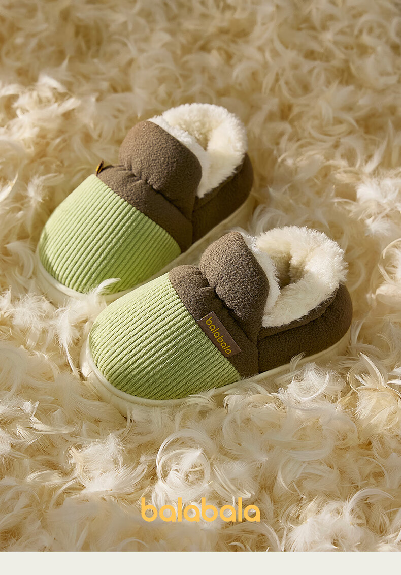 BALABALA children's cotton slippers, winter thickened fur shoes for boys and girls, baby indoor warm home slippers for small, medium and large children, emerald green 21, inner length 14cm, suitable for feet 13-13.5cm long