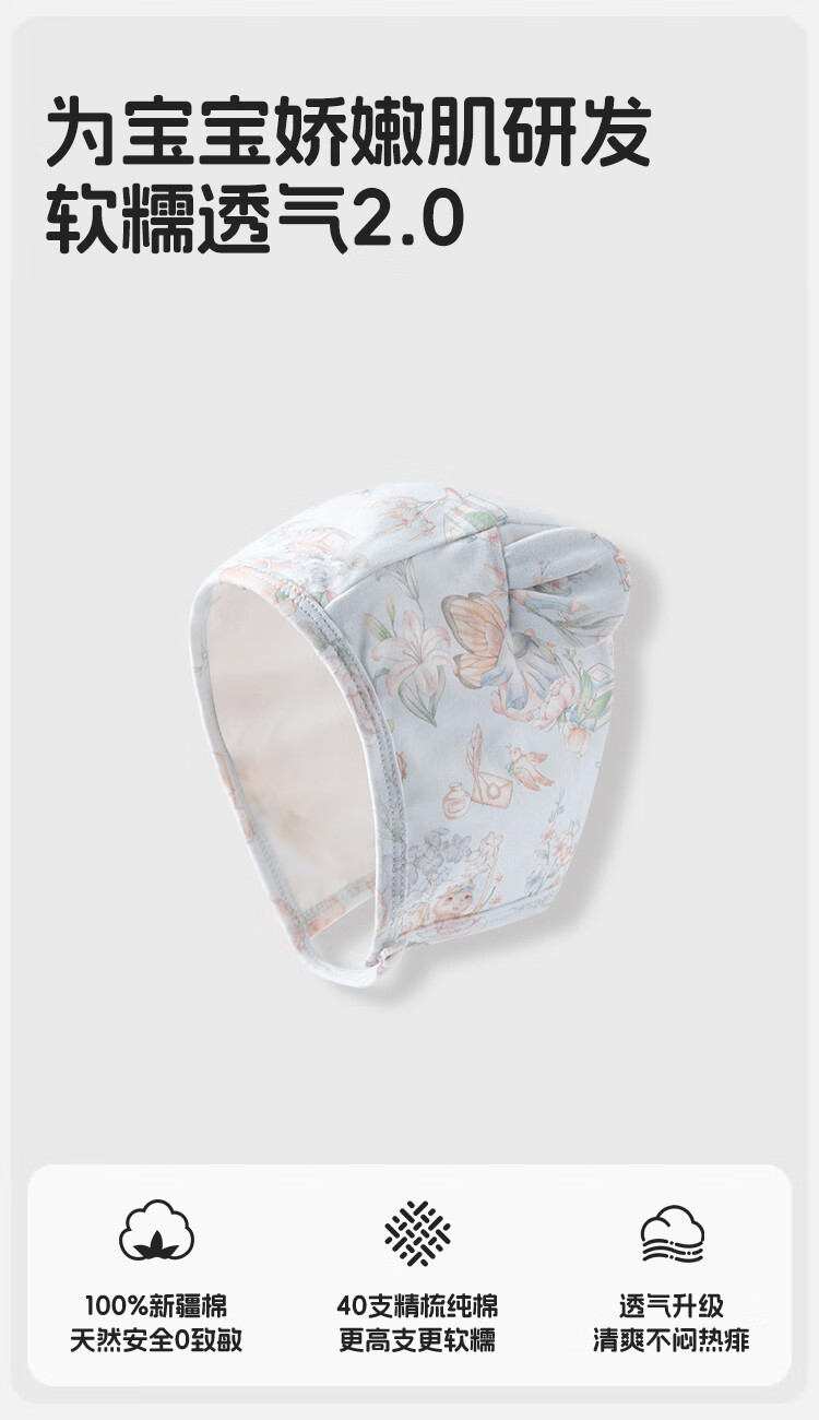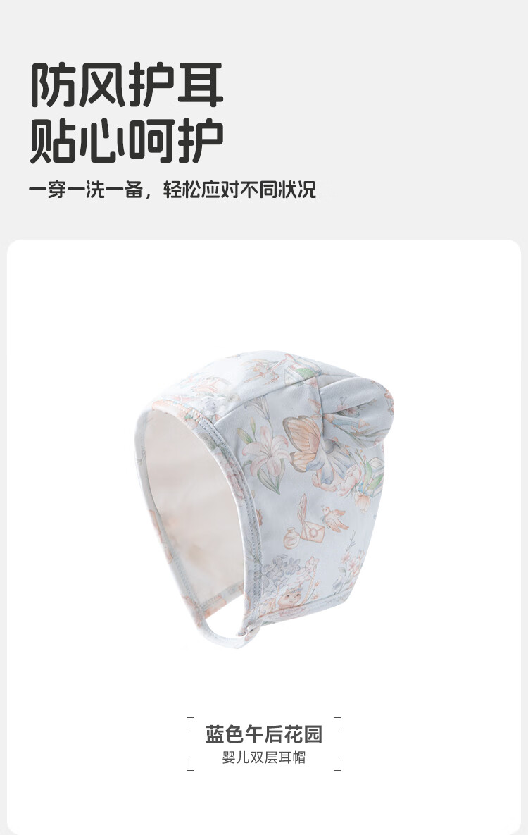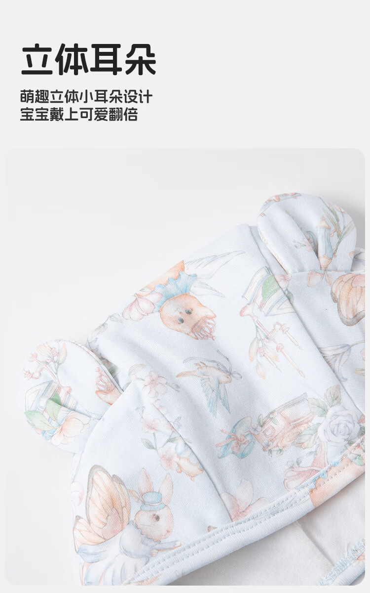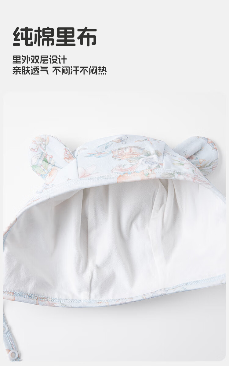 Kordear baby hat pure cotton fetal cap newborn protective fontanel cap 0-3 months baby ear protection cap head blue afternoon garden 3-6 months (applicable to head circumference 35-40cm)