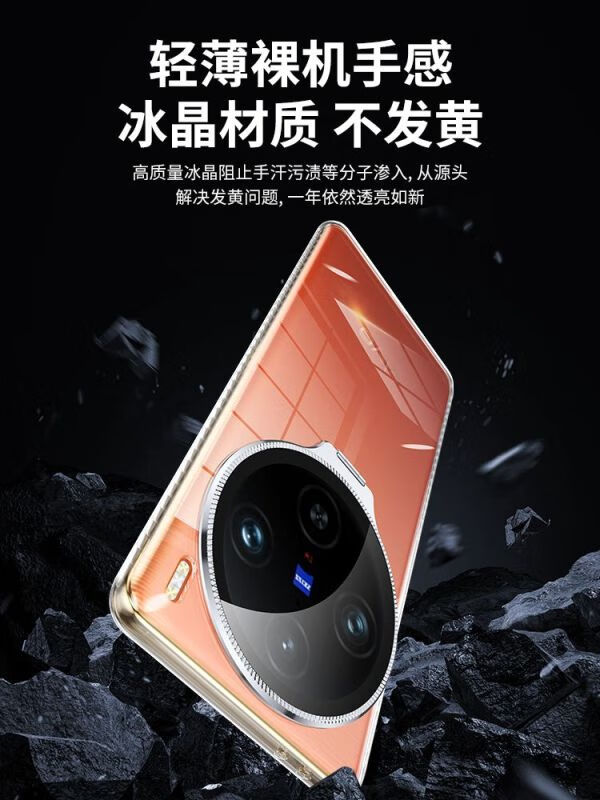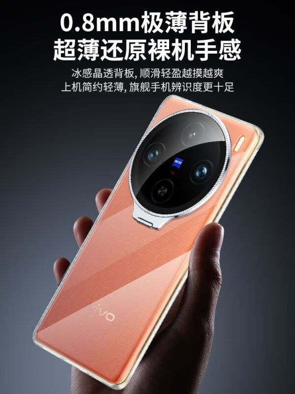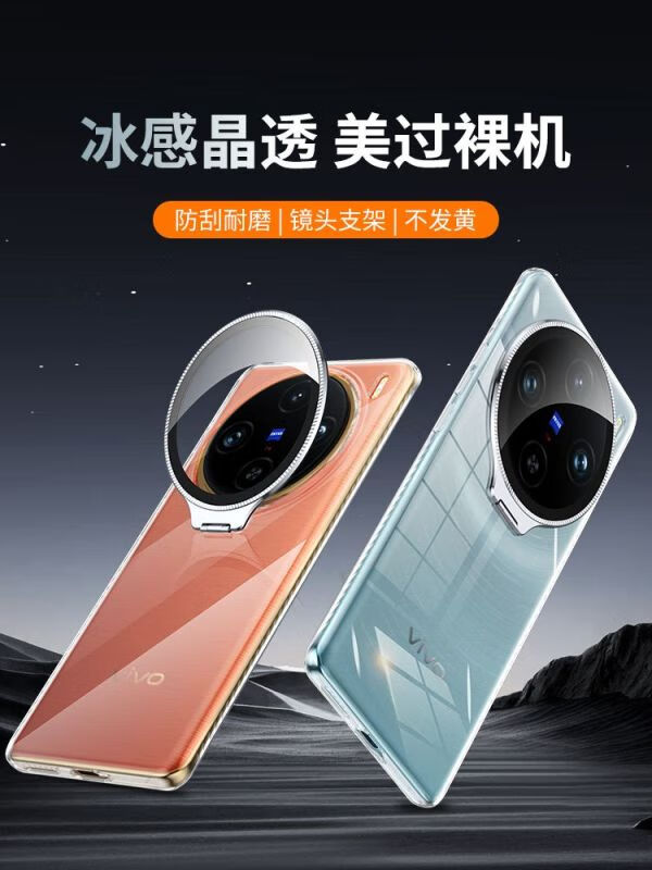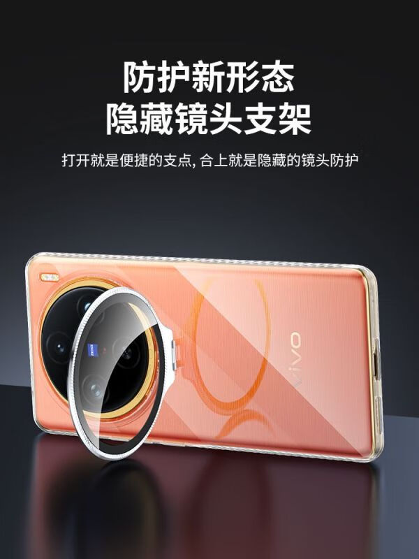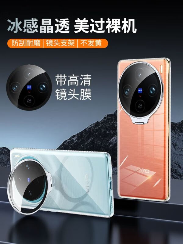 Omega is suitable for vivo X200/200PRO mobile phone case, simple X100 SPro mobile phone protective cover, ice crystal series, fully transparent thread bracket, mobile phone case, magnetic and anti-fall, ice crystal series, fully transparent thread with bracket-transparent shell, vivo X100 Pro