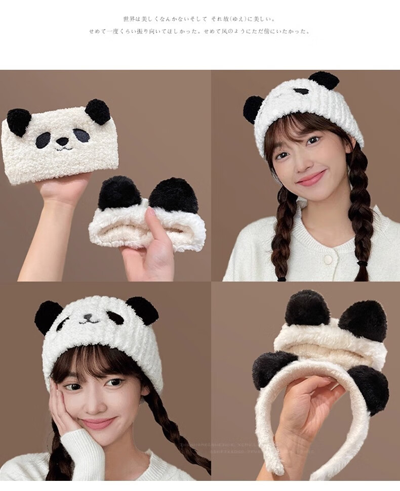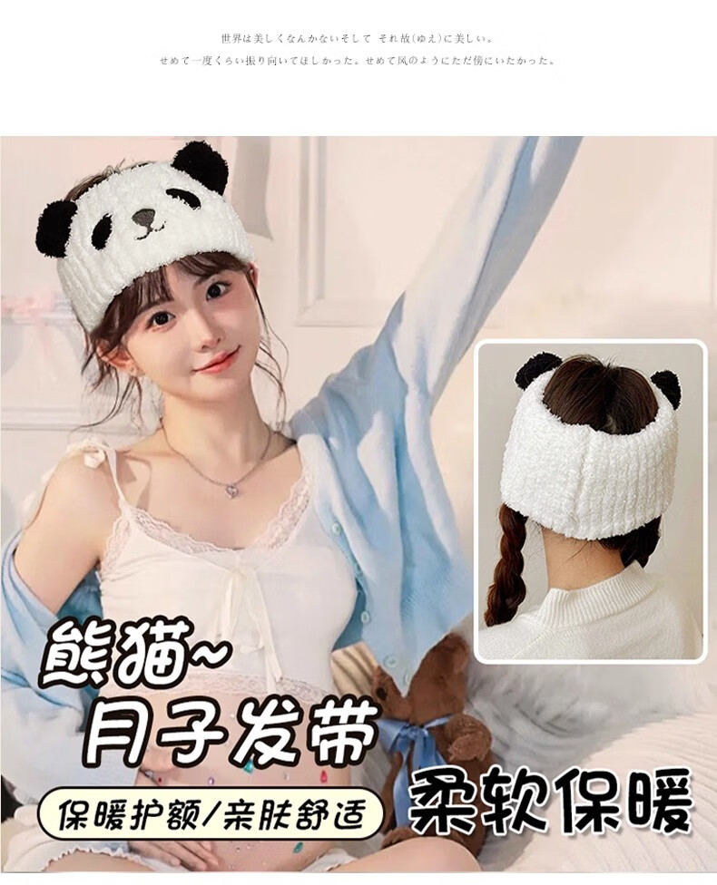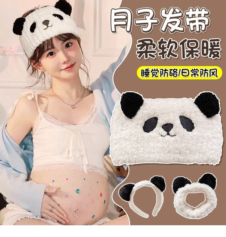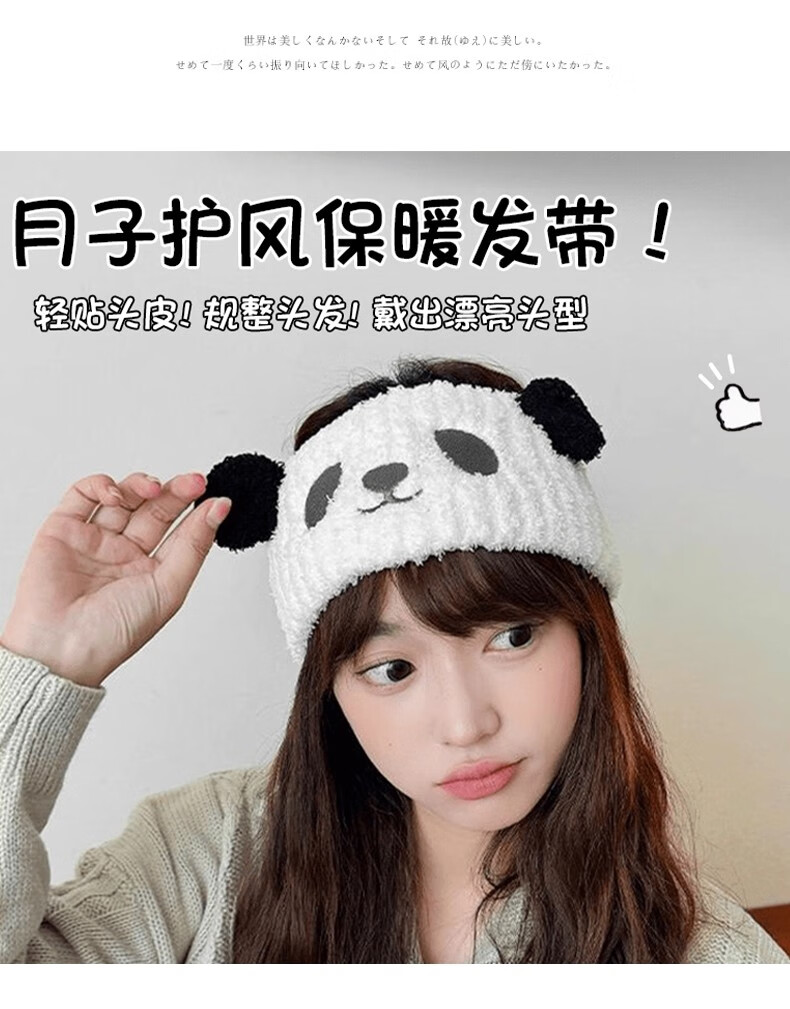 BIBK hairband for face wash, hairband, confinement hat, plush hairband for women, postpartum makeup, face wash, non-slip wide-brimmed hood, wide-brimmed panda confinement headband