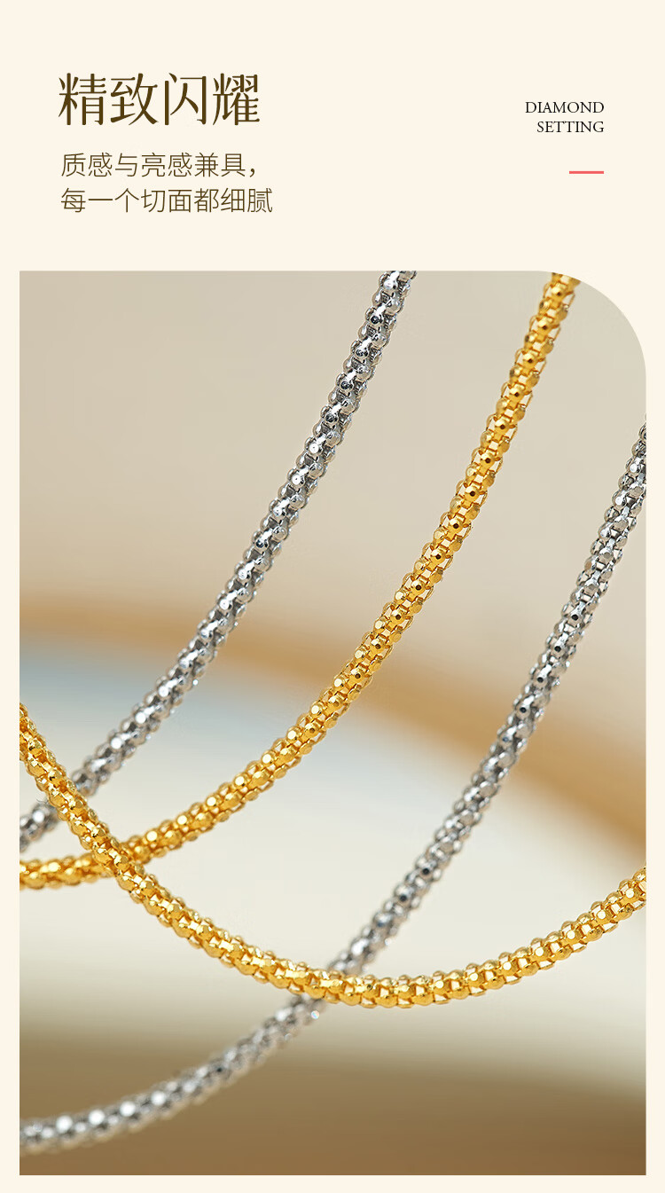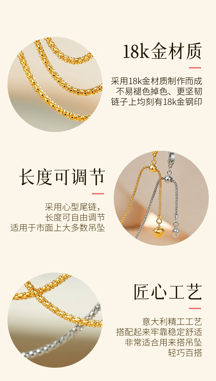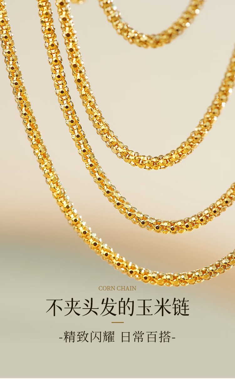 Meluxe 18K gold necklace AU750 corn chain plain gold chain extension birthday gift yellow 18K gold about 3g, length 50cm