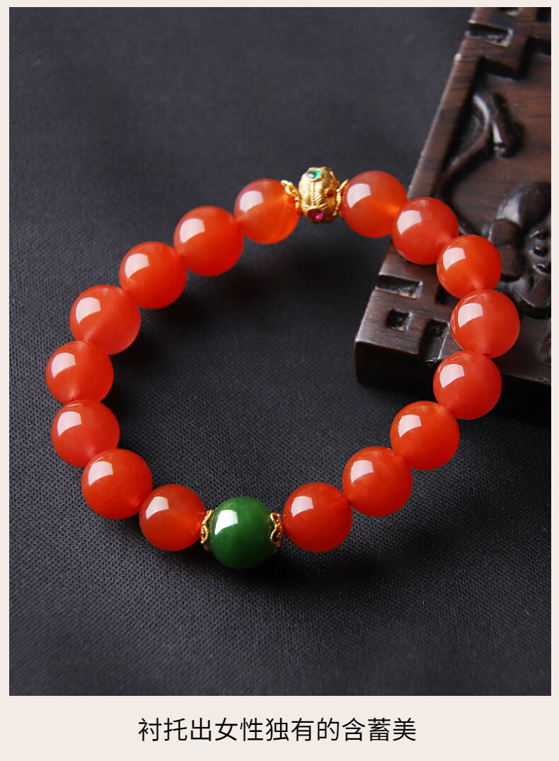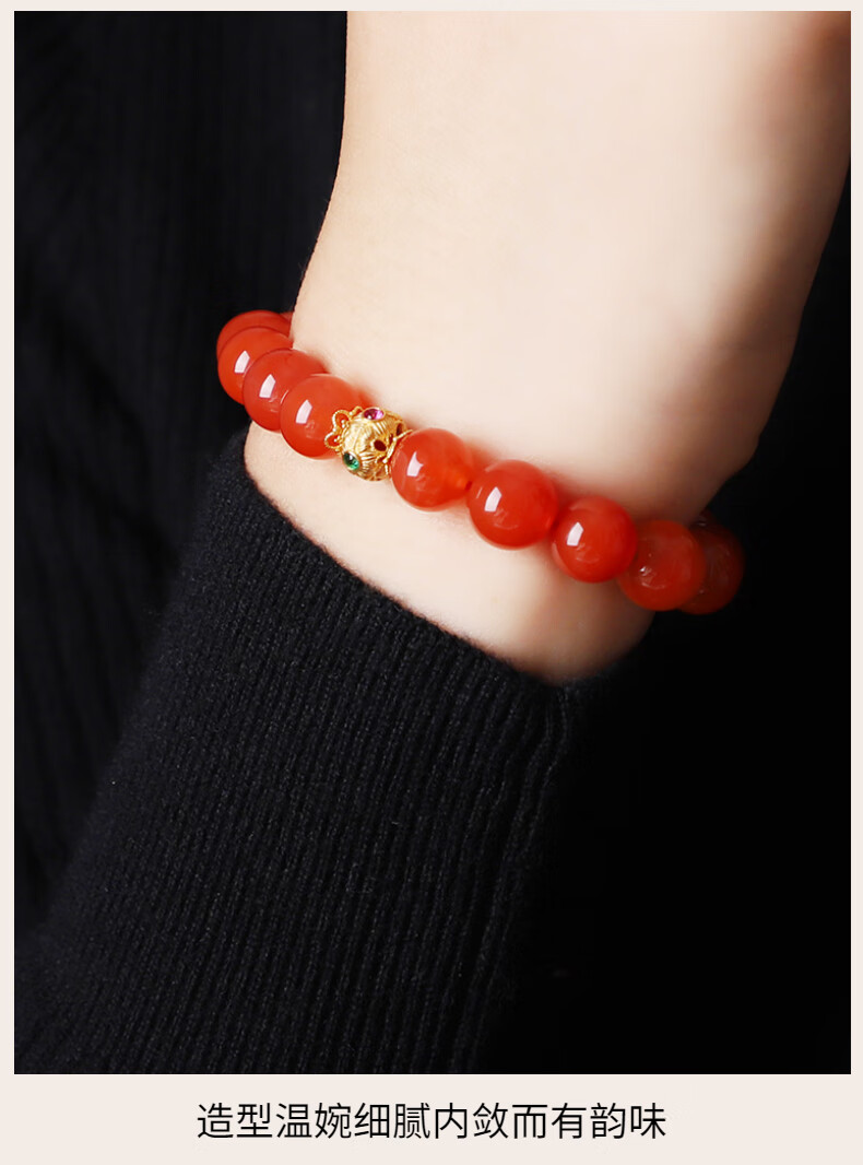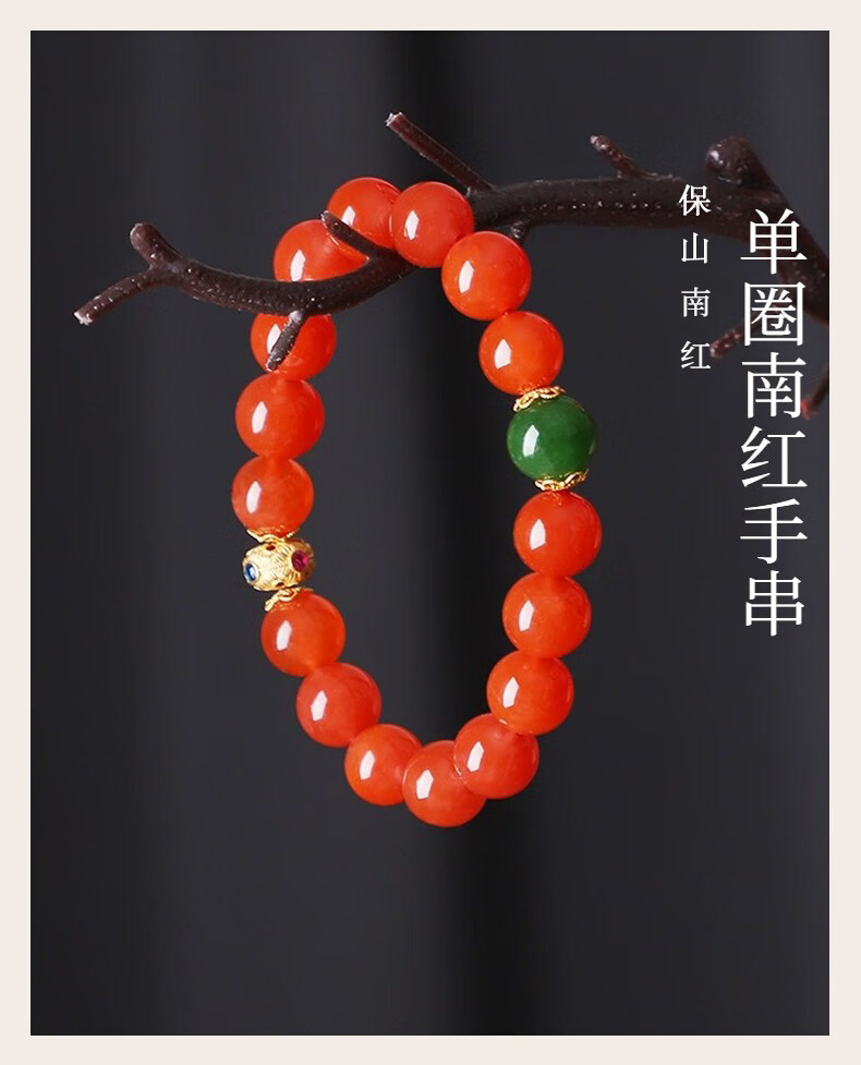 Layun Feiyin High Quality Baoshan Nanhong Bracelet for Women High-end 18K Gold Ice Red Single Circle Bracelet Simple and Fashionable Hand Jewelry Nanhong Ball Bracelet