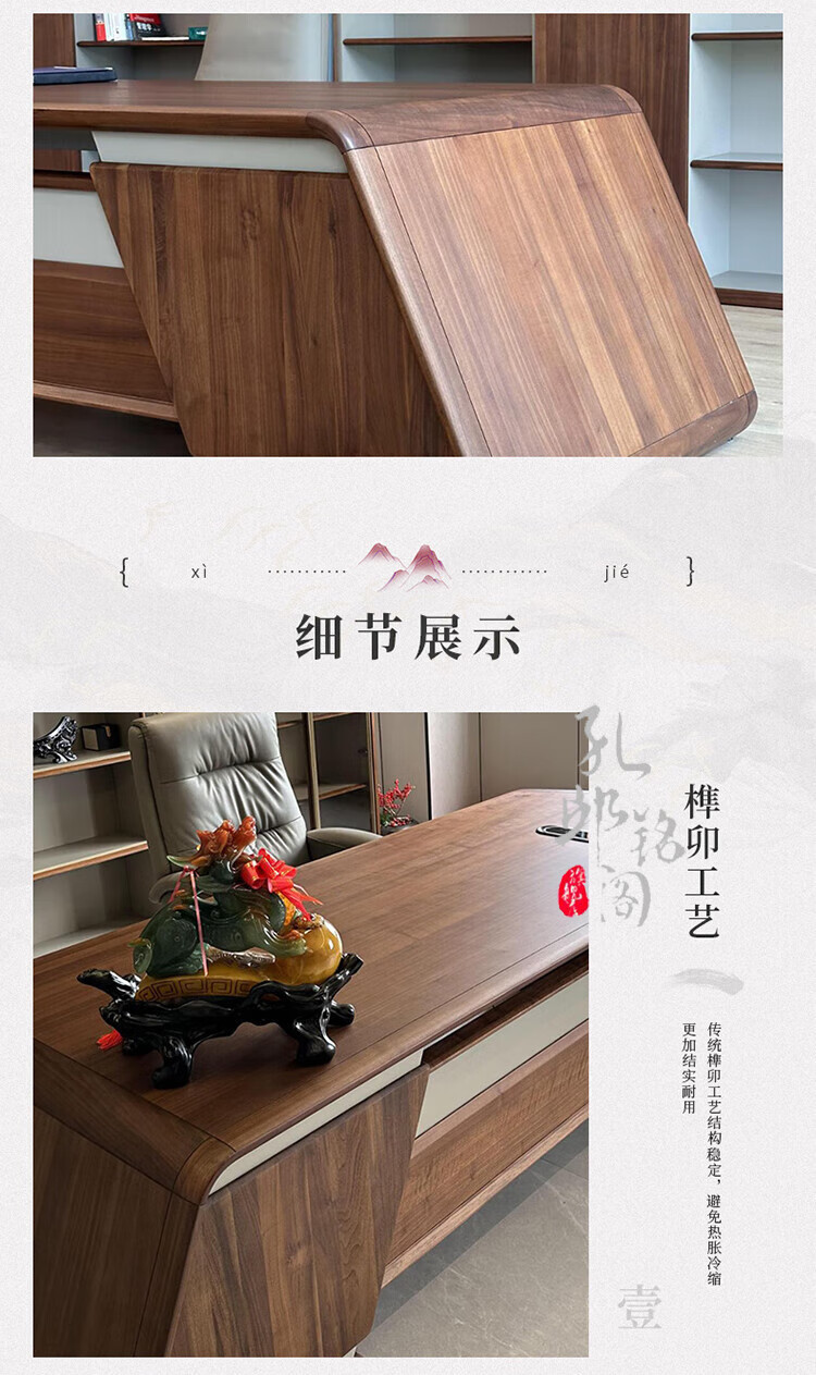 KOQUMGE New Chinese style North American ash solid wood boss desk office desk modern light luxury simple president desk and chair combination 2.0m office desk ash wood