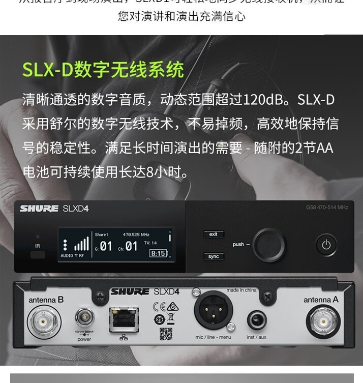 SHURE/Shure SLXD14Q Wireless Lavalier Microphone Stage Performance Live Training Speech Host Singing One to Four SLXD14Q/WL183M Lavalier Omnidirectional Microphone