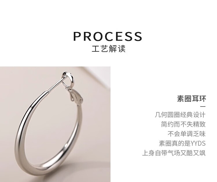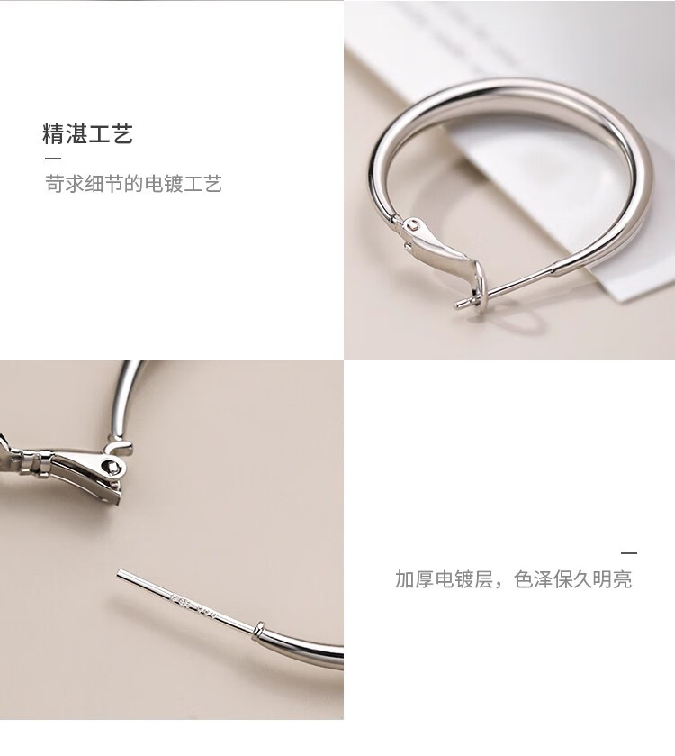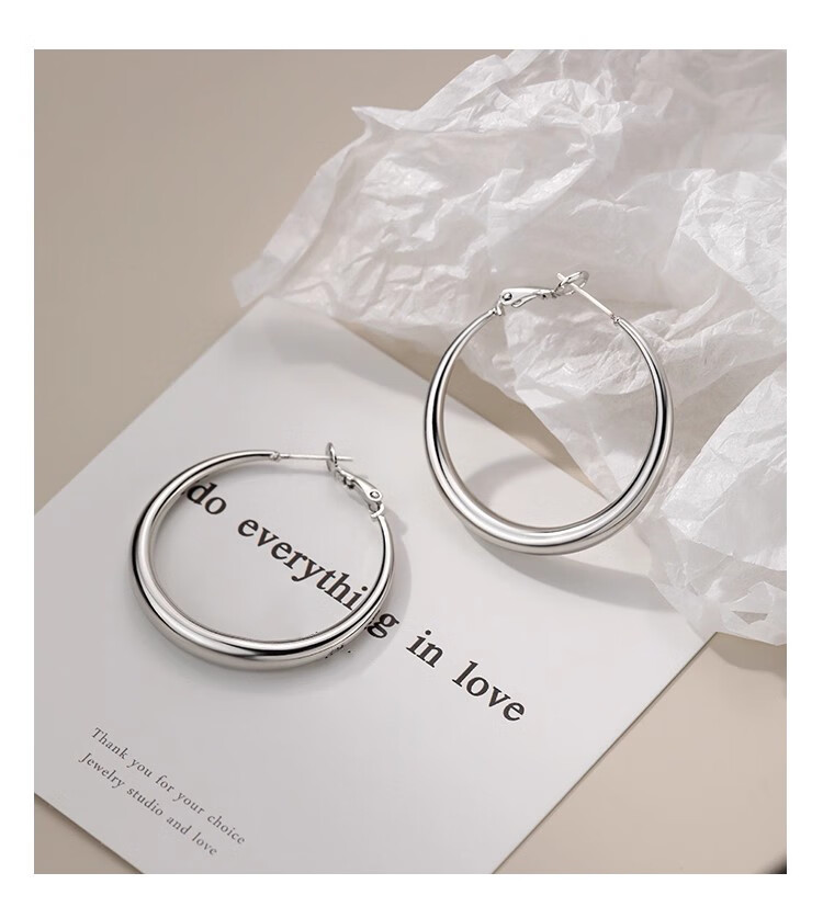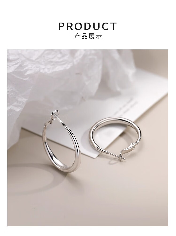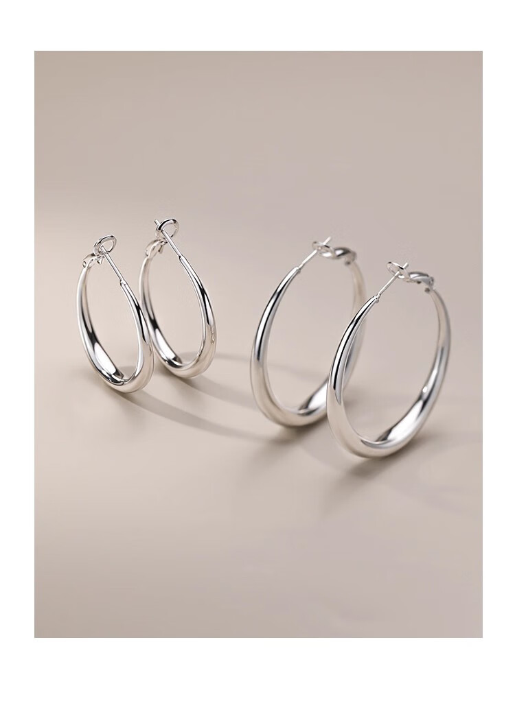 Core luxury Zhao Lusi same style earrings for women silver earrings 2025 new high-end simple temperament earrings large hoop earrings hoop earrings 30mm (price for two)