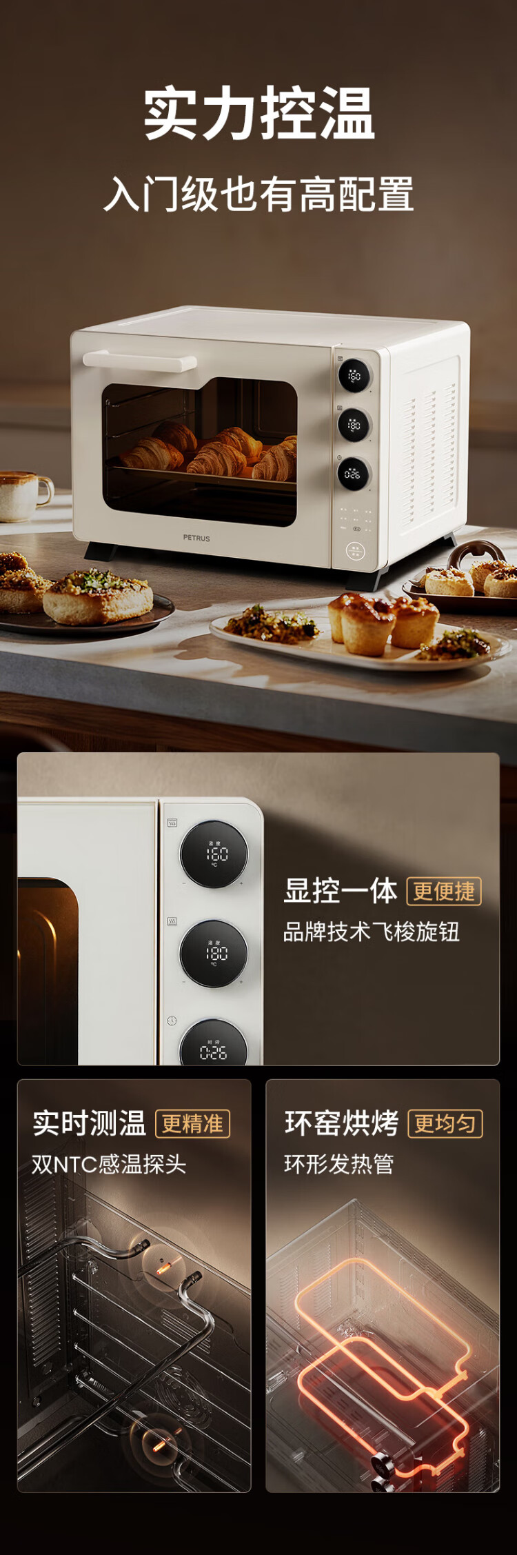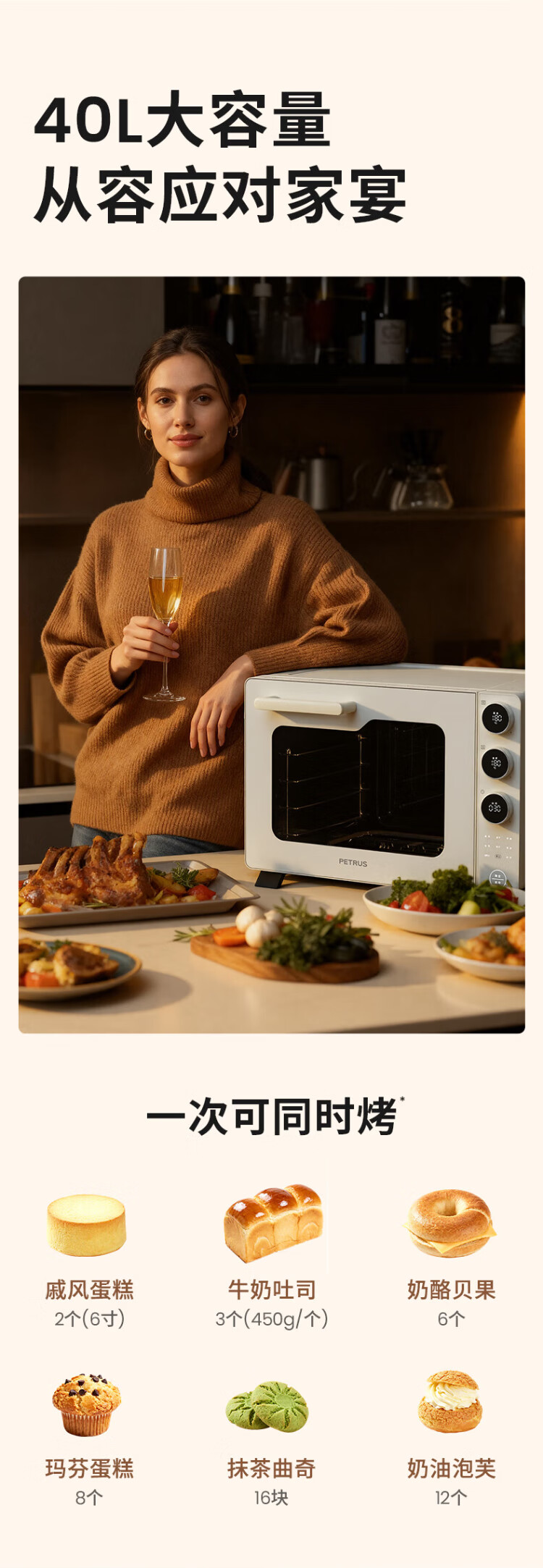 Petrus 2025 New Petrus K4 Electric Oven Home Steam Oven Baking Special Small Multi-Function Fermented Baked Bread PE5300 White 40L