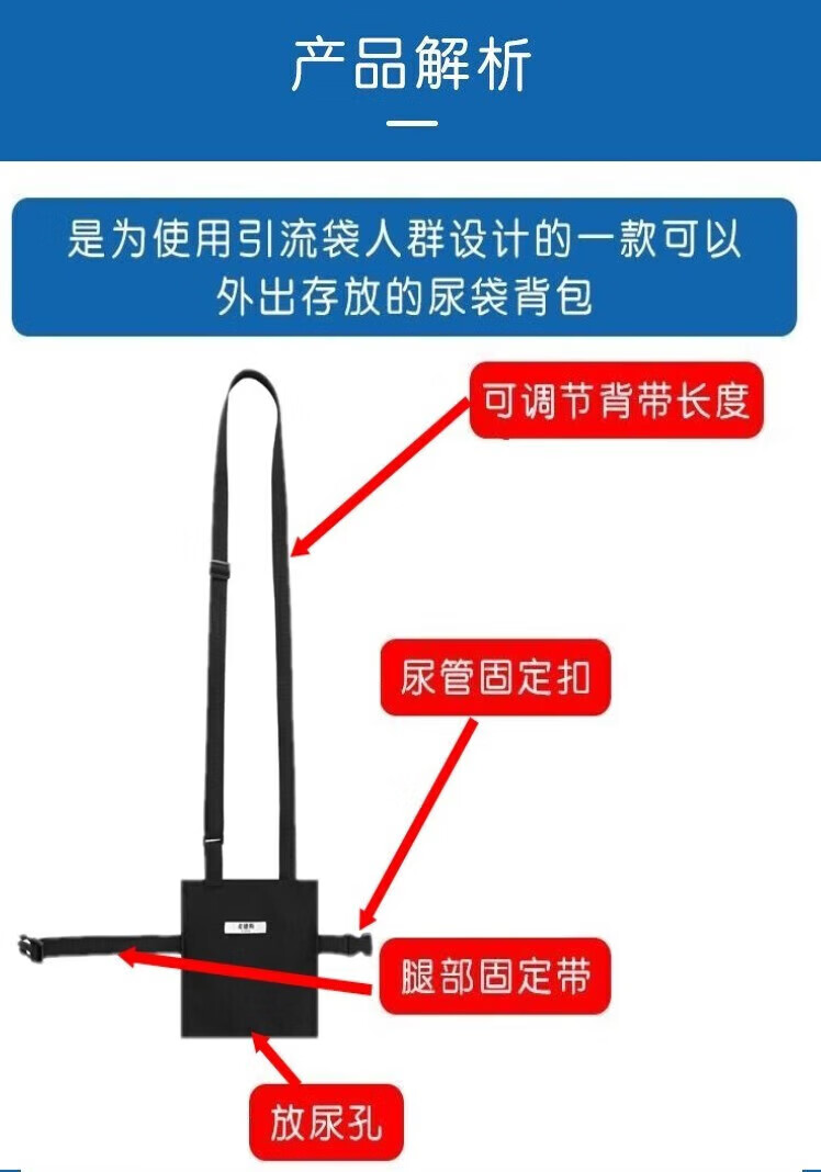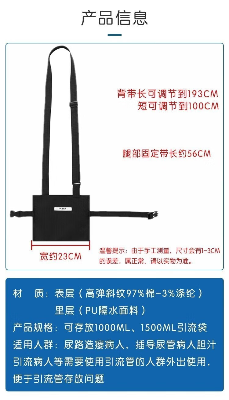 Universal Funing universal urine bag drainage bag fixed bag hanging cystostomy bag special portable messenger bag square drainage bag 1000ML
