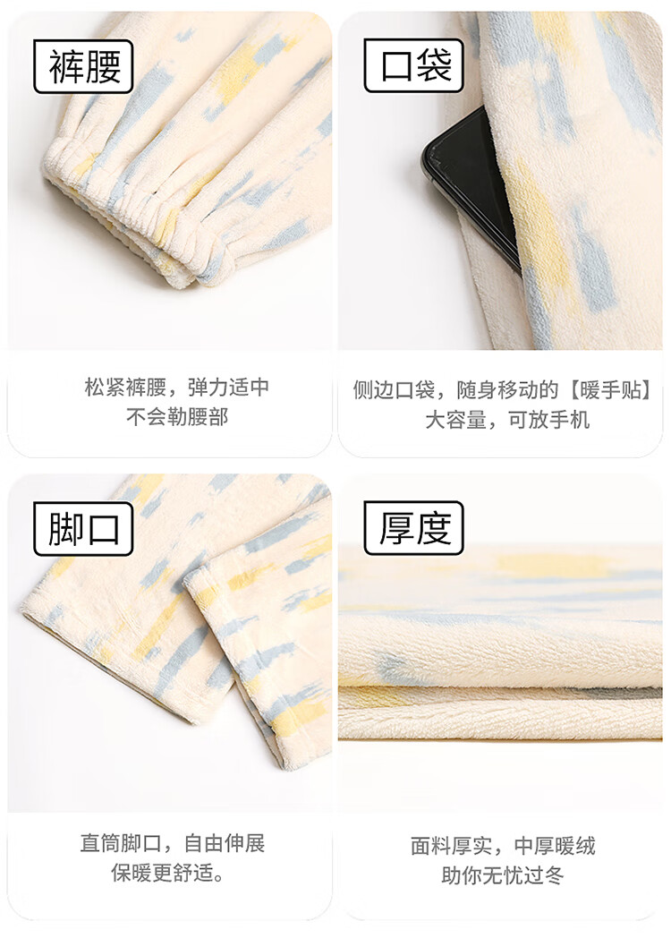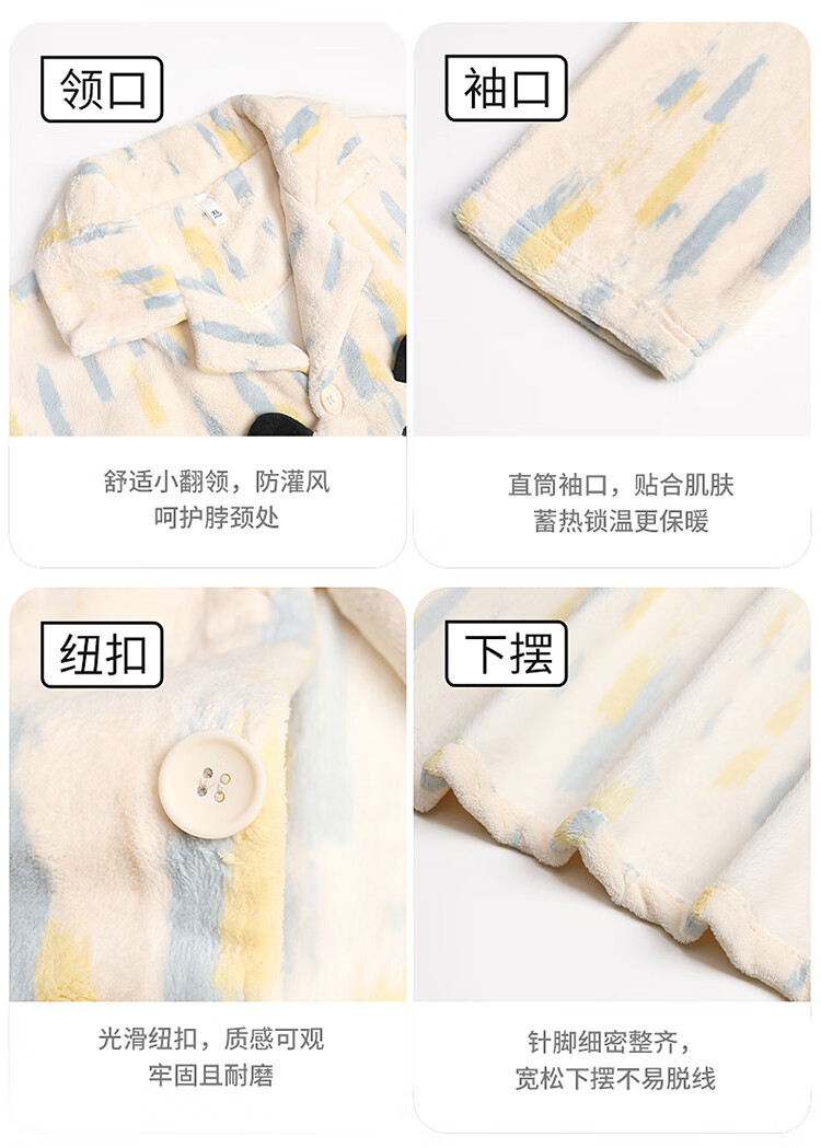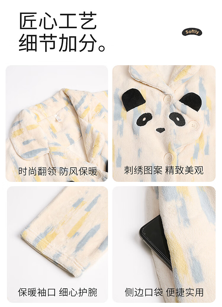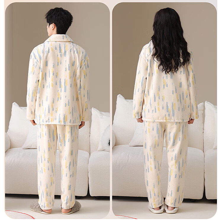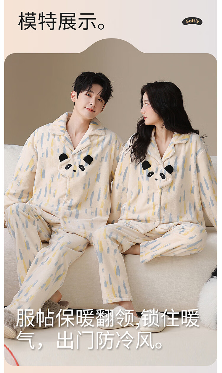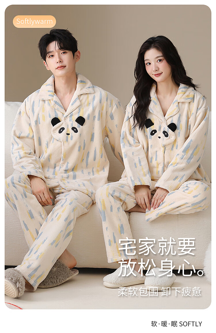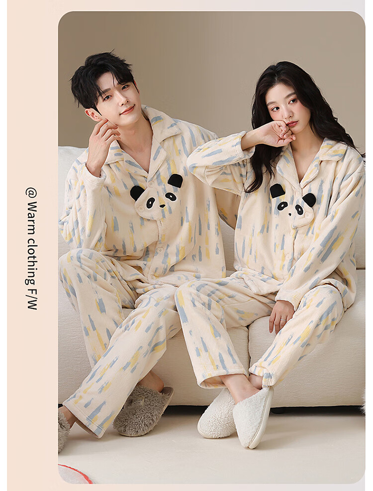 LangSha coral velvet couple pajamas for men and women in autumn and winter plus velvet thickened warm flannel cute cartoon home clothes cartoon bear women's L