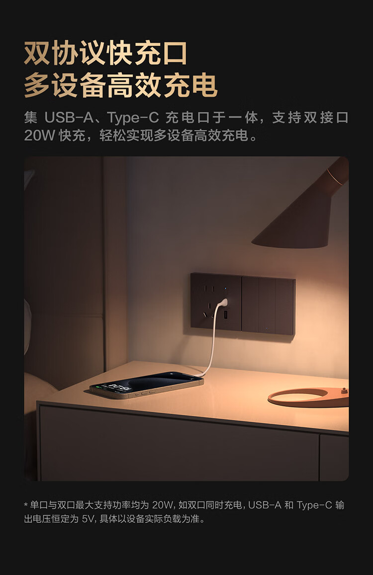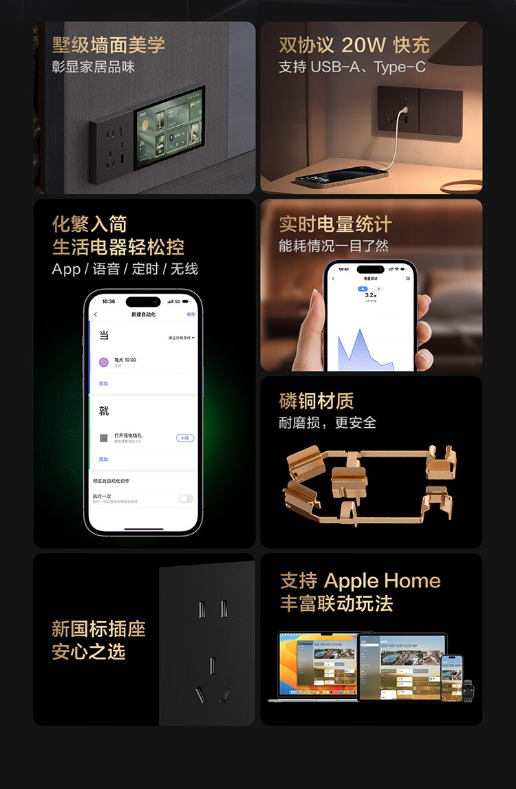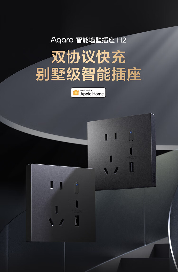 Aqara Lumi Lianchuang Smart Socket H2 Fast Charging Type-C has been connected to the HomeKit wall socket panel Smart Wall Socket H2_Yuanshan Gray
