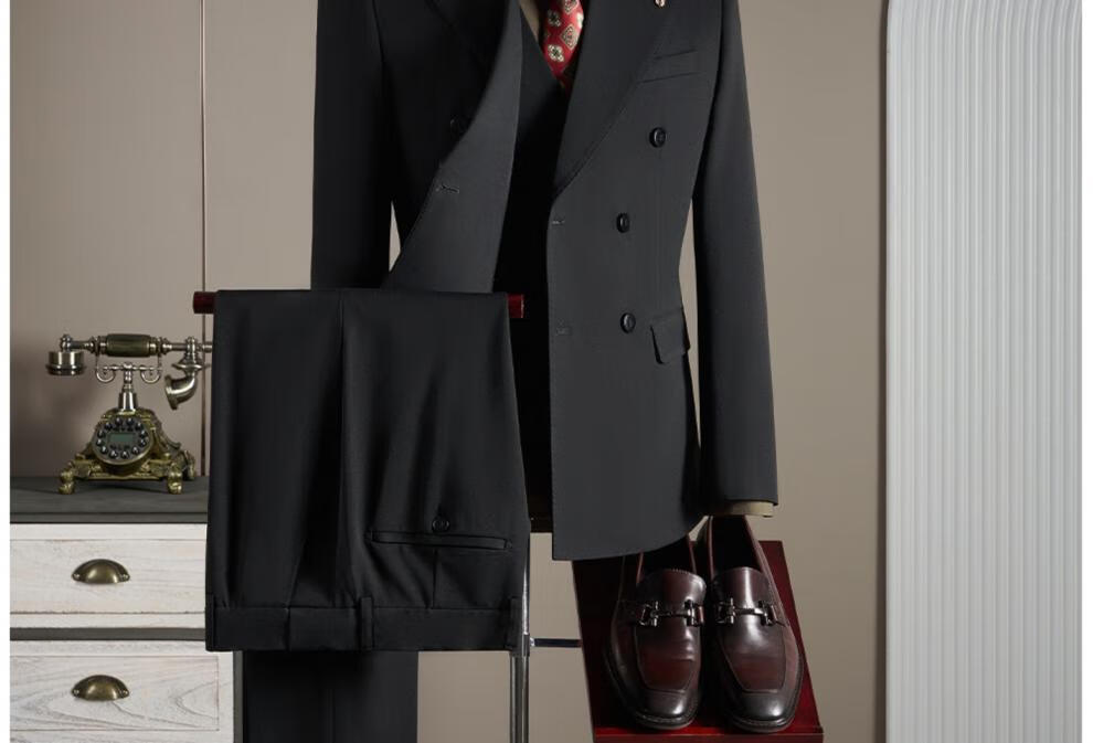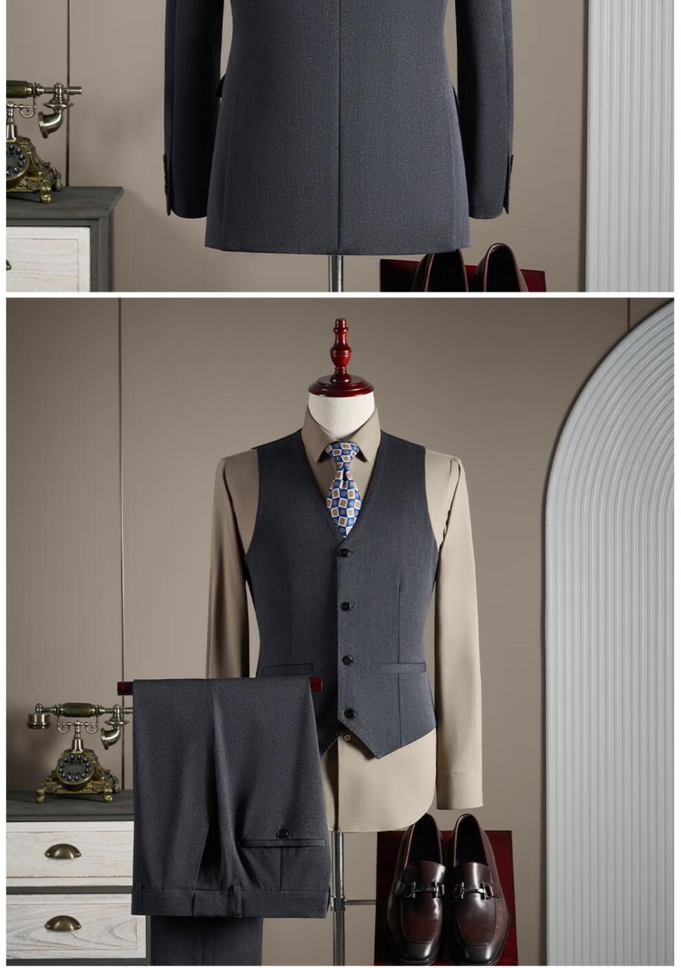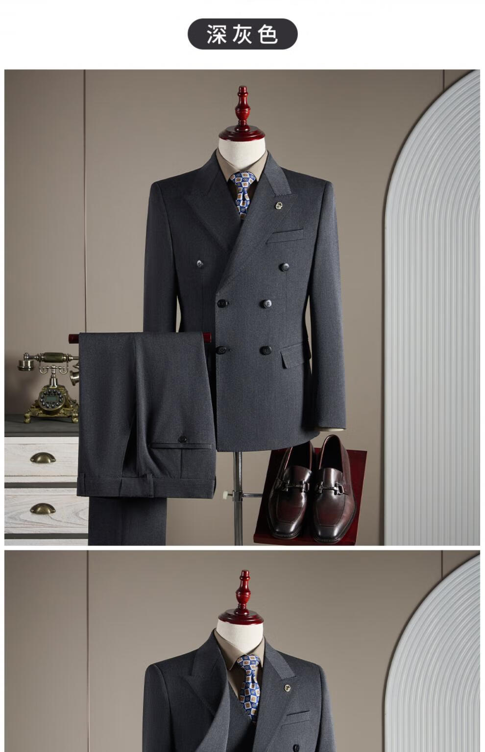 Pierre Cardin double-breasted wool suit suit men's business formal high-quality slim groom wedding suit three-piece suit for men dark gray suit + trousers M (95-110Jin Jin equals 0.5 kg)