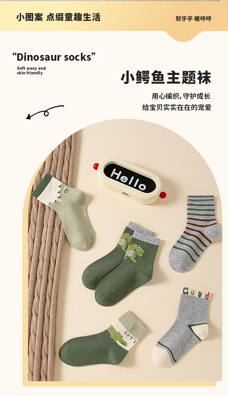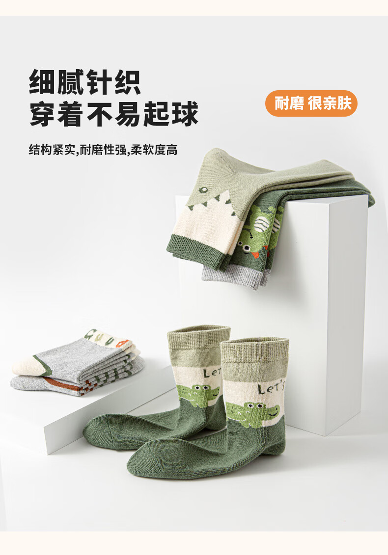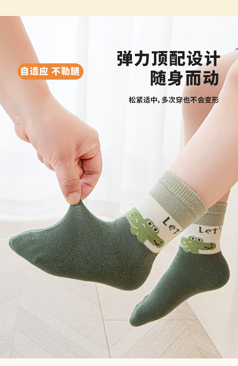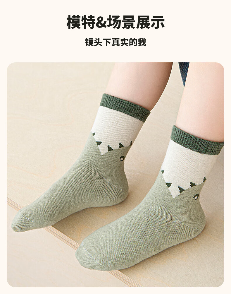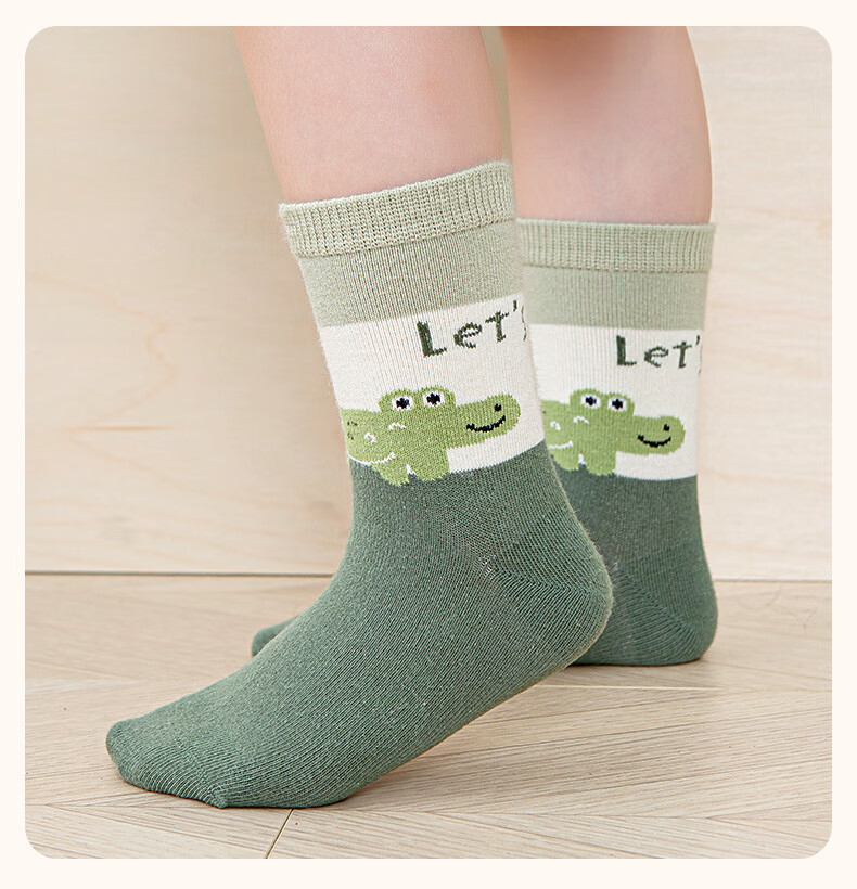 Six-fingered mouse children's socks, combed cotton, autumn and winter, thick, boys, teenagers, and students, mid-calf socks, 100% cotton, boys, middle-aged and older children, 68B (Happy Winter Camp), 5 pairs, one size fits all, shoe sizes 33-36 (socks labeled 10-15 years old)