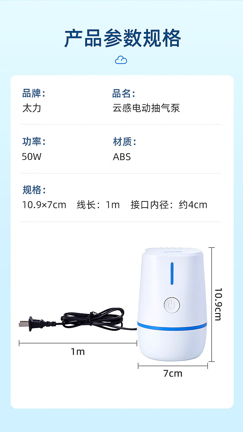 Taili vacuum compression bag electric air pump with high power vacuum and rapid exhaust wireless pump with battery