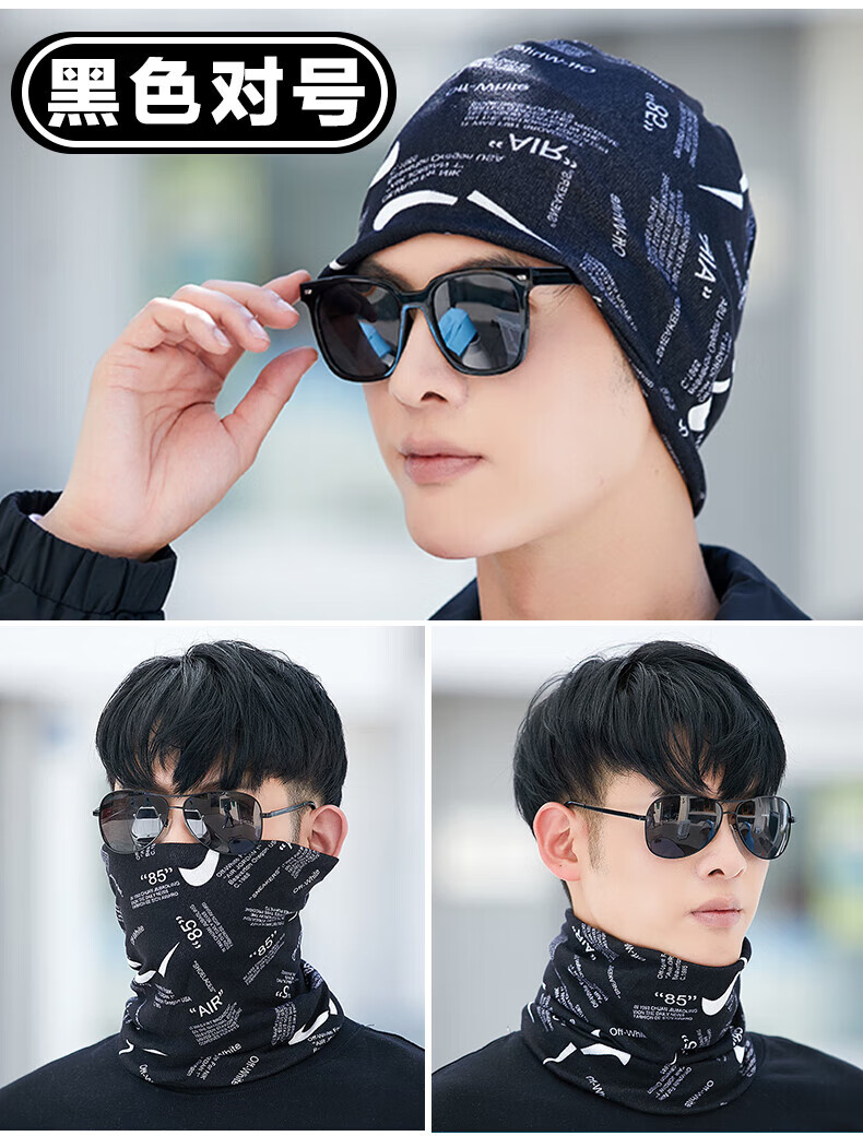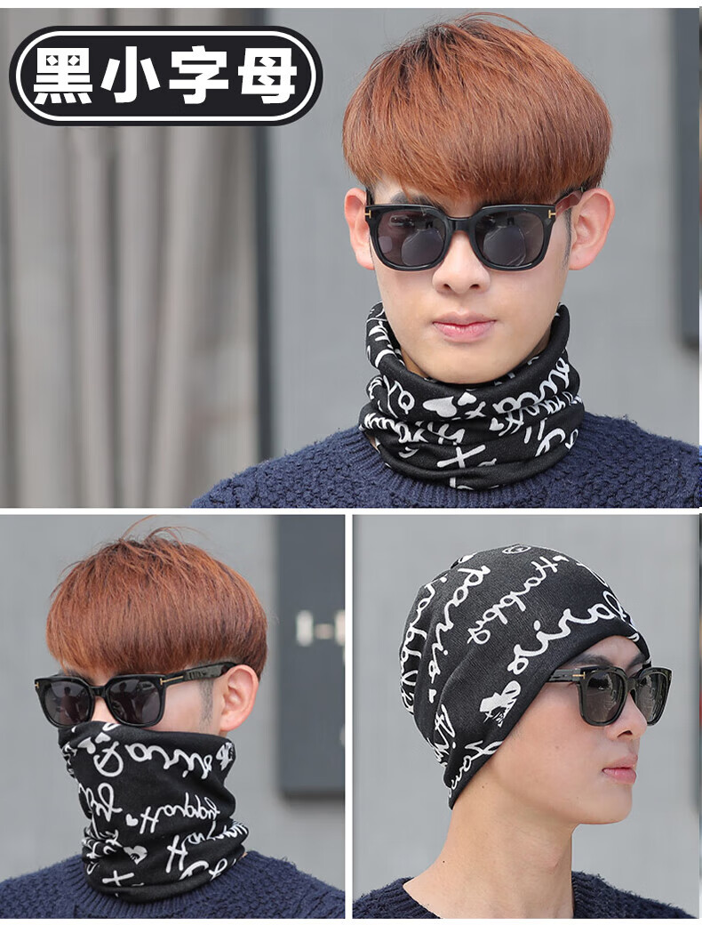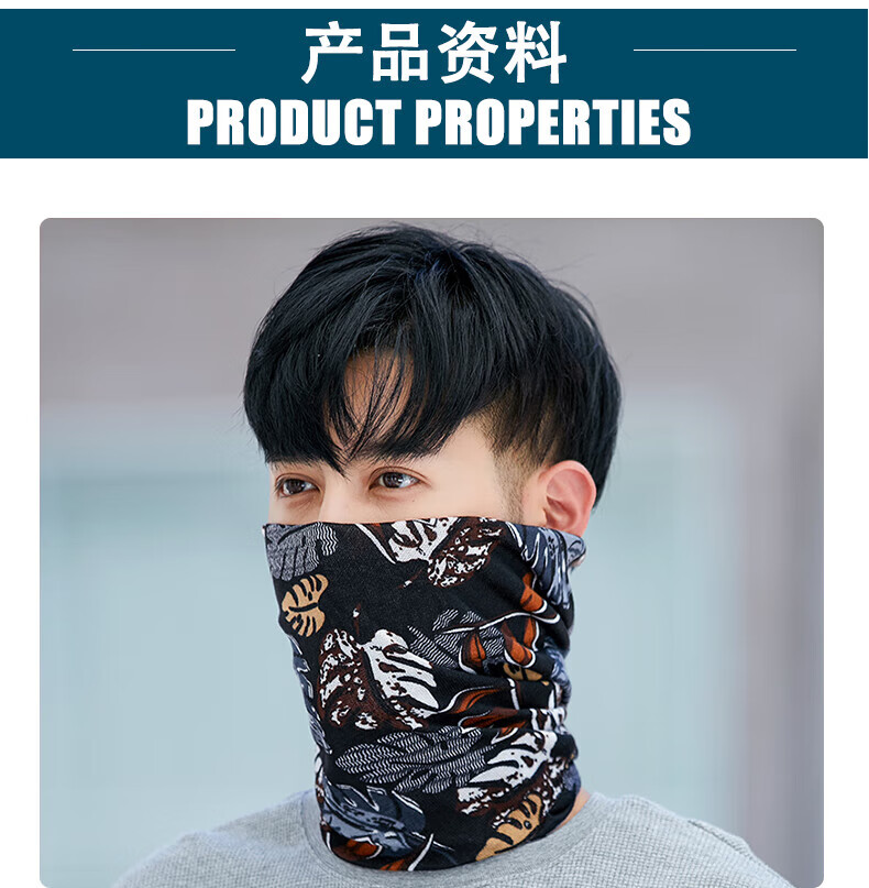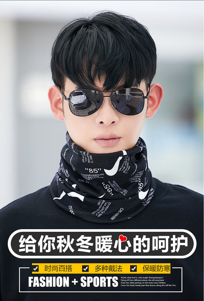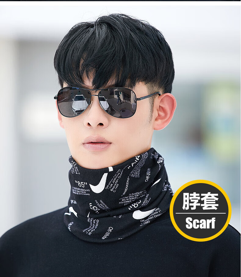 Bnroe neck scarf men's cold-proof and warm autumn and winter outdoor cycling windproof men's trendy scarf black leaves + black graffiti sent two pieces
