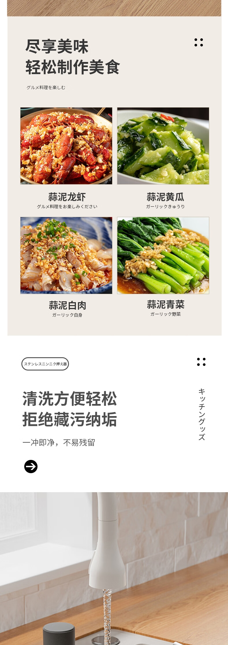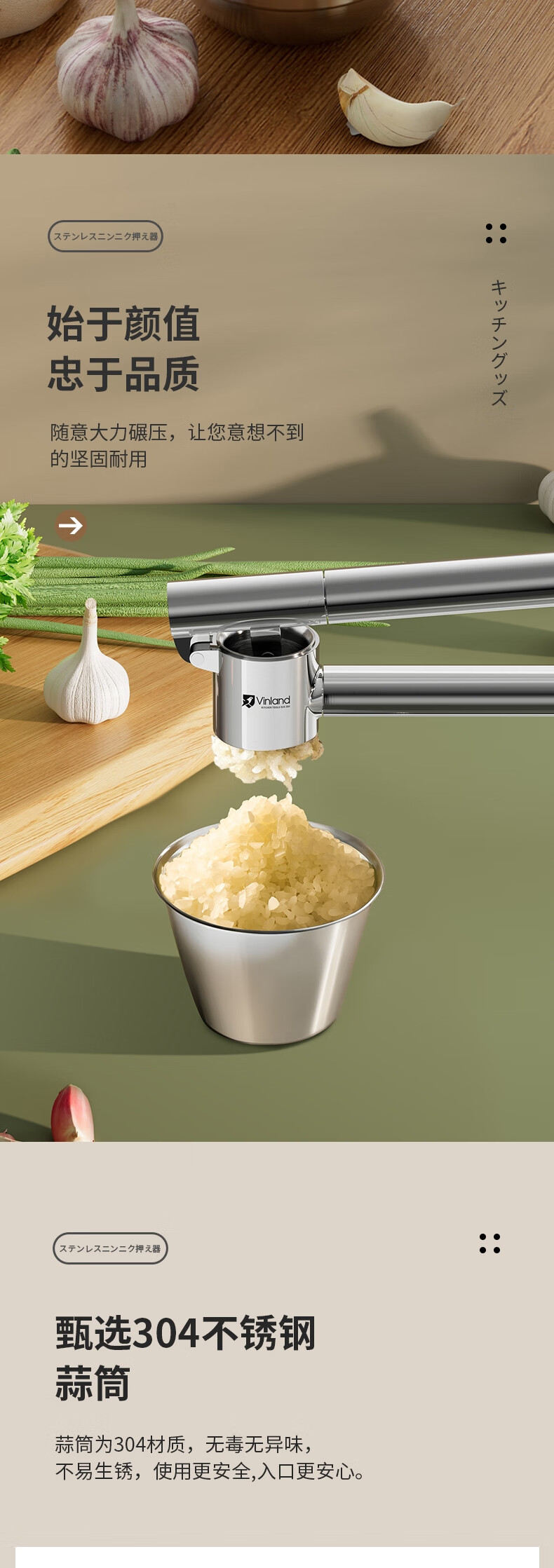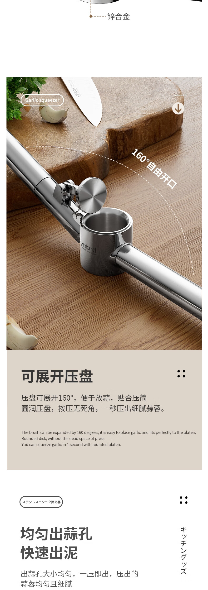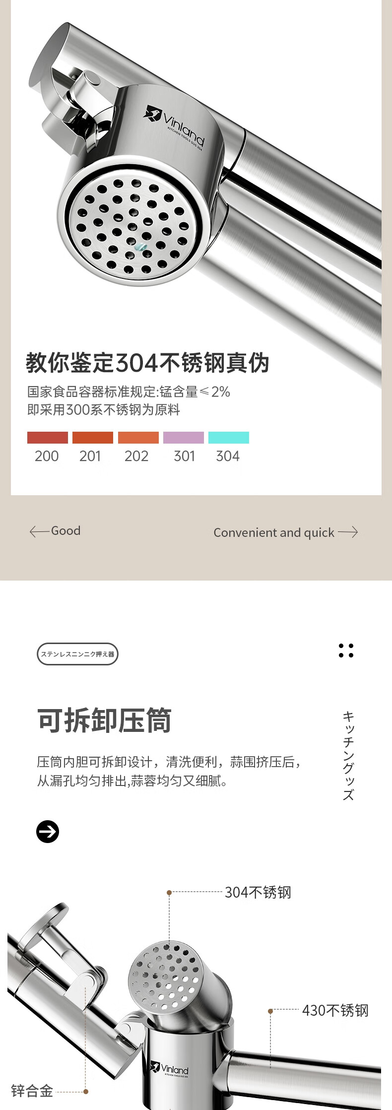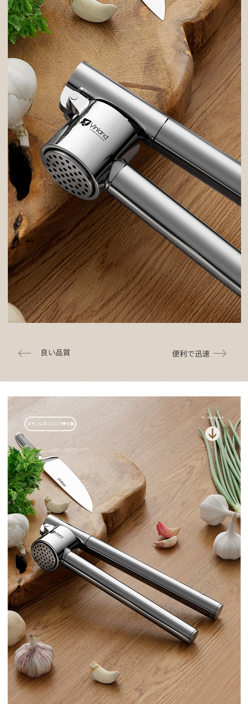 Fat Donglai's same style garlic press artifact 304 stainless steel Japanese 304 stainless steel manual garlic clamping, peeling and punching garlic. First generation 304 stainless steel garlic press-extended and larger model. Can press 1 at a time.